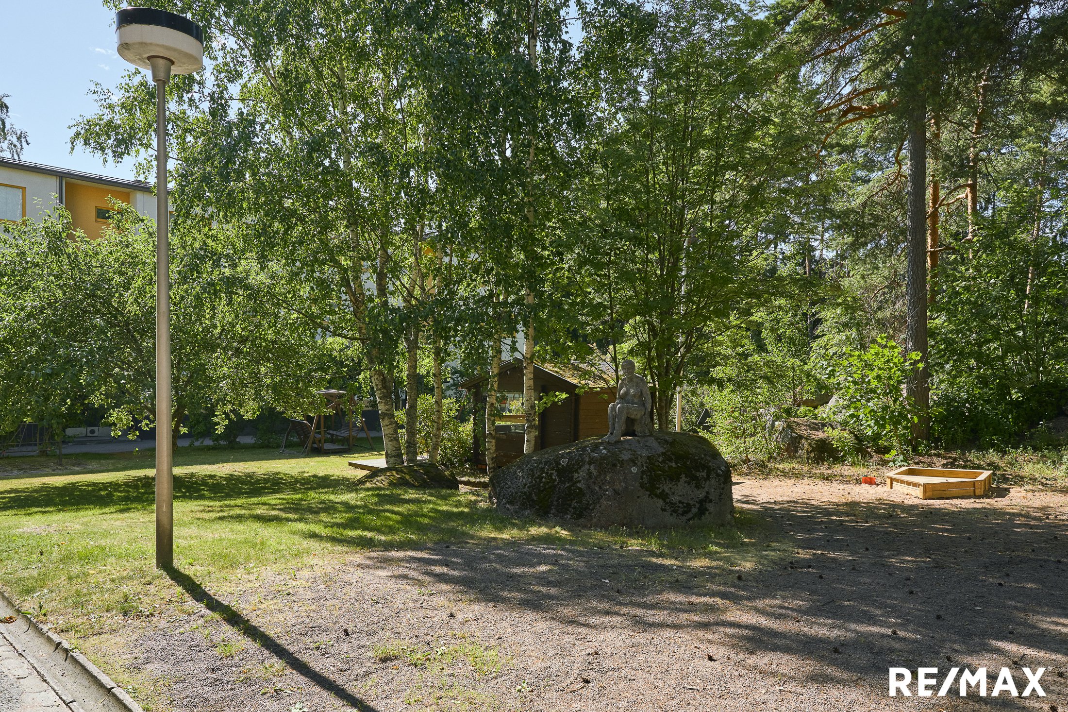 Asukkaiden käytössä on sauna ja pesutupa. Viihtyisä ja hoidettu piha-alue, jossa on katseen vangitsijana patsas kiven päällä. Lähistöllä on monipuoliset peruspalvelut sekä hyvät kulkuyhteydet.