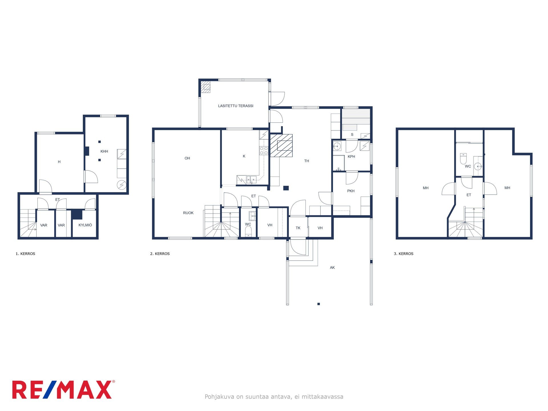 Talo tarjoaa toimivat tilat kolmessa kerroksessa: