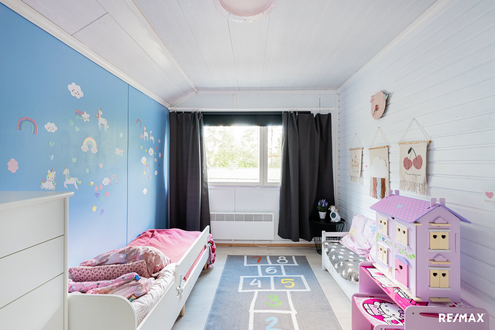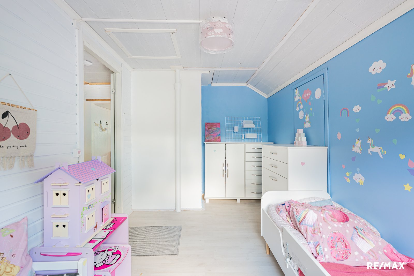 Tämä 1955 rakennettu puutalo seisoo omalla 768 m2 tontilla, joka rajautuu puistoalueeseen. Talossa on kolme makuuhuonetta, joista kaksi sijaitsee yläkerrassa ja yksi alakerrassa.