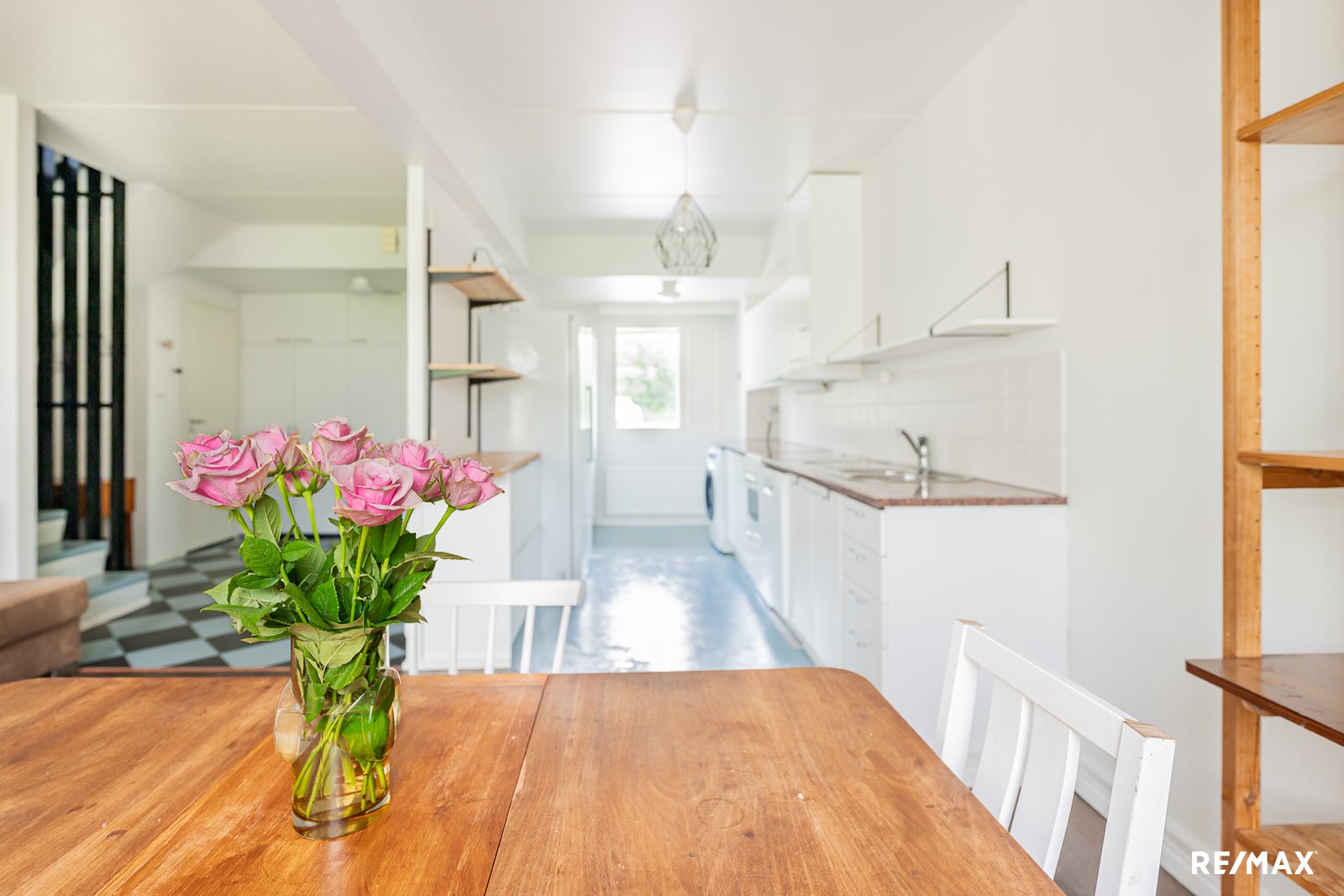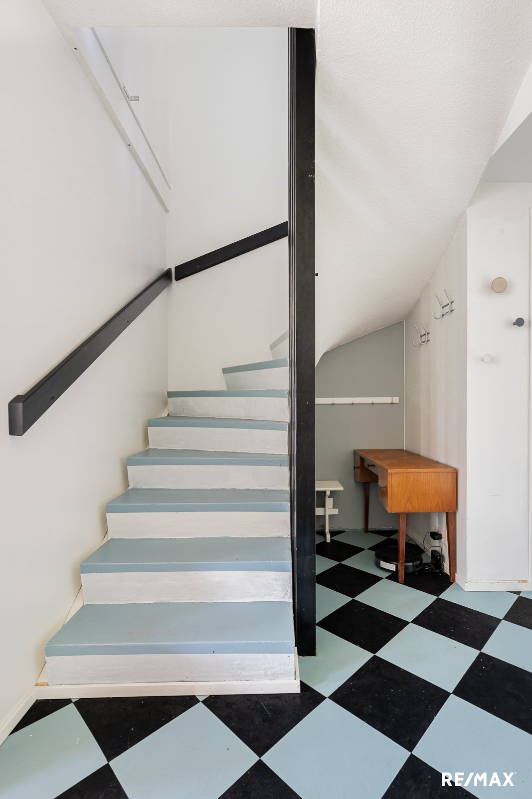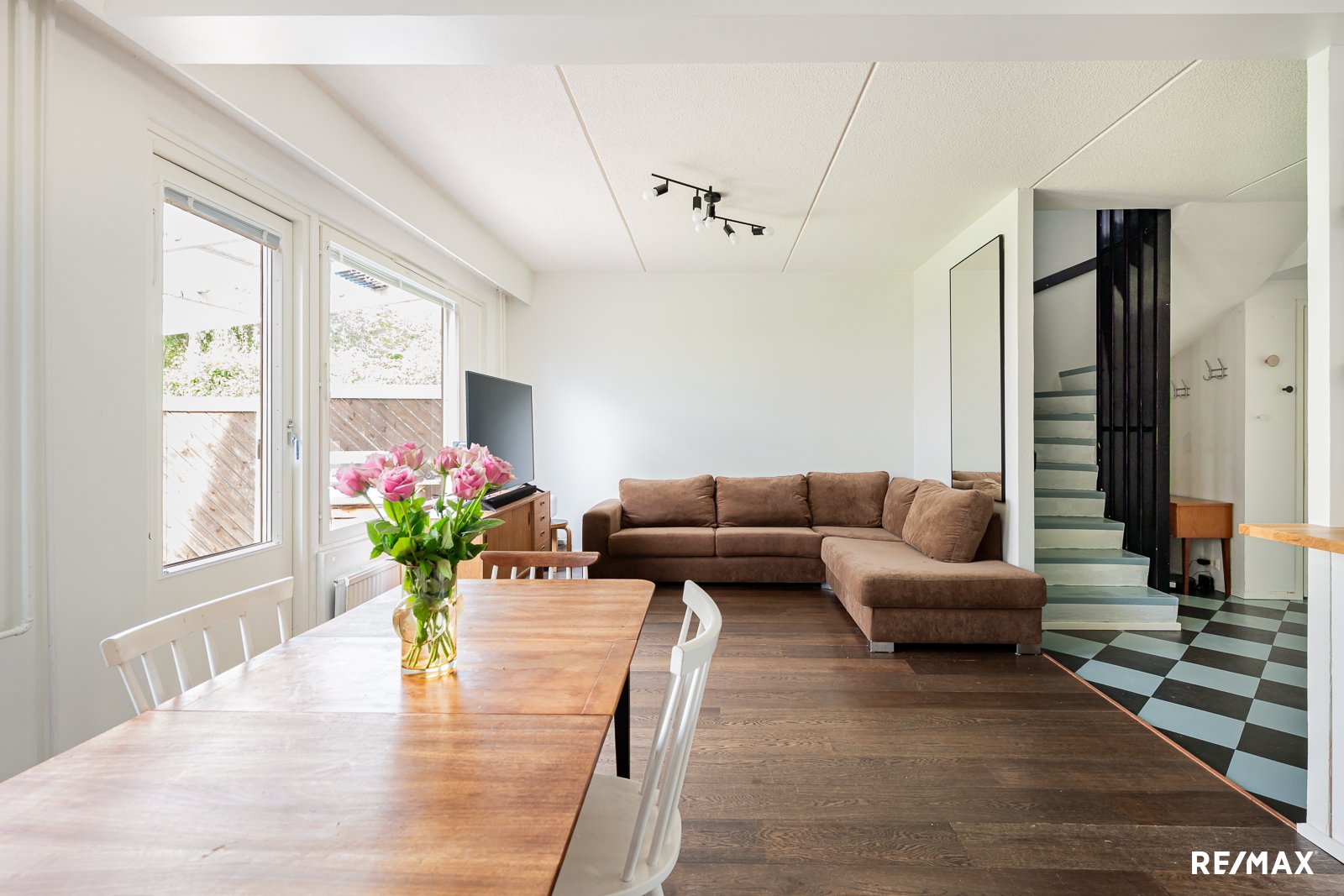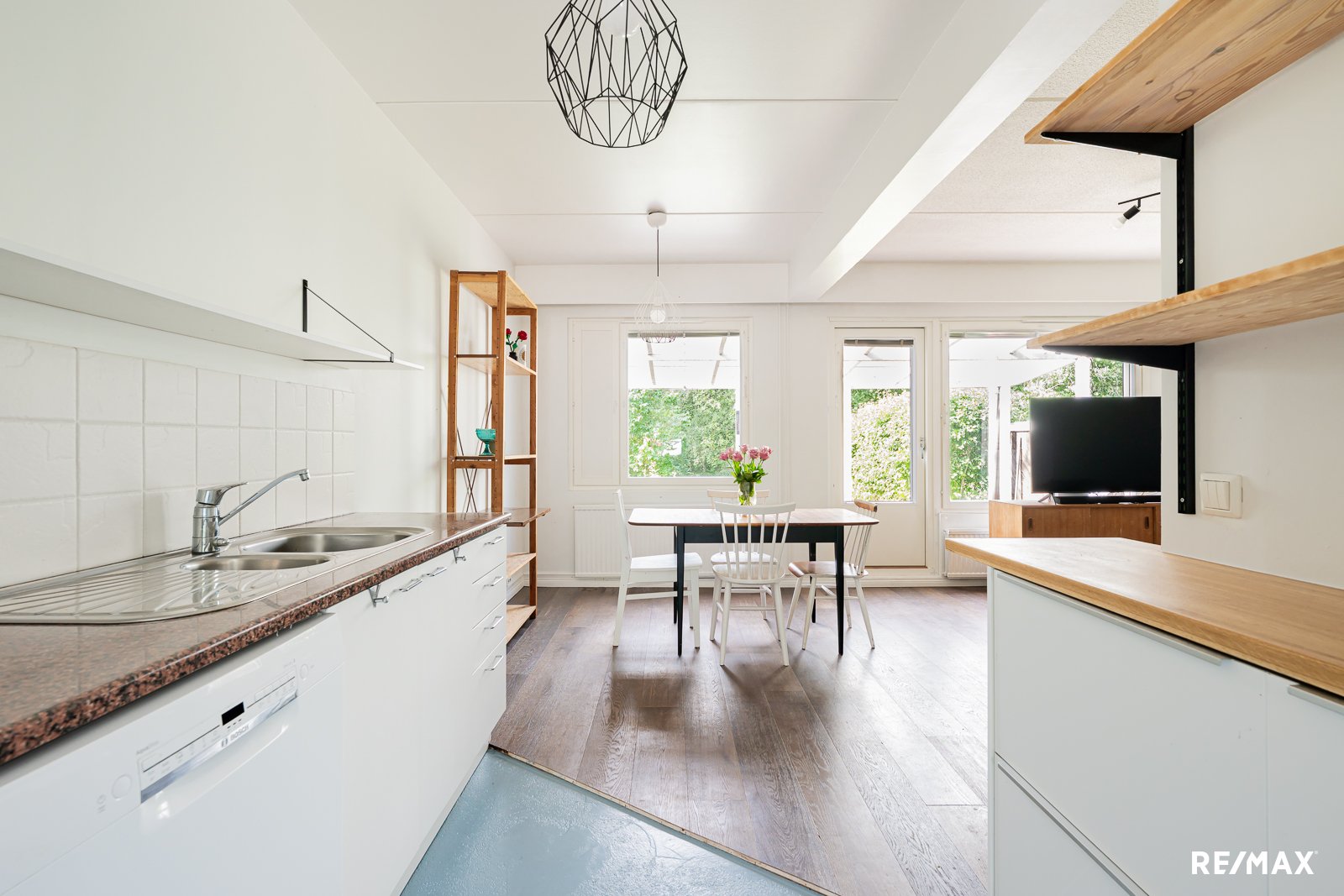 Alakerrassa on eteinen, olohuone, ruokailutila, keittiö ja erillinen wc. Olohuoneesta on käynti takapihan valokatetulle terasille ja suojaisa takapiha on vehreä ja edessä ei ole taloja.