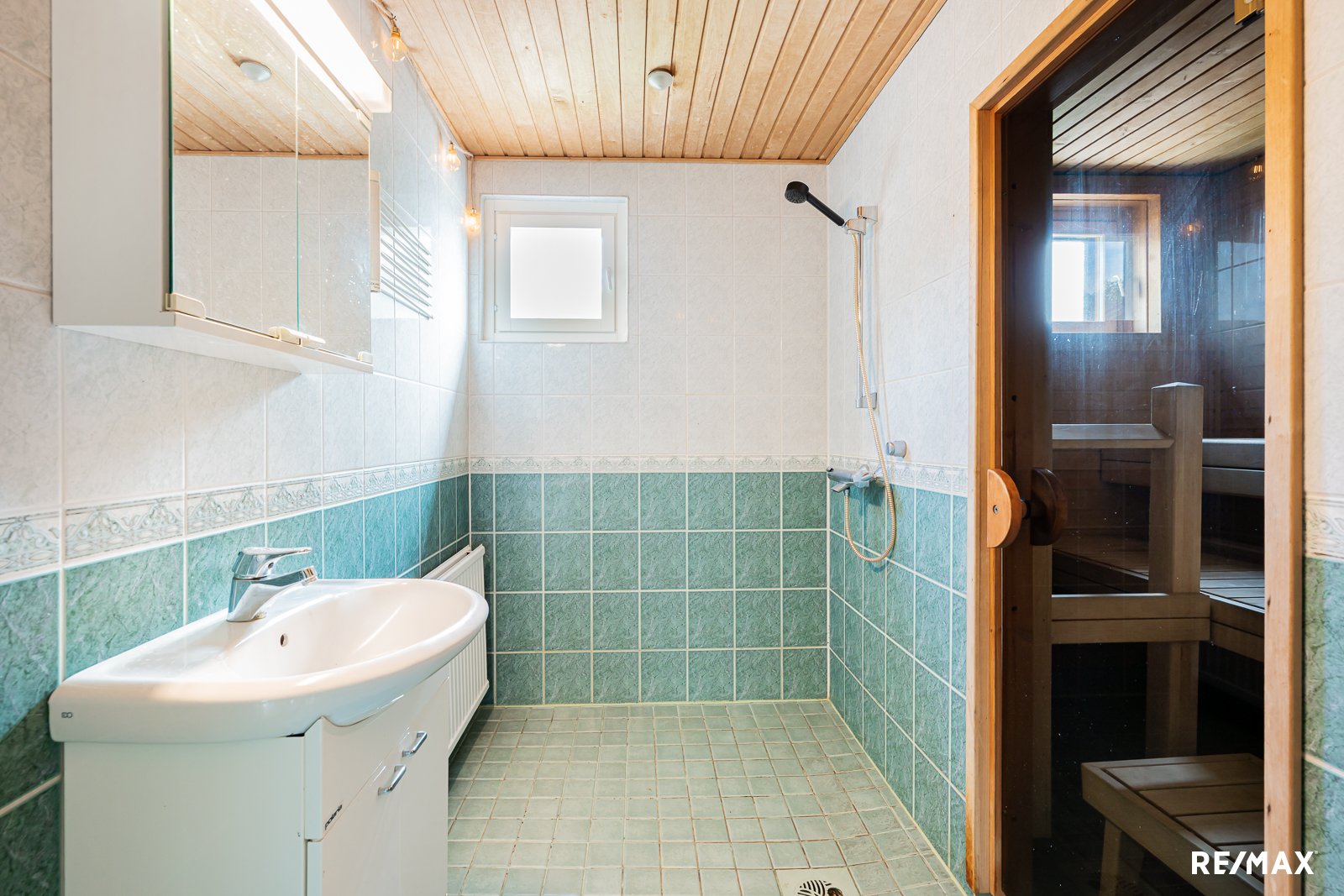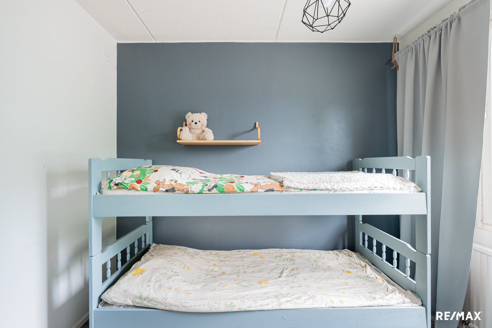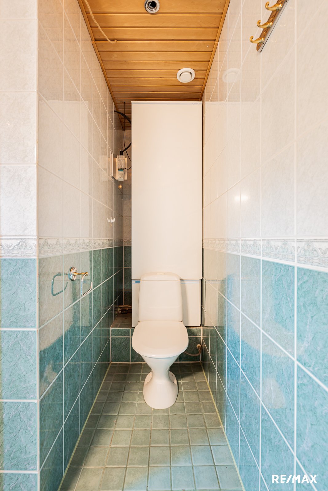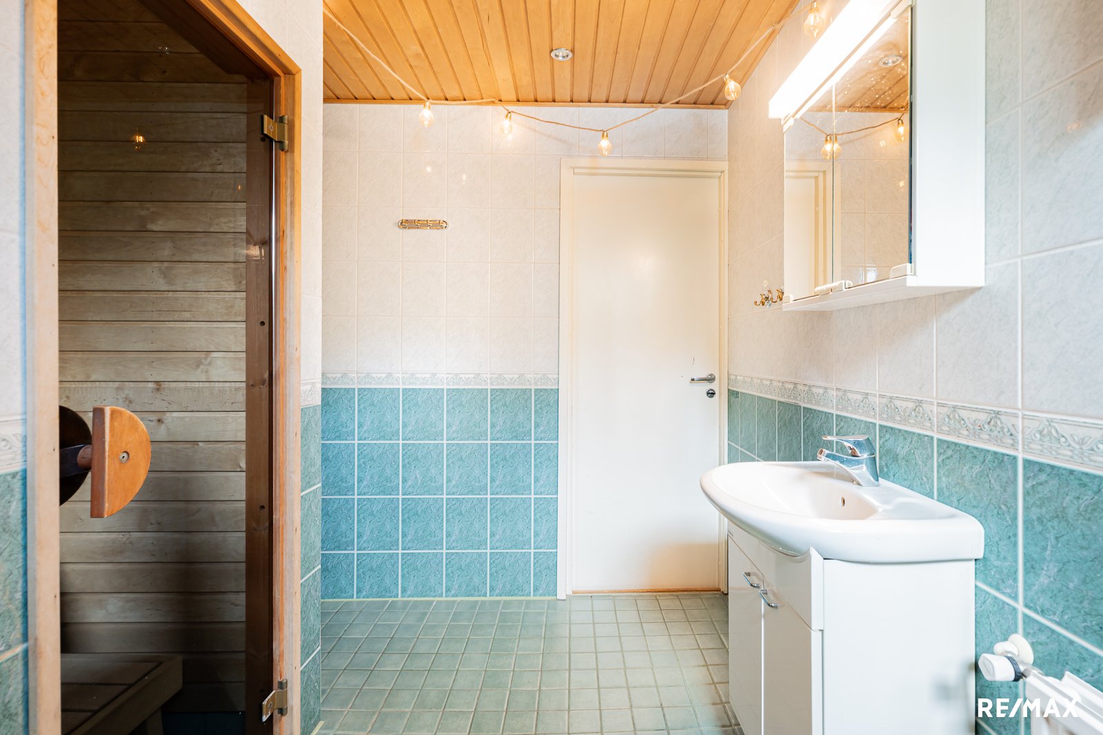 Yläkerrassa on kolme makuuhuonetta, vaatehuone, kylpyhuone kodin toisella wc-istuimella sekä sauna joka kruunaa tämän kodikkaan kokonaisuuden. Säilytystiloina on lisäksi kylmä ulkovarasto talon edustalla.
