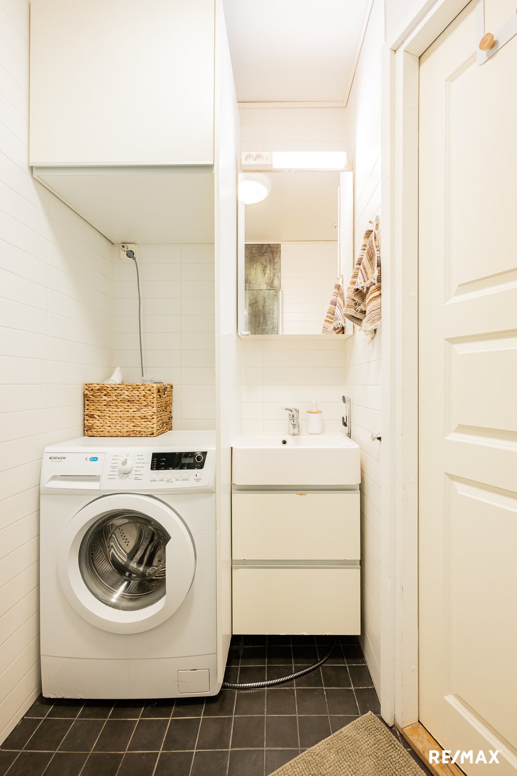 Kylpyhuoneessa tilaa on myös pyykkihuollolle.