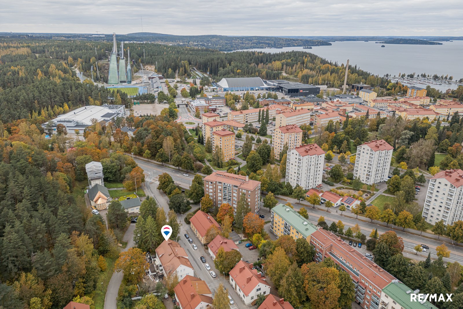 Tämä citykoti sijaitsee täysin remontoidussa, romanttisessa ja rauhallisessa pienkerrostalossa aivan Radiomäen juurella. Lähistöltä löytyy mm. keskustan palvelut sekä Salpausselän ulkoilumaastot.