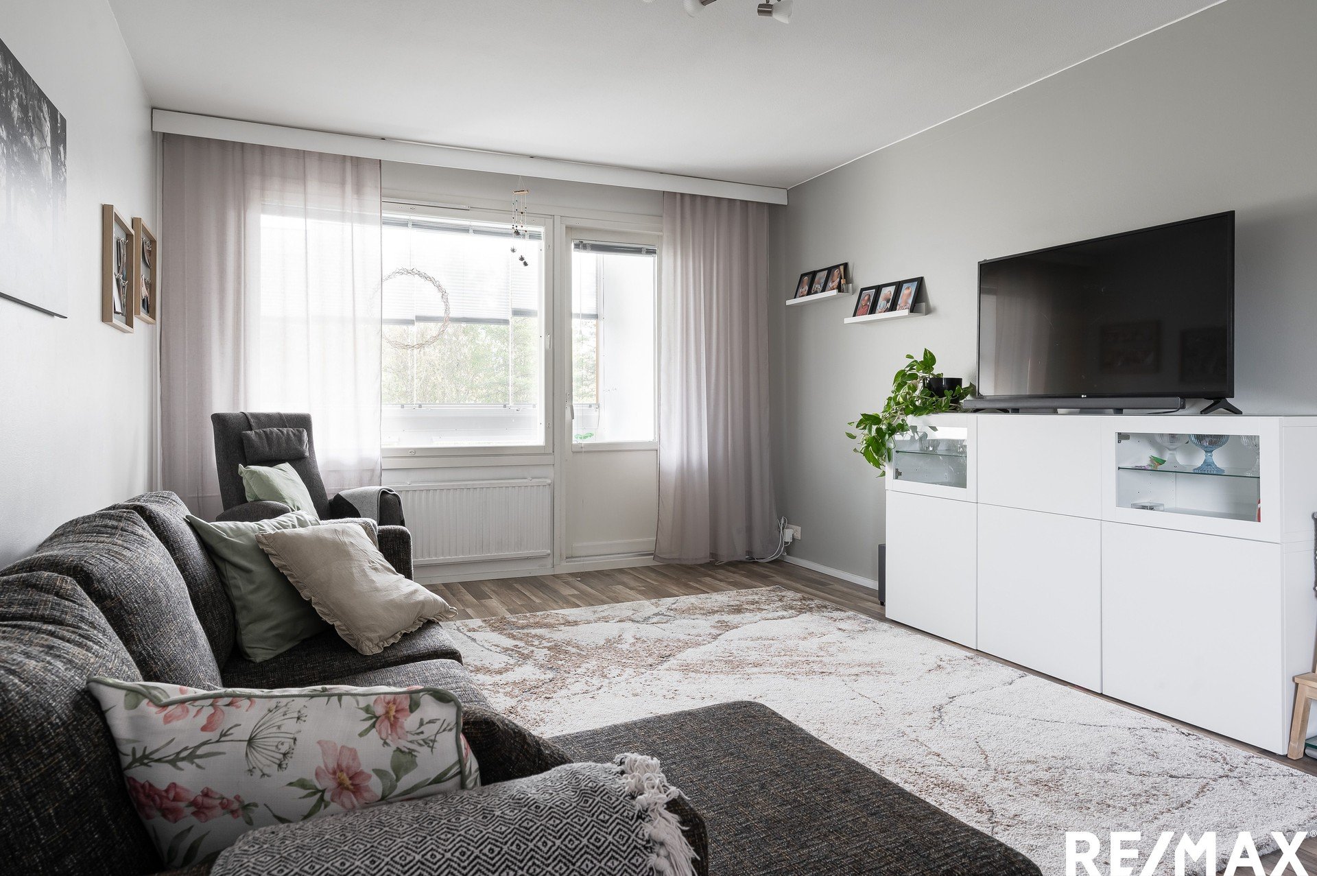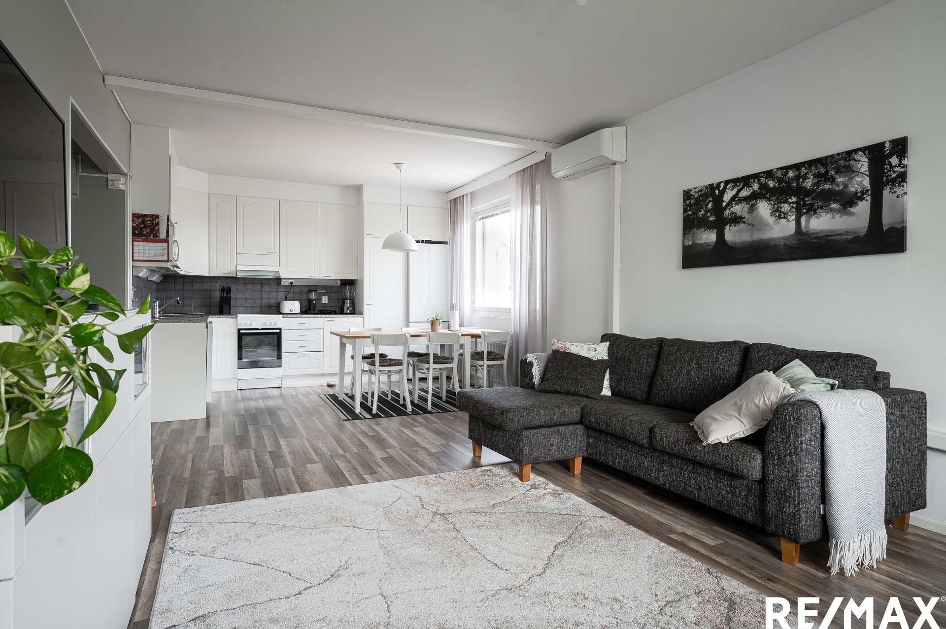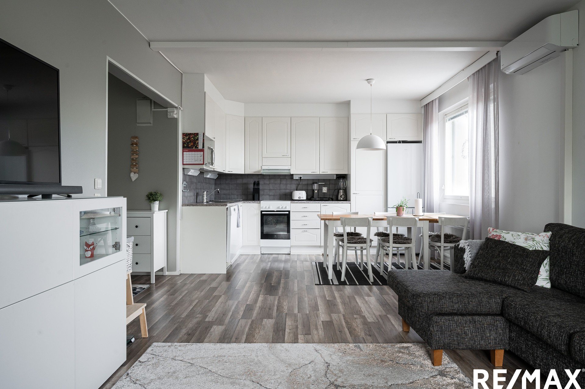 Tässä valoisassa huoneistossa keittiö ja olohuone muodostavat avaran ja toimivan kokonaisuuden. Olohuoneesta on käynti lasitetulle parvekkeelle, jossa voit nauttia rauhallisista hetkistä ja rentoutua omassa rauhassa.