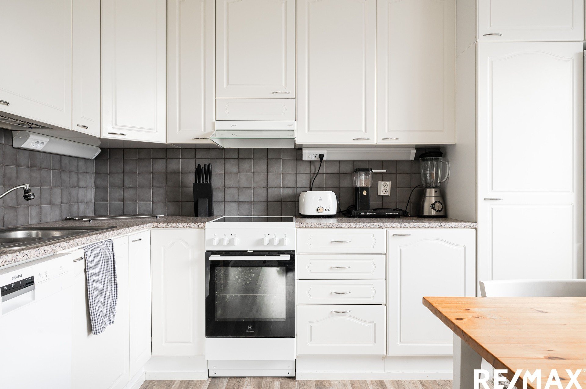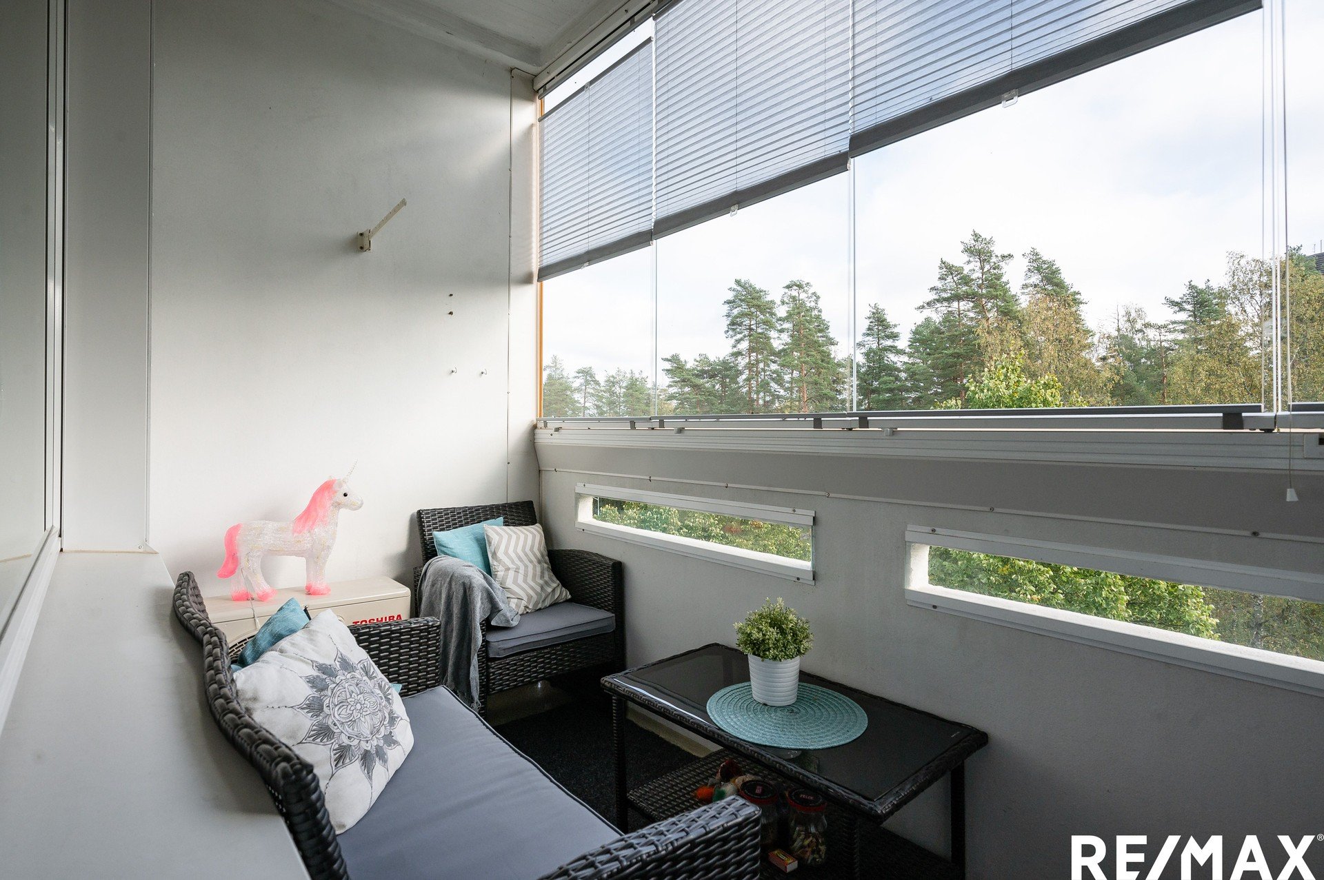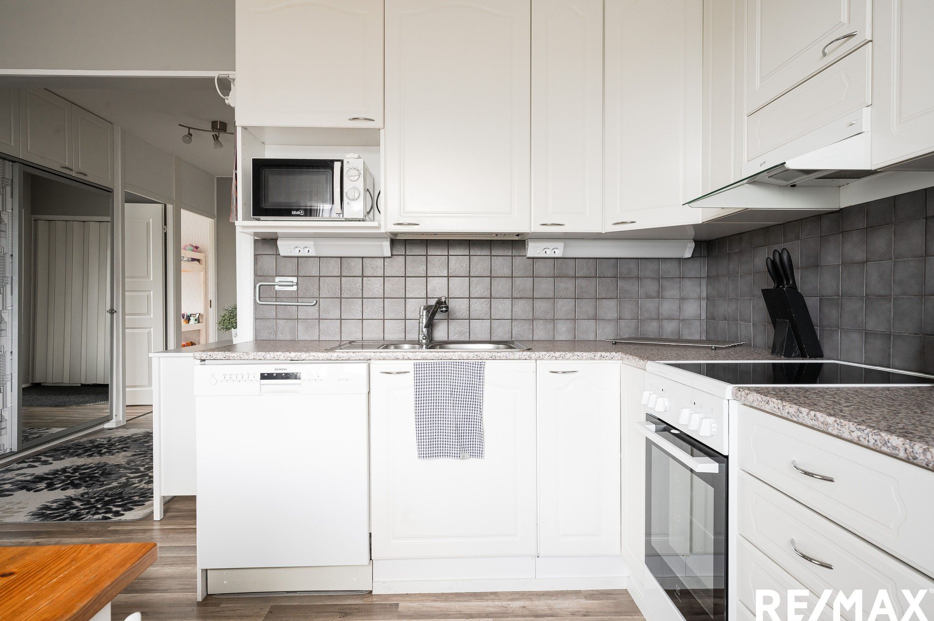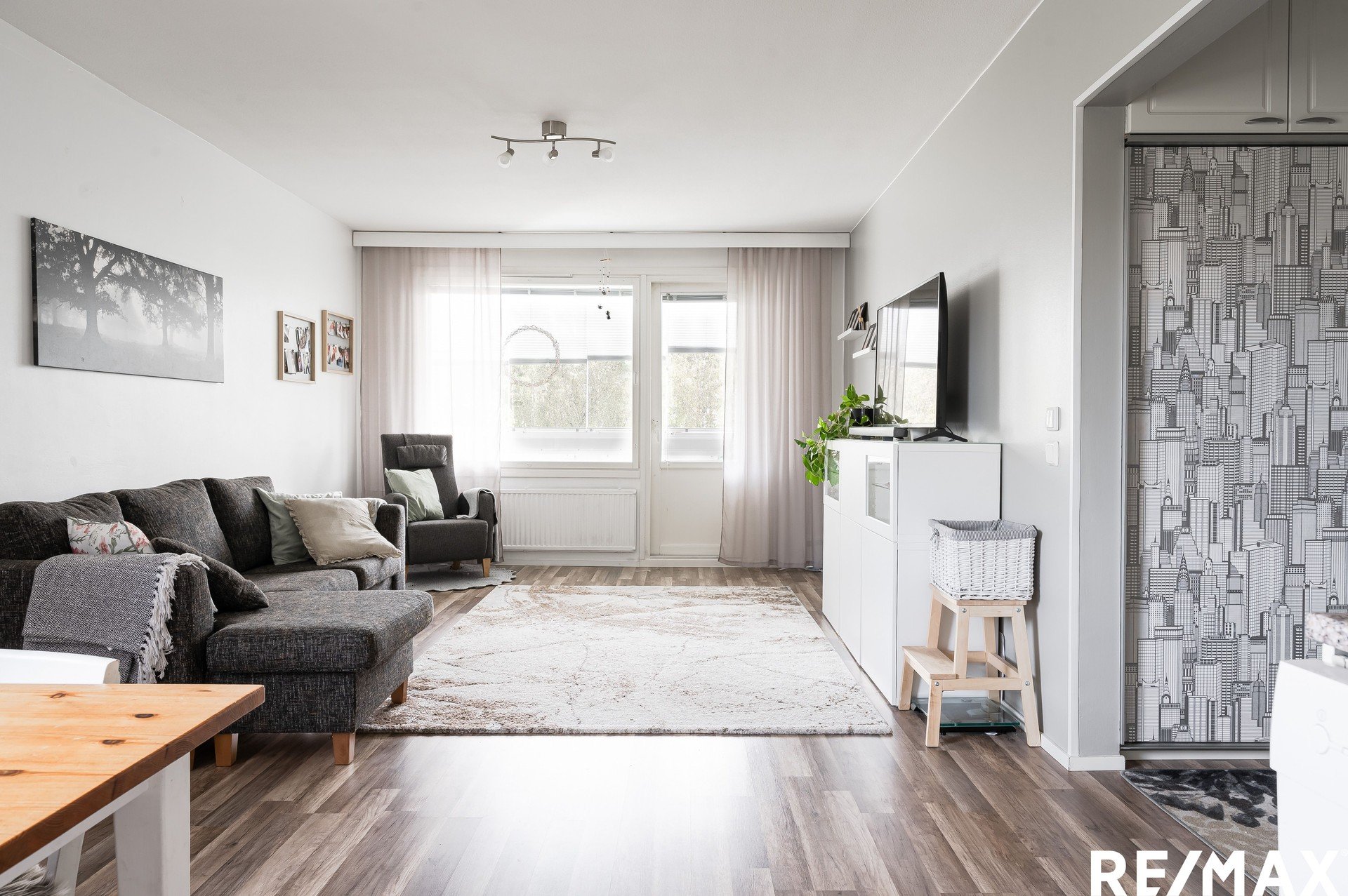 Tässä valoisassa huoneistossa keittiö ja olohuone muodostavat avaran ja toimivan kokonaisuuden. Olohuoneesta on käynti lasitetulle parvekkeelle, jossa voit nauttia rauhallisista hetkistä ja rentoutua omassa rauhassa.