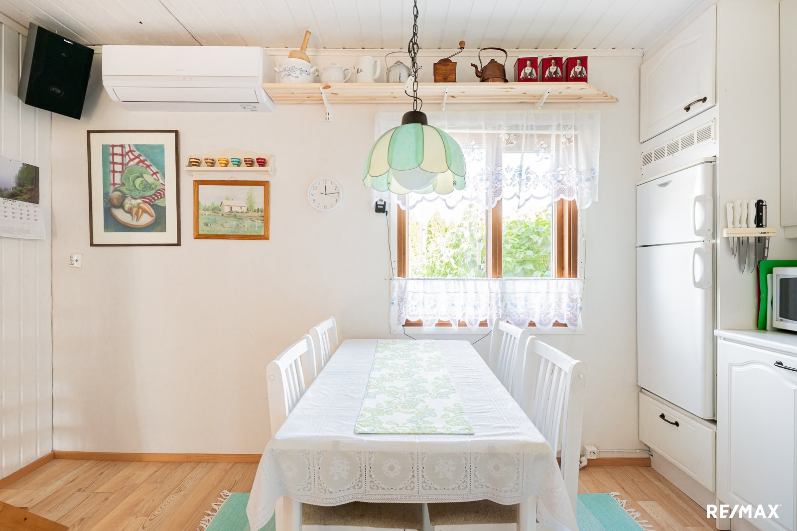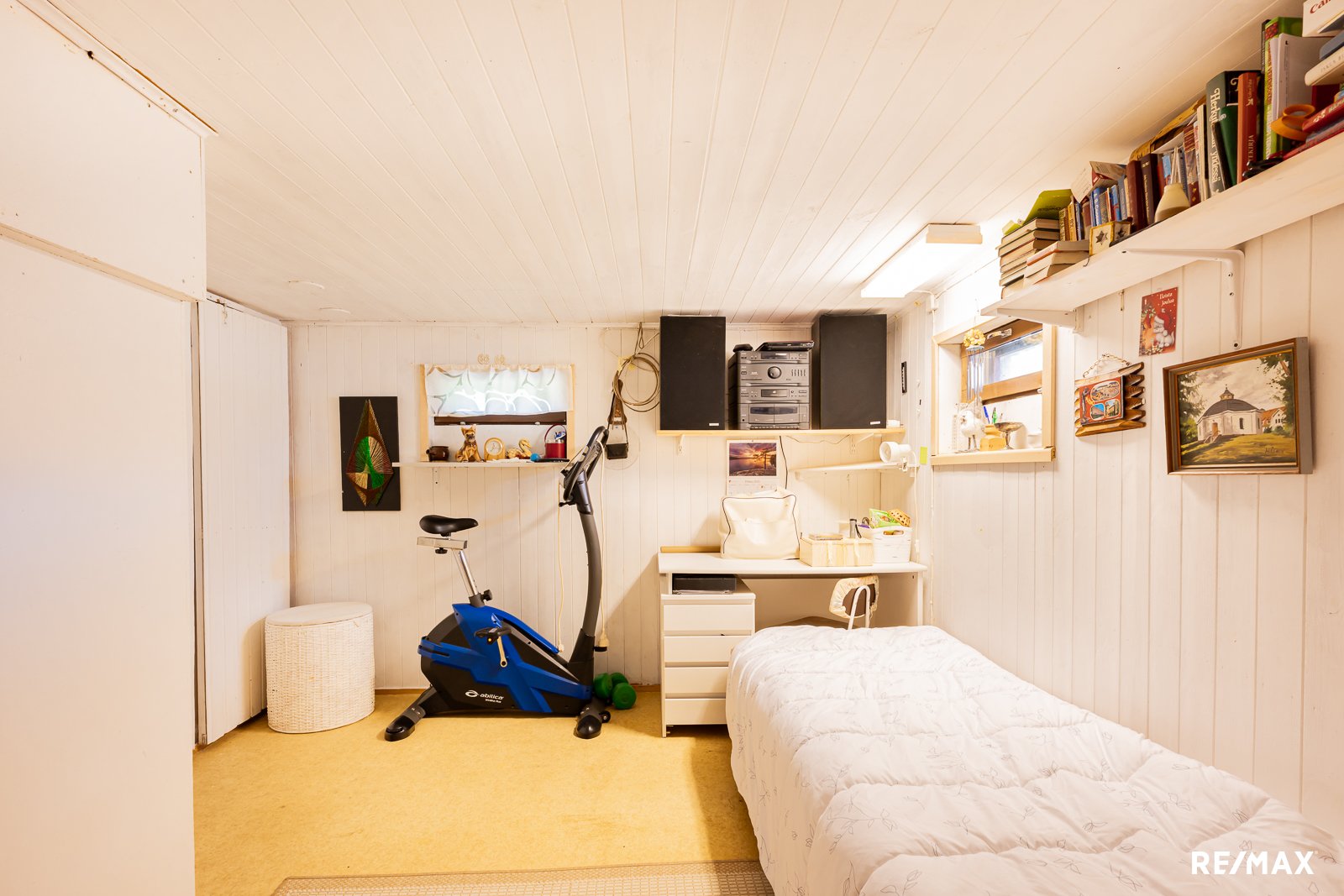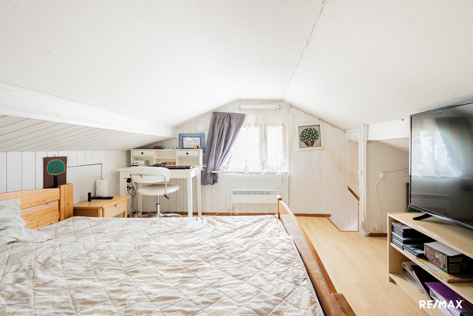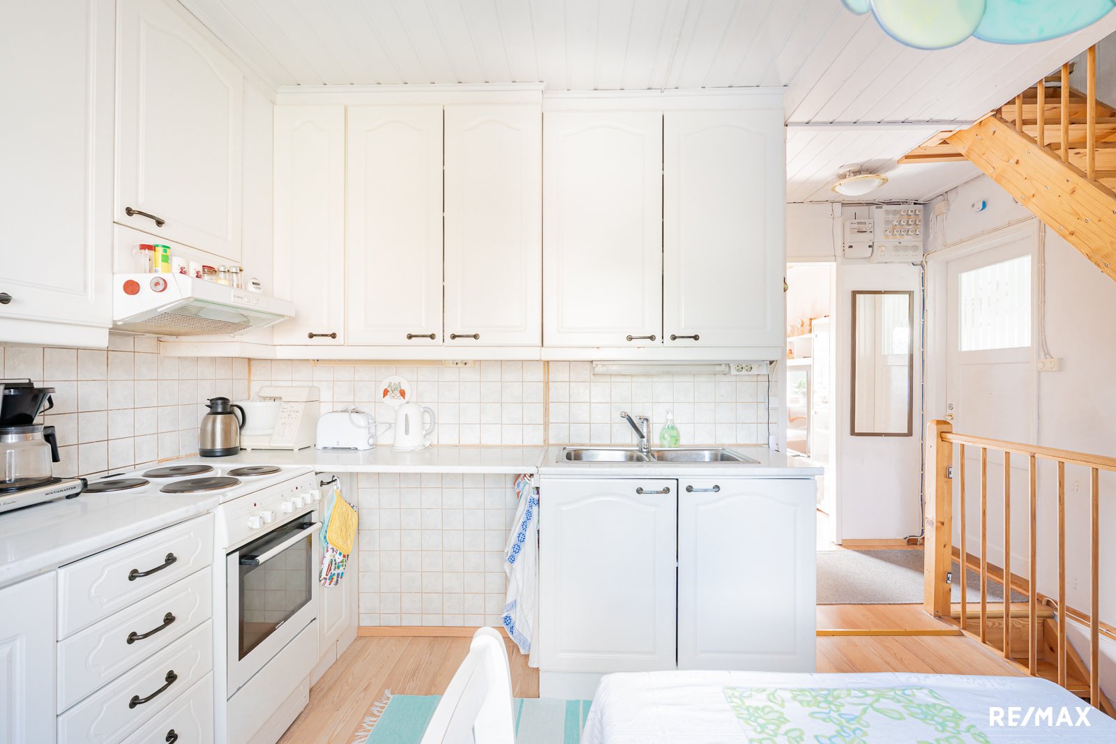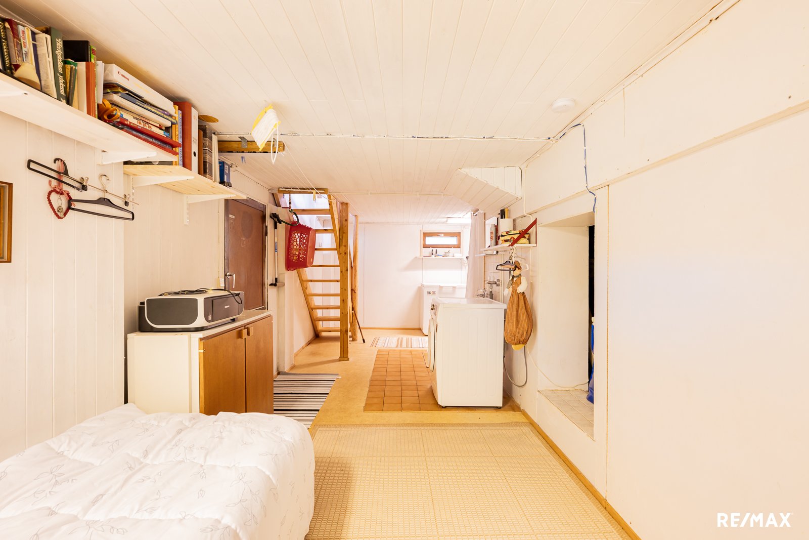 Yläkerrassa sijaitsee makuuhuone, jossa on tilaa rentoutua ja levätä. Pihapiirissä on myös perinteinen puulämmitteinen pihasauna, joka tarjoaa mahdollisuuden rentoutua kiireisen päivän jälkeen. Lisäksi kuisti ja erillinen ulkorakennus tuovat lisää säilytystilaa ja mahdollisuuksia.
