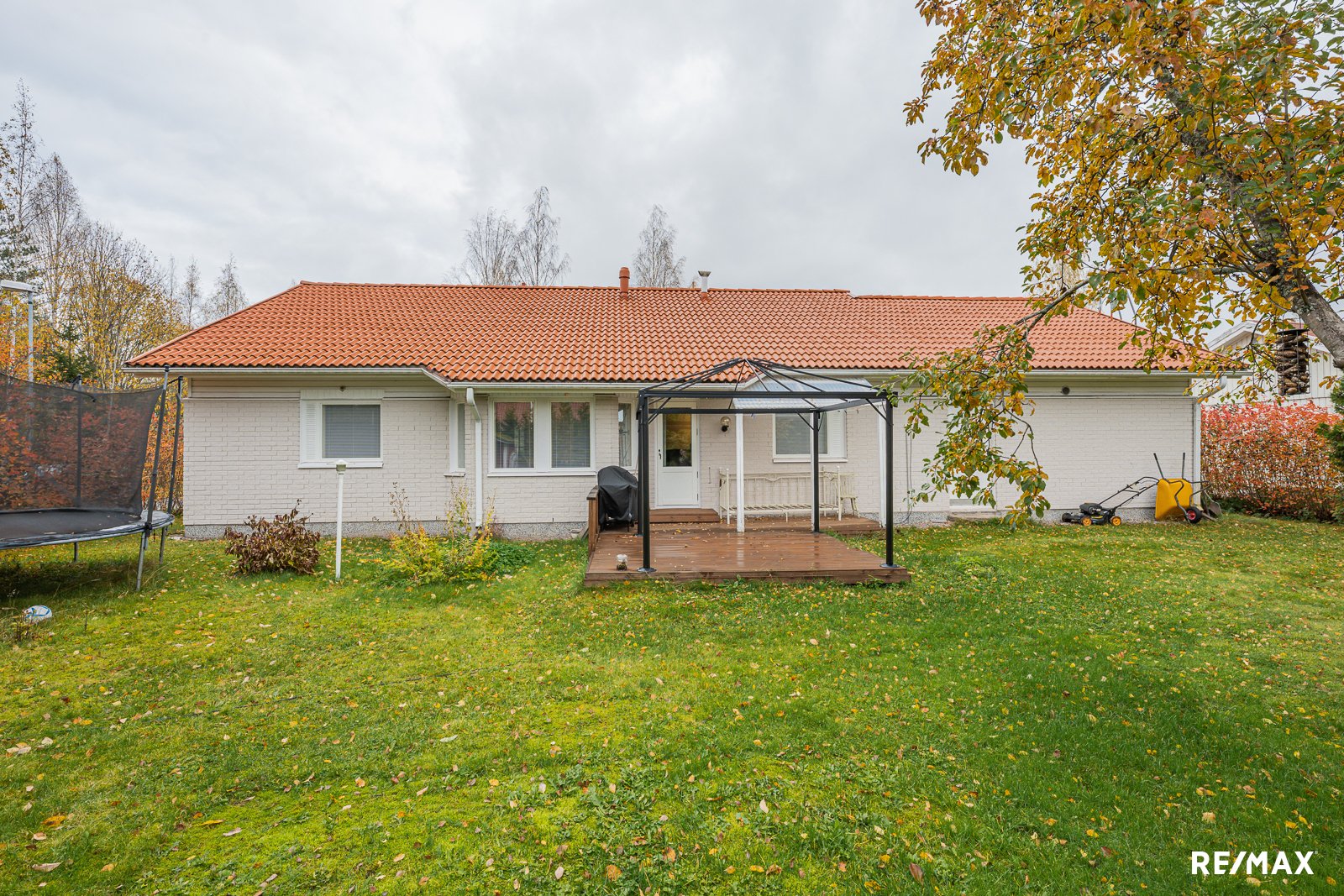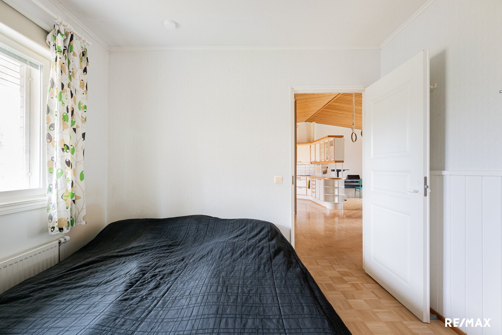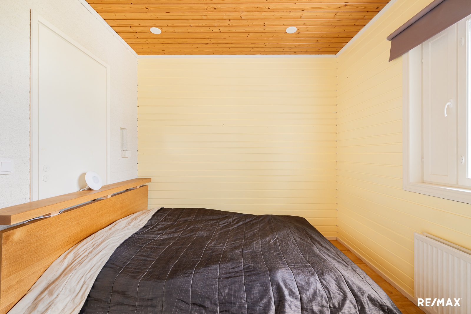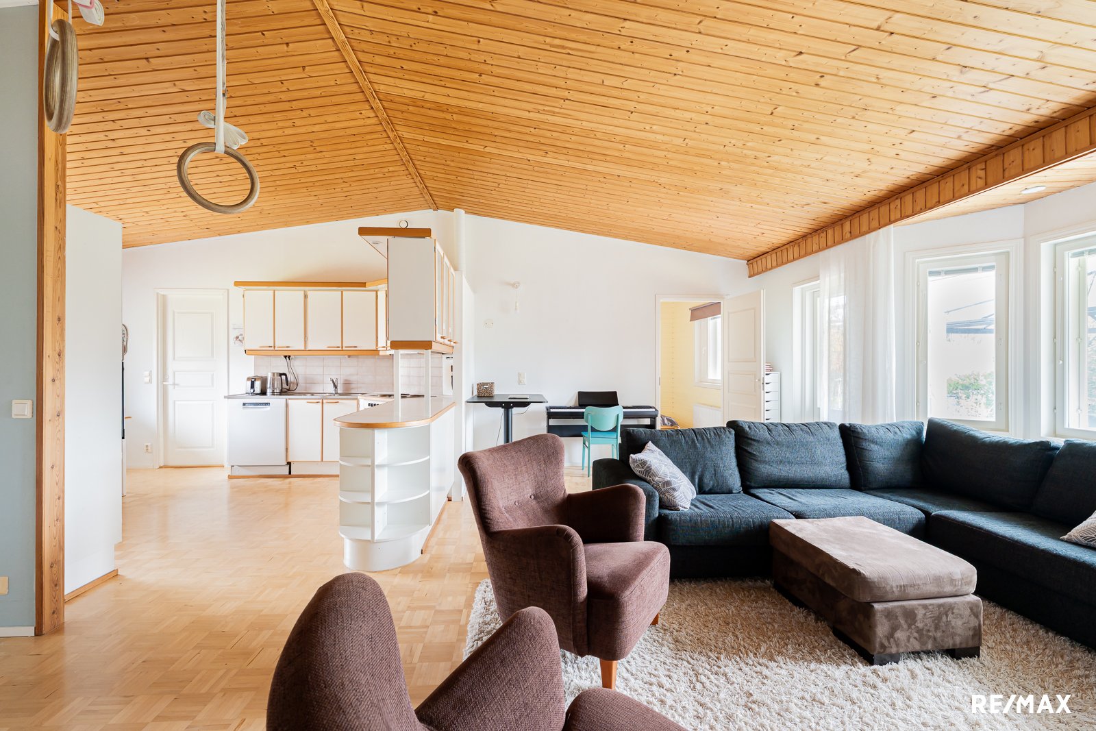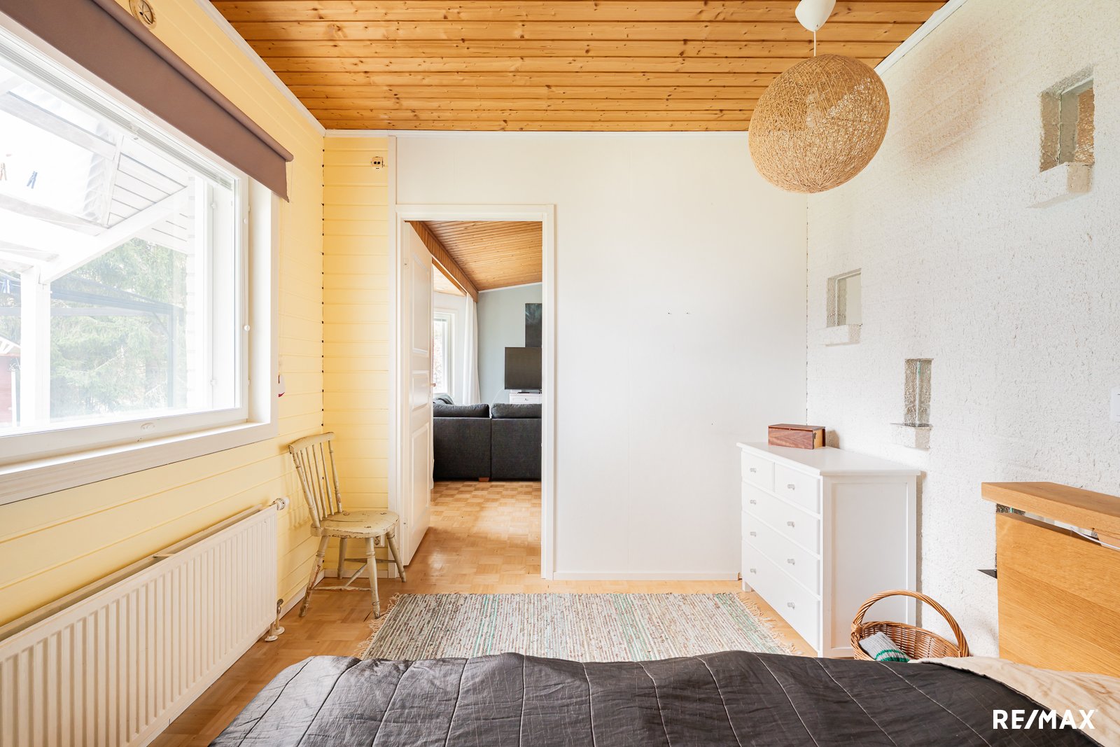 Talo käsittää kolme makuuhuonetta, joista yhdessä on vaatehuone ja olohuoneesta on suora käynti vastarakennetulle terassille.