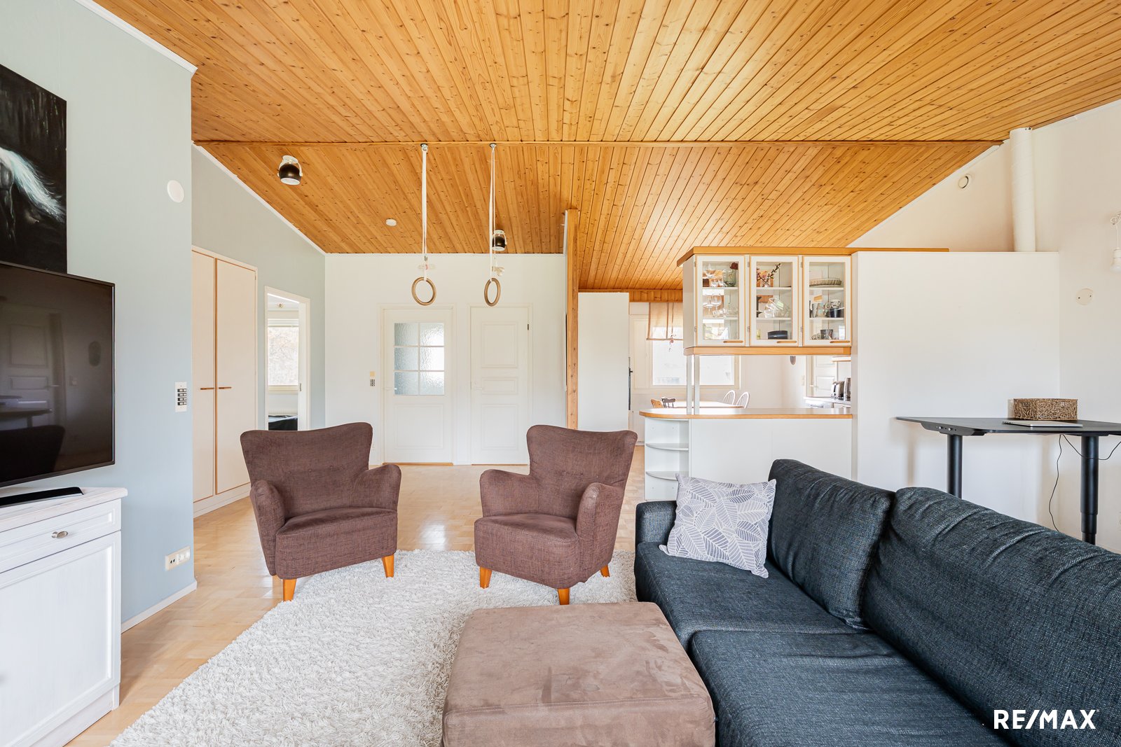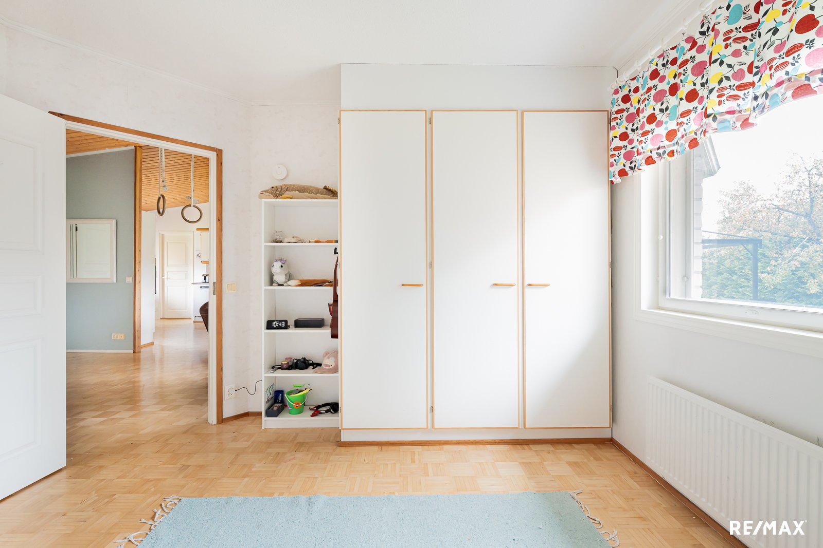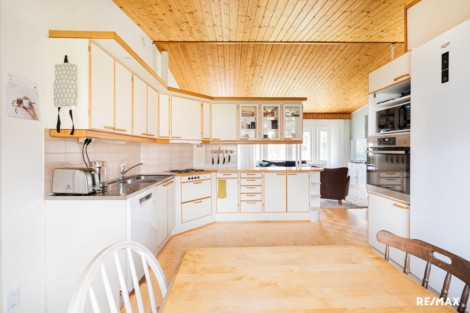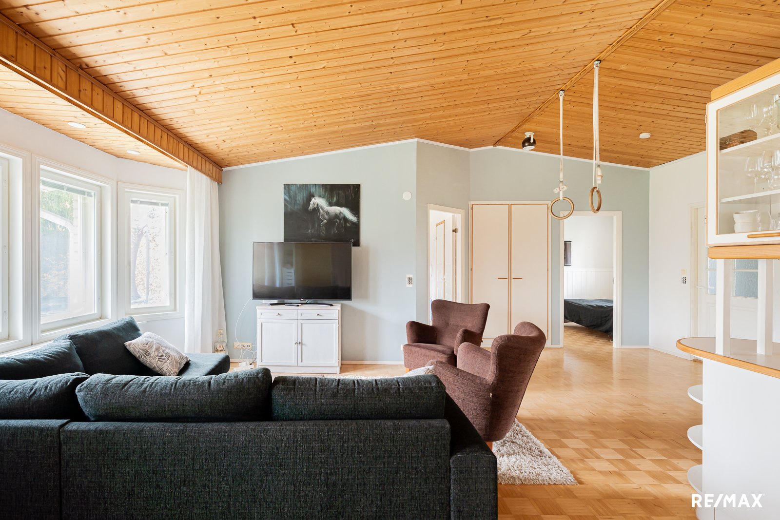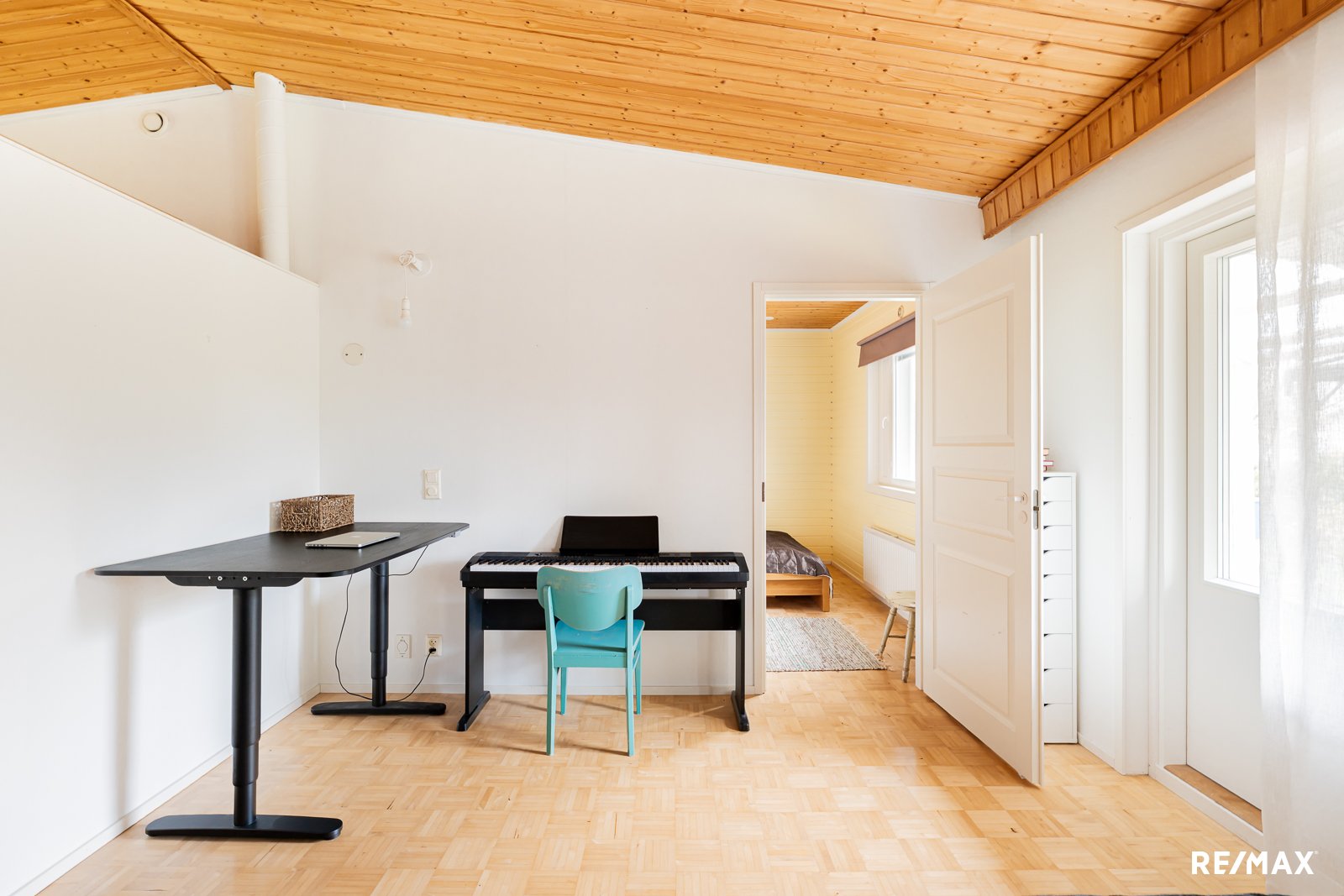 Talo käsittää kolme makuuhuonetta, joista yhdessä on vaatehuone ja olohuoneesta on suora käynti vastarakennetulle terassille.