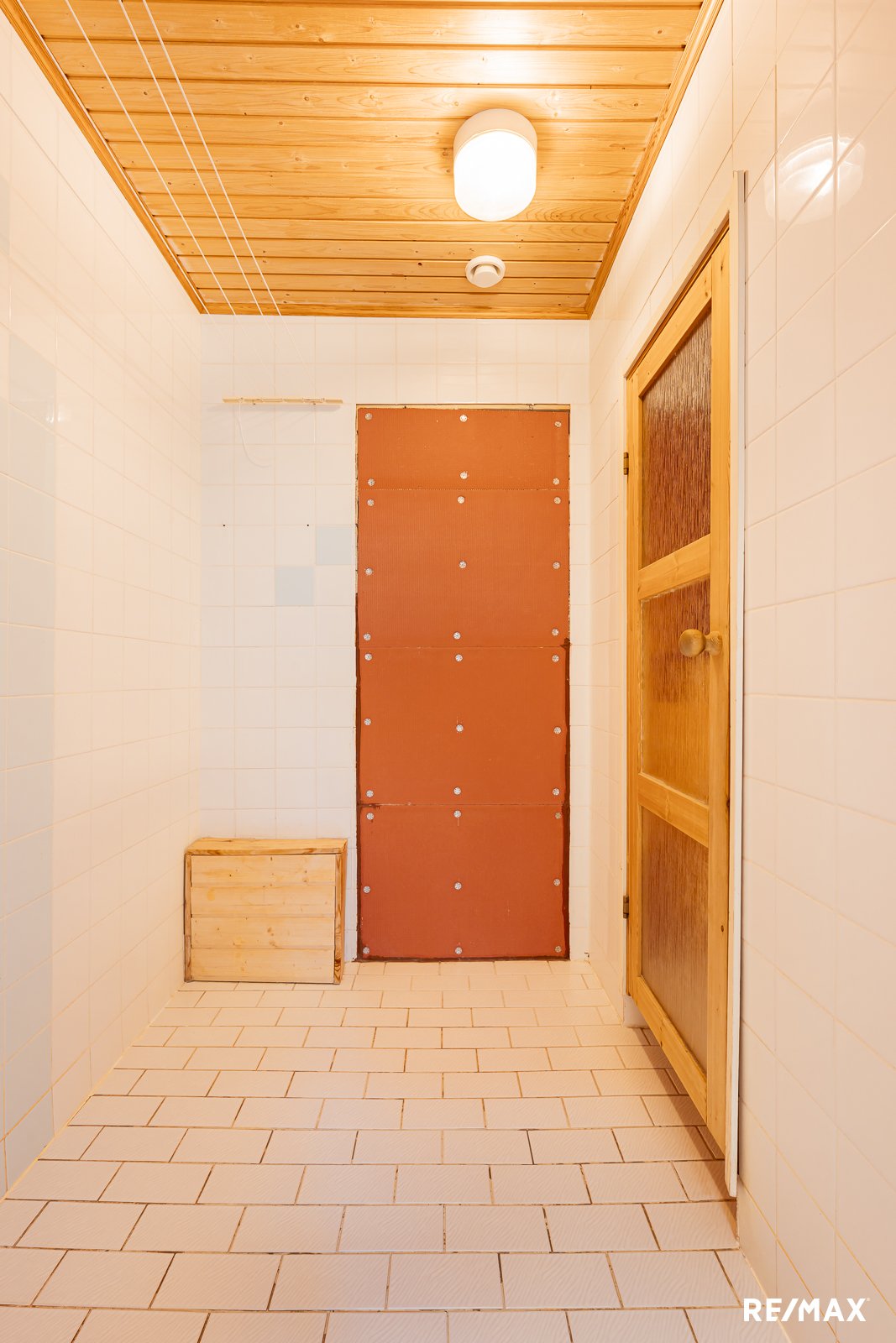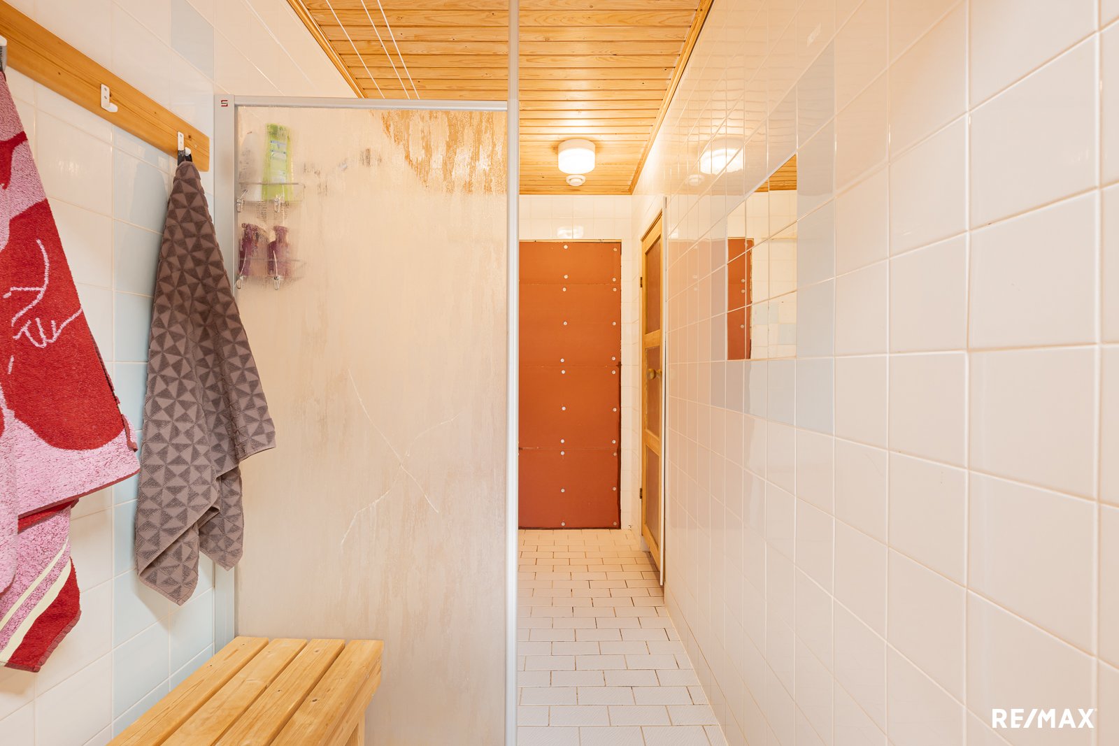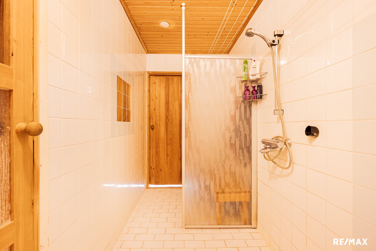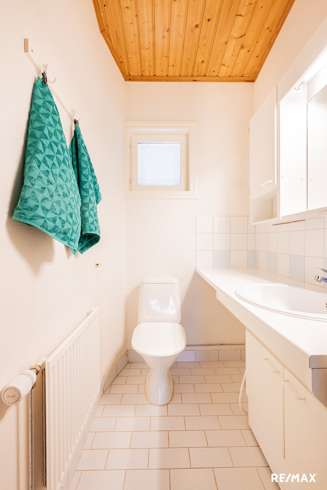 Kylpyhuoneessa on vesikiertoinen lattialämmitys, mikä tuo mukavuutta arkeen. Kaksi erillistä wc:tä helpottaa perheen kiireisiä aamuja. Lisäksi talosta löytyy sauna, jossa on sähkökiuas ja kodinhoitohuone, joka tekee pyykkihuollosta vaivatonta.