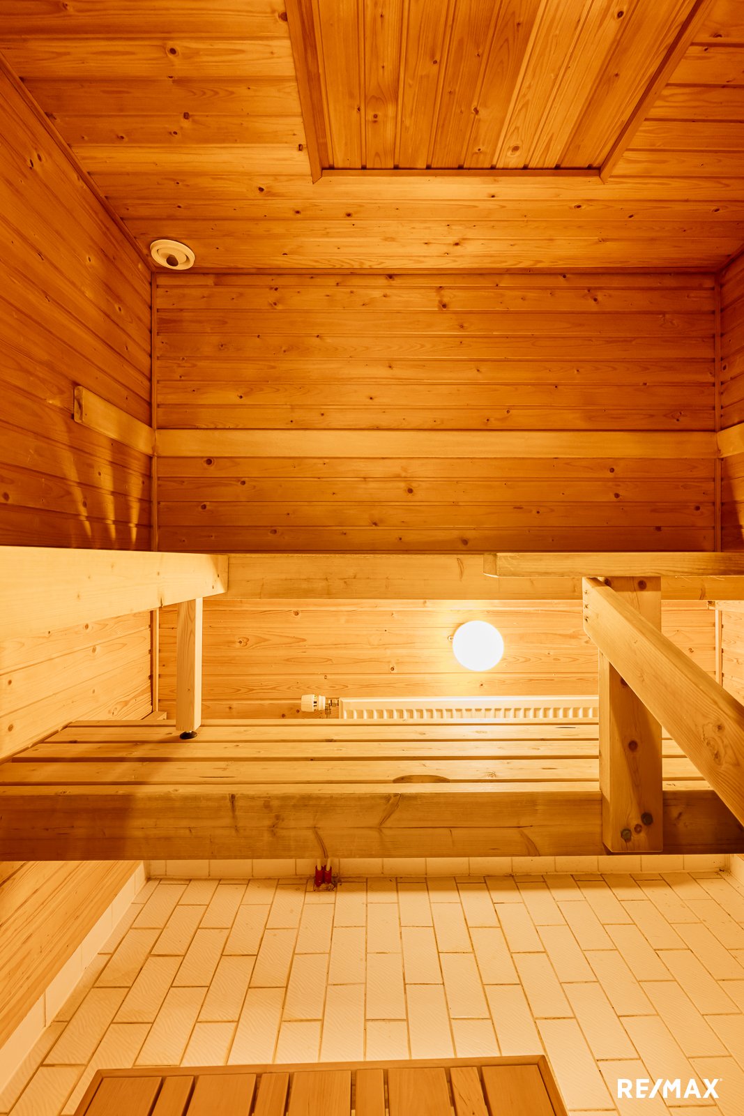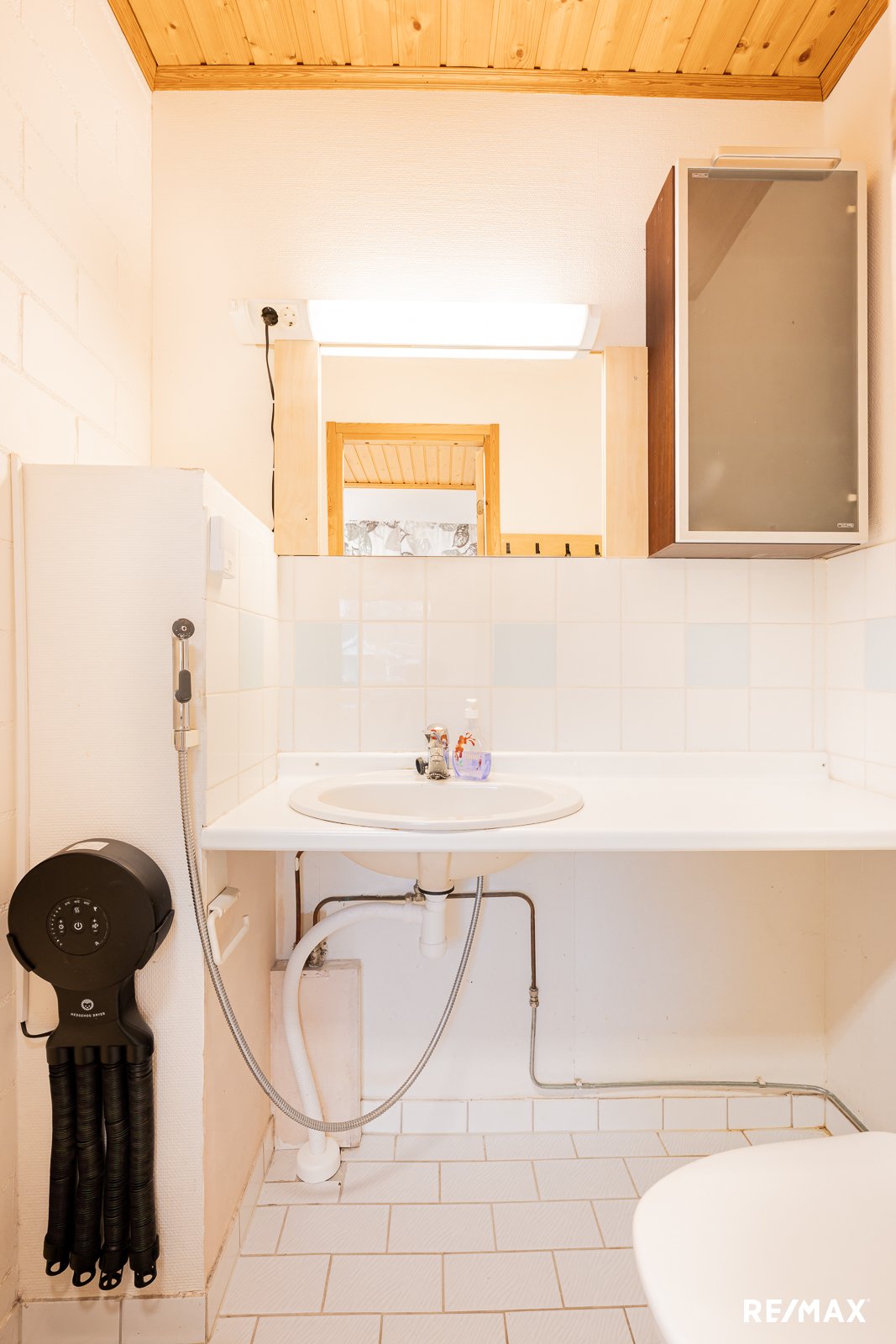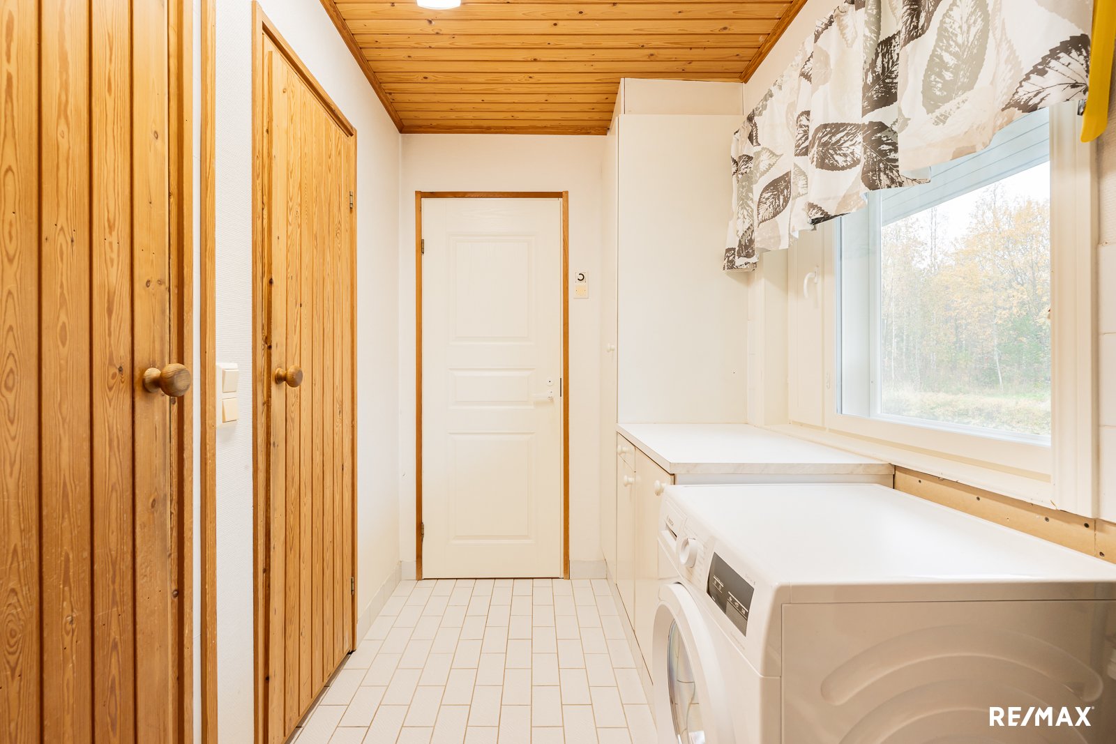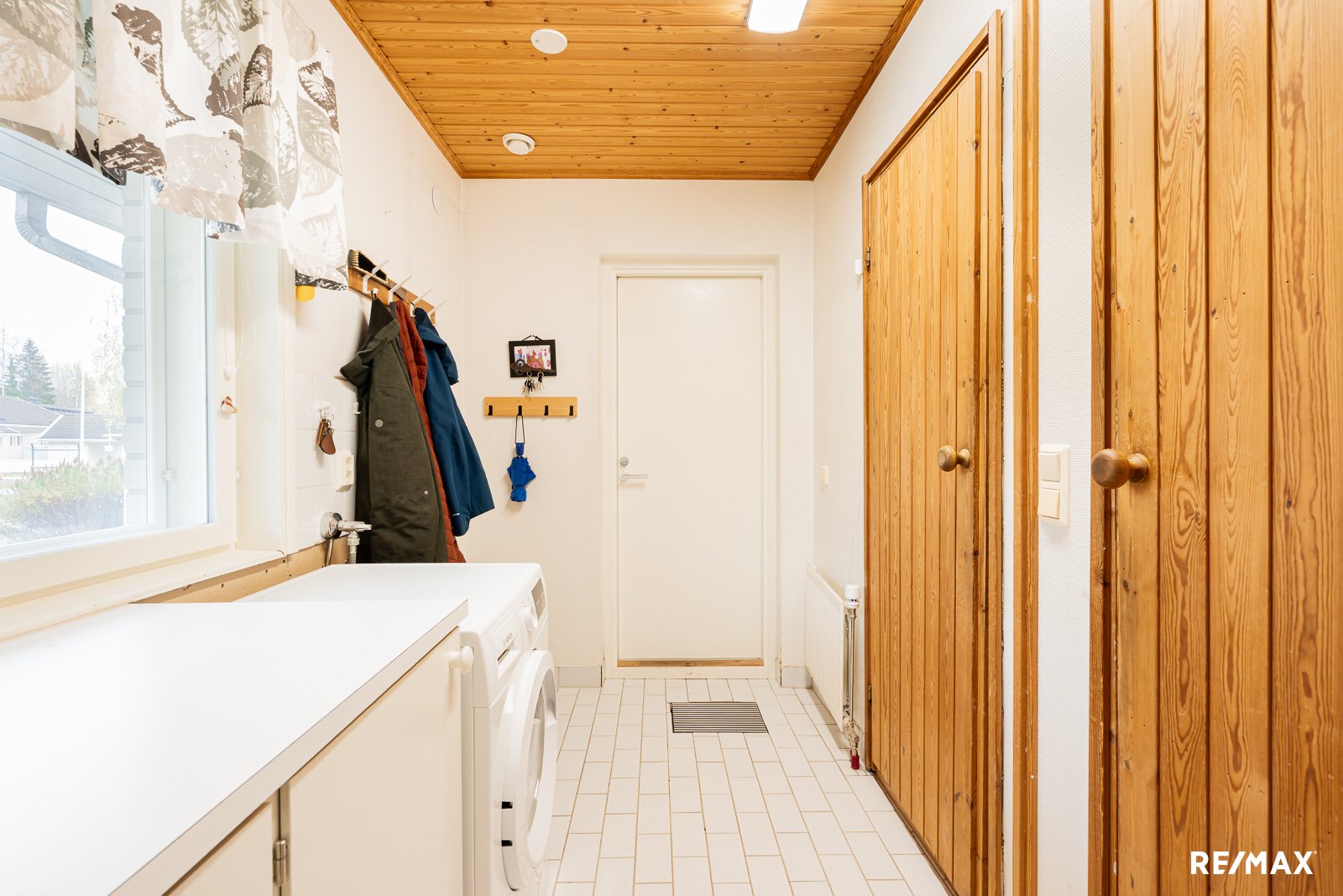 Kylpyhuoneessa on vesikiertoinen lattialämmitys, mikä tuo mukavuutta arkeen. Kaksi erillistä wc:tä helpottaa perheen kiireisiä aamuja. Lisäksi talosta löytyy sauna, jossa on sähkökiuas ja kodinhoitohuone, joka tekee pyykkihuollosta vaivatonta.