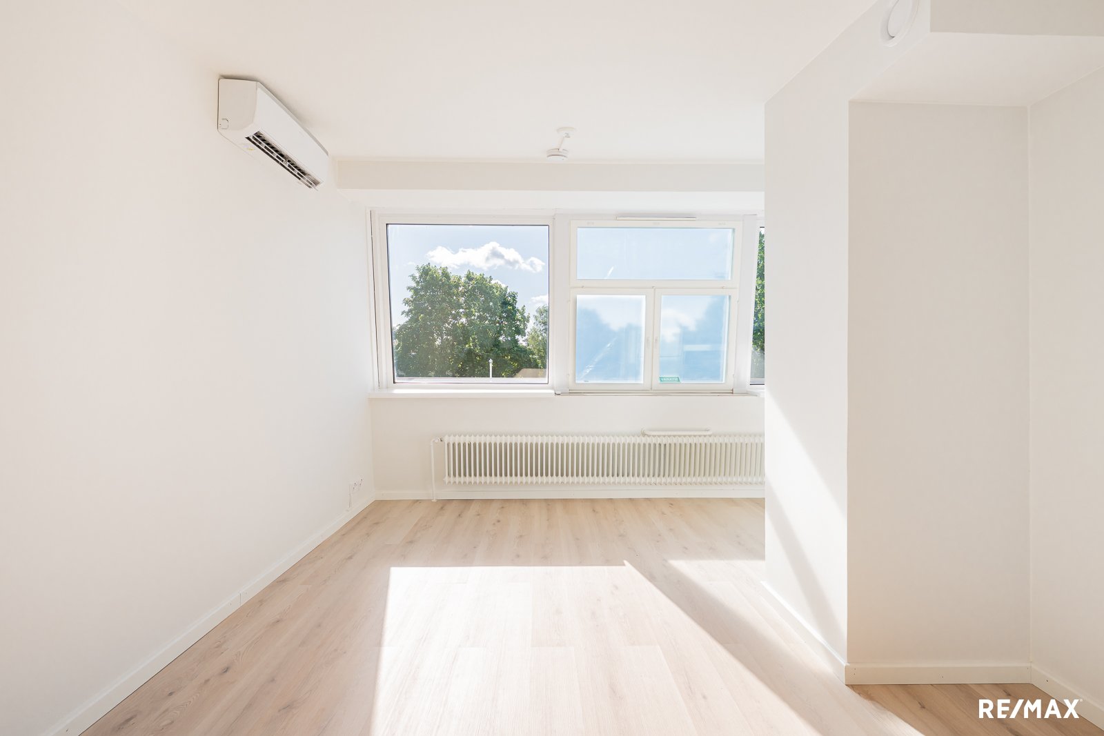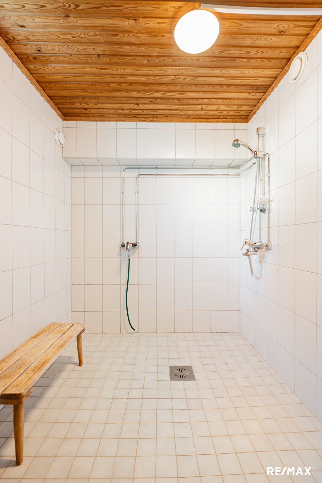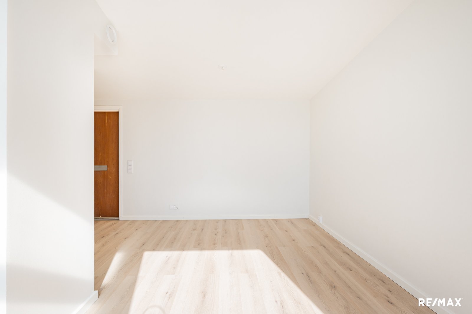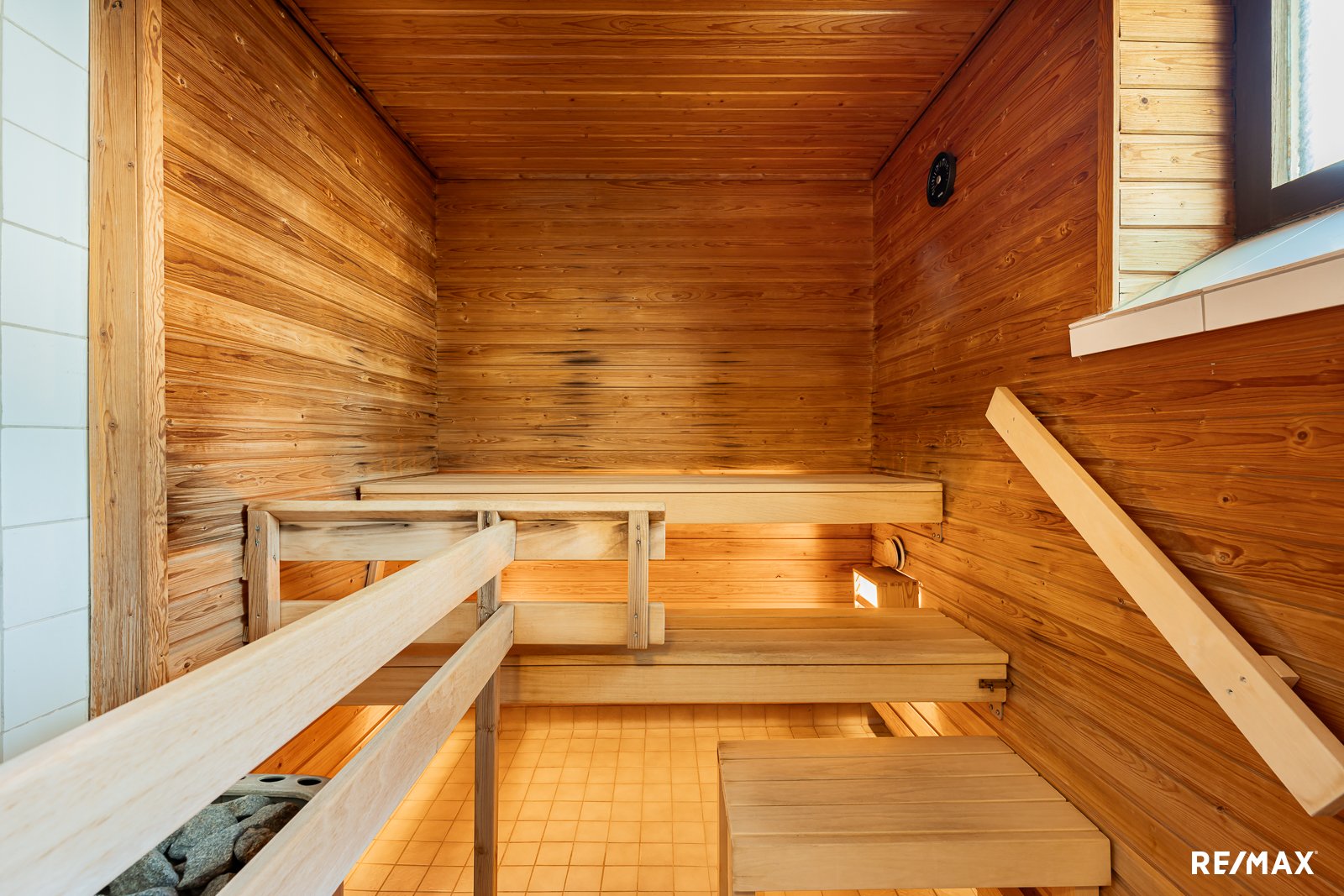 Keittiö ja olohuone löytyvät samasta tilasta ja tilava makuuhuone toiselta puolelta kotia. Molemmissa tiloissa on oma ilmalämpöpumppu viilennykseen. Huoneiston katto nousee kohti ikkunoita luoden upean kokonaisuuden ja ikkunatkin jäävät tyylikkäästä vinoon tuoden kauniisti luonnonvaloa asuntoon. Wc ja suihku ovat toimivasti omissa tiloissaan.