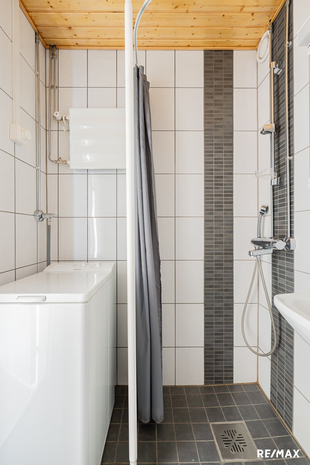 WC-istuin, suihku, pesukoneliitäntä, peilikaappi ja bidee-suihku