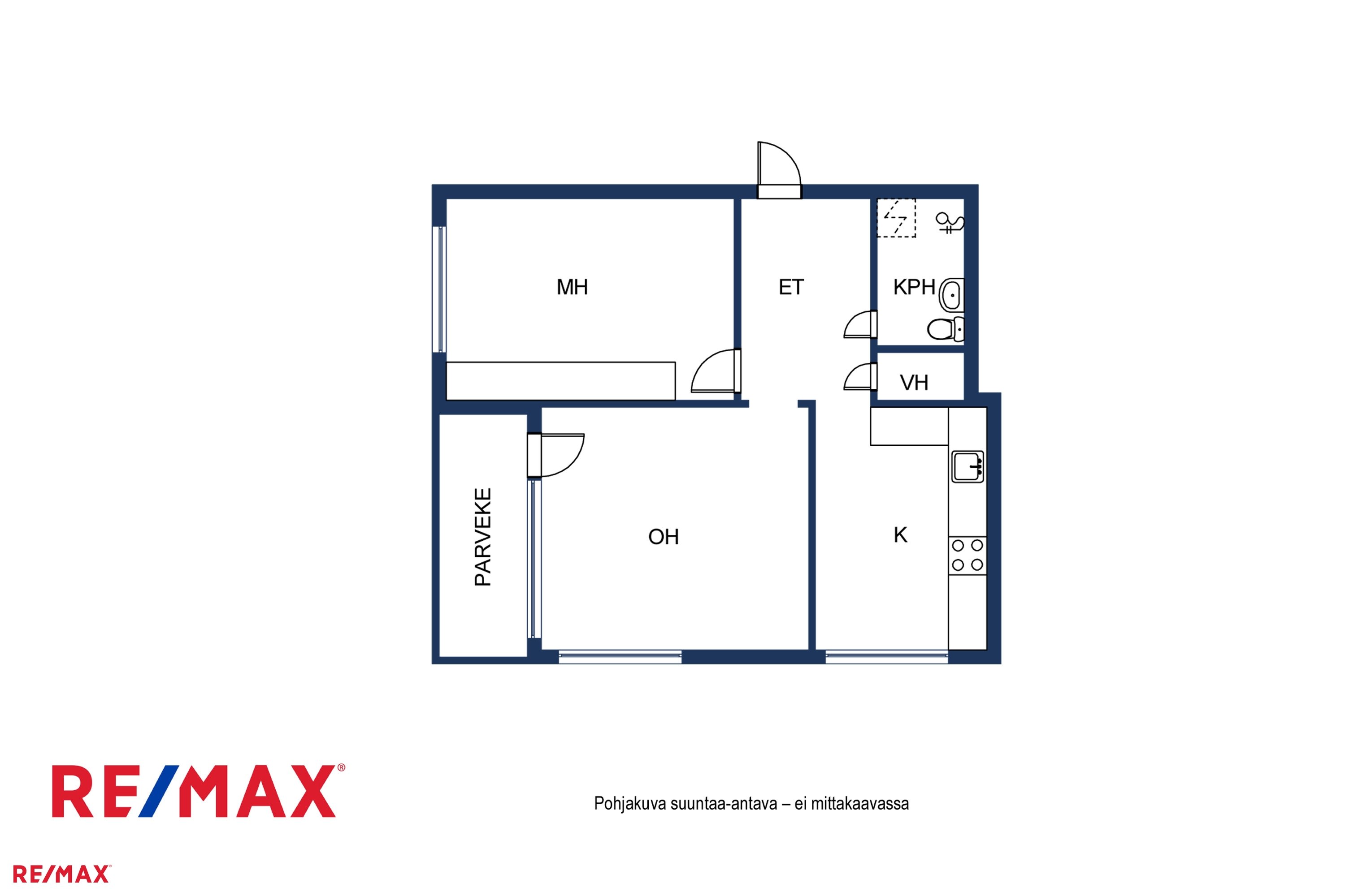 Ei tarkistusmitattu. Pinta-alat saattavat tämän ikäisissä kohteissa (yhtiö rekisteröity ennen 01.01.1992) poiketa olennaisestikin asuinrakennusten nykyisten mittaustapojen ja standardien (SFS 5139) mukaan laskettavasta asuintilojen pinta-alasta. Pinta-ala voi siis olla edellä mainittua pienempi tai suurempi.