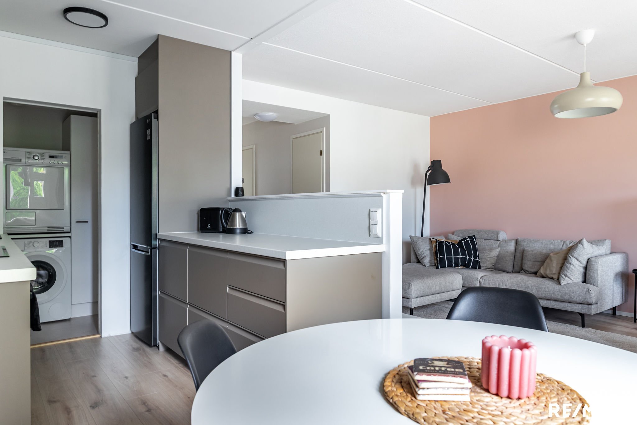 Asunnossa on kaksi makuuhuonetta, tilava olohuone sekä juuri remontoitu keittiö, jossa on modernit kodinkoneet, kuten induktioliesi ja erillinen uuni. Kylpyhuoneen lattialämmitys tuo arkeen ripauksen luksusta, ja oma sauna kutsuu rentoutumaan. Lisäksi asunnossa on erillinen wc, vaatehuone sekä kodinhoitohuone, jossa on tilaa pesukoneelle ja kuivausrummulle.