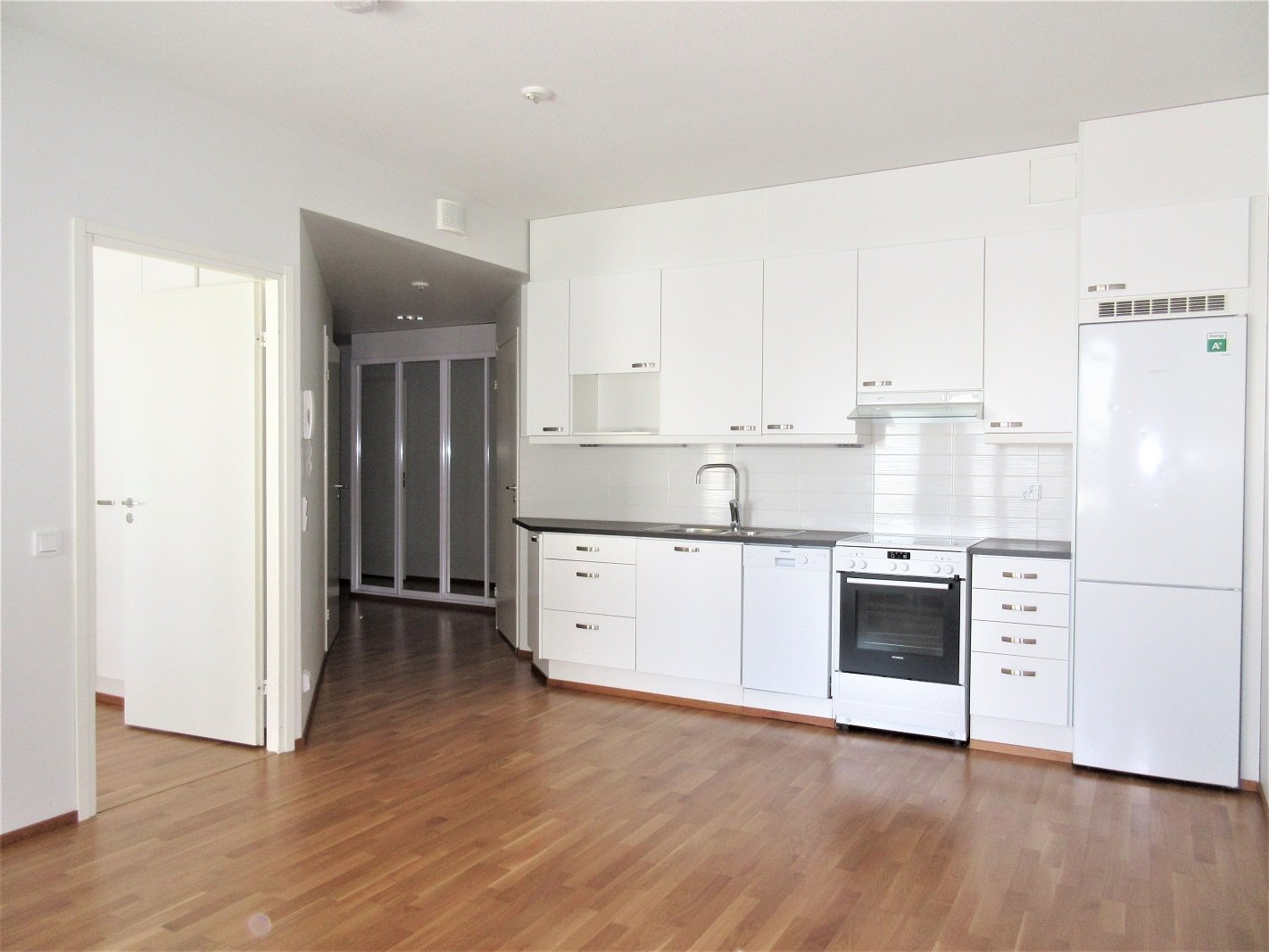 Keittiö on hyvin varusteltu, ja sieltä löytyy muun muassa jääkaappipakastin ja astianpesukone. Olohuoneessa ja makuuhuoneessa on kaunis parkettilattia, joka luo lämpimän tunnelman. Kylpyhuoneessa on modernit mukavuudet, kuten lattialämmitys ja pesukoneliitäntä. Asunnon kruunaa oma sauna sekä lasitettu parveke, jossa voi nauttia rauhallisista hetkistä.
