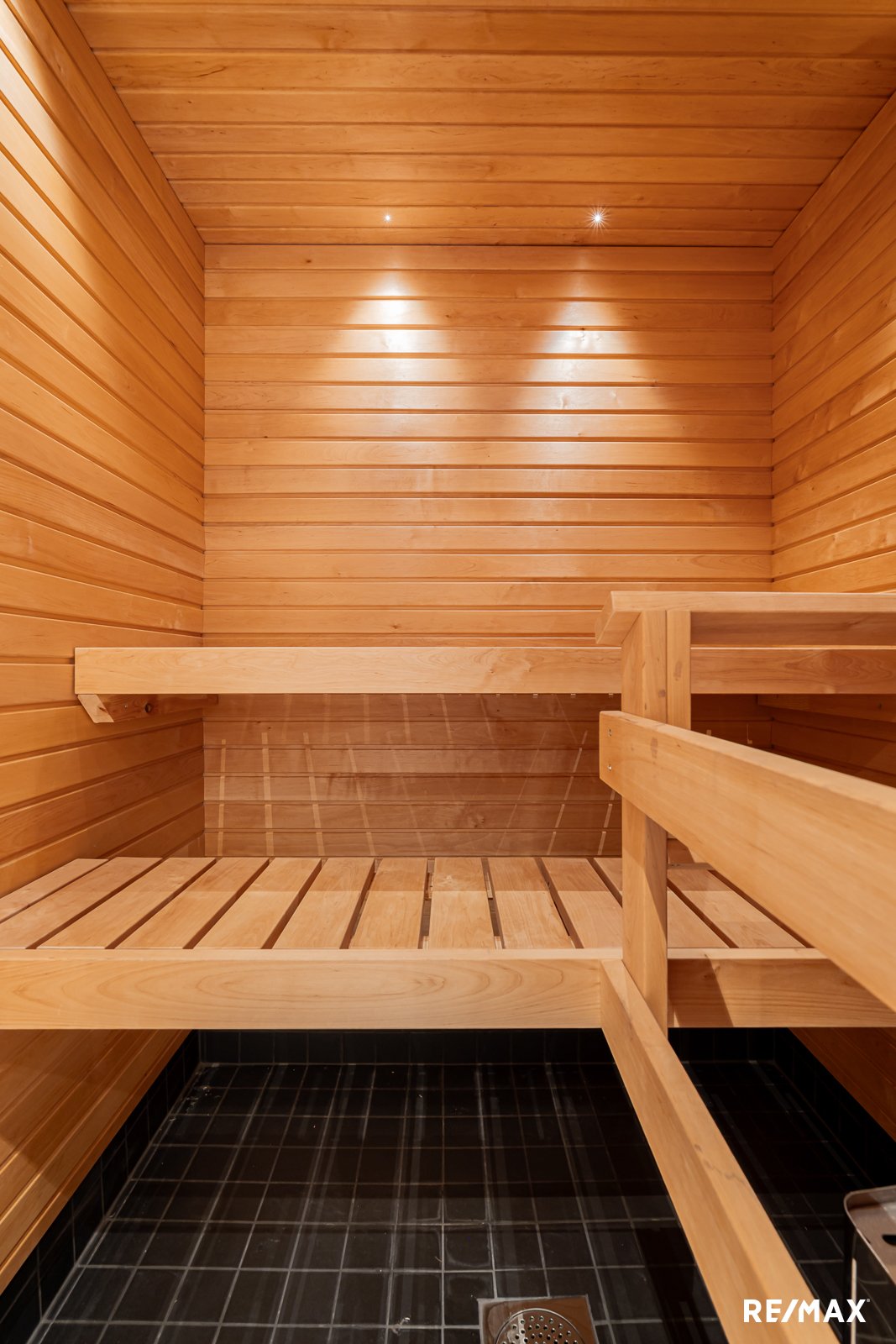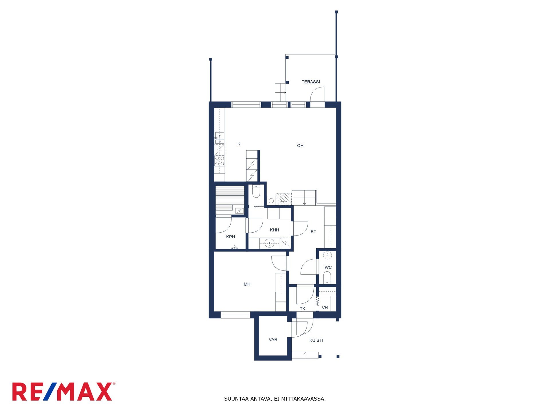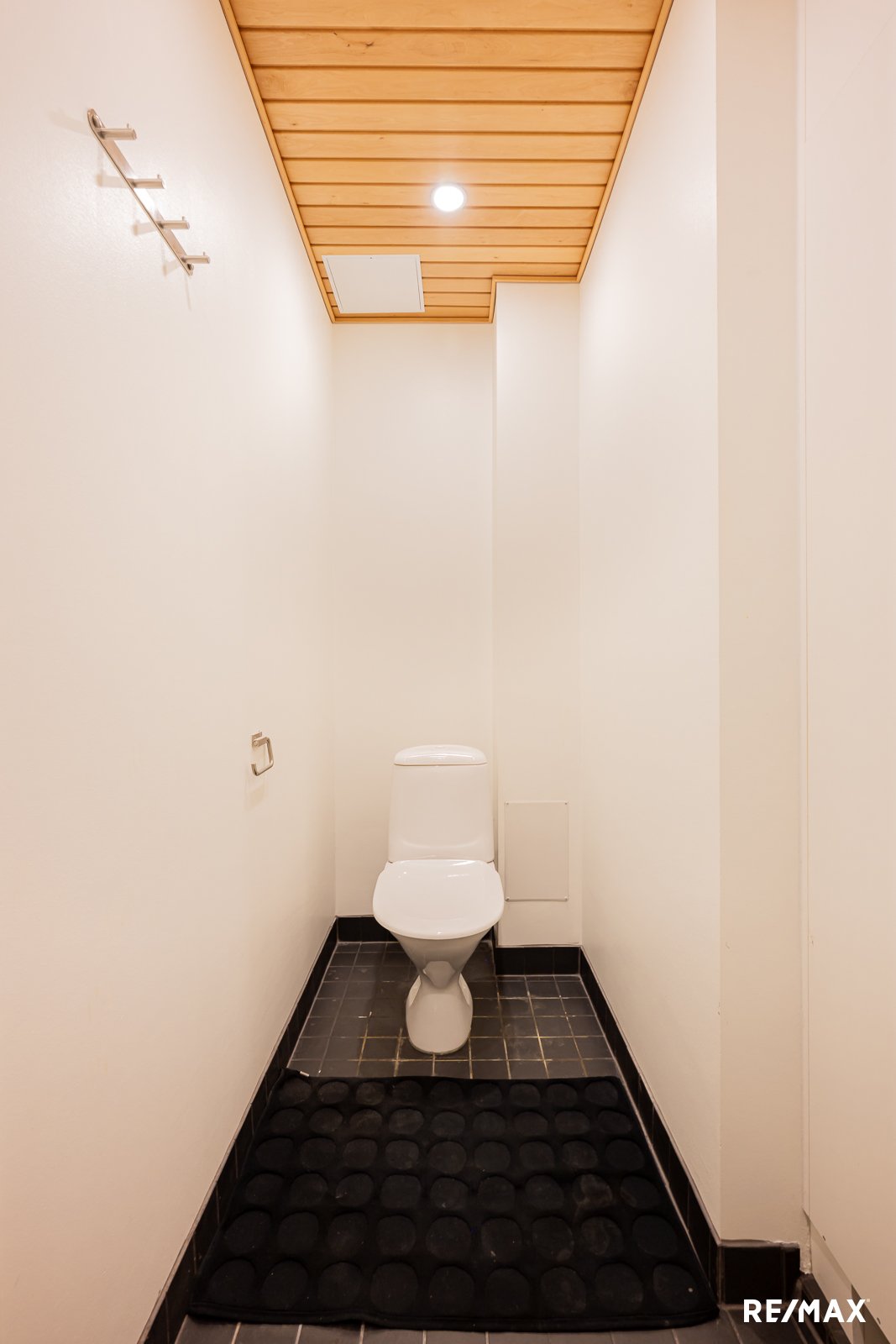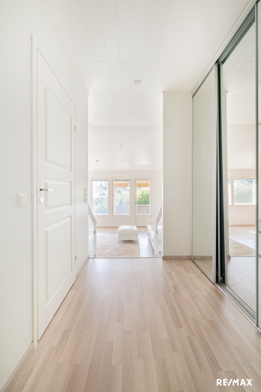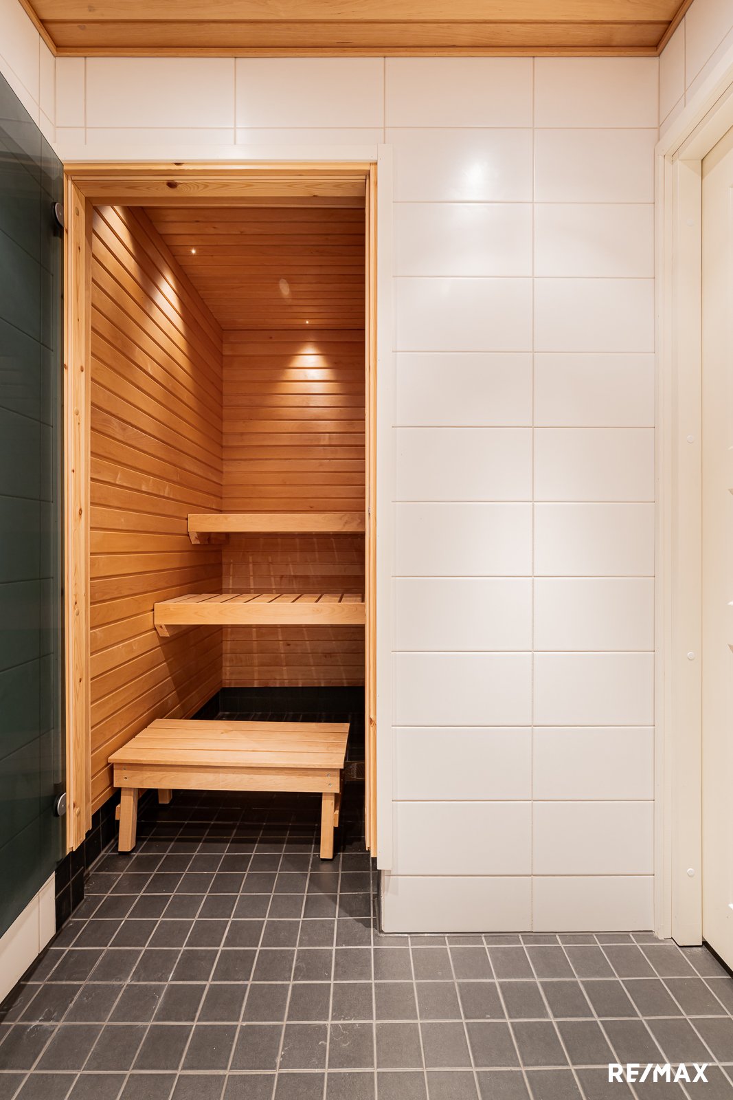 Tämä koti omaa erinomaisen pohjaratkaisun ja tarjoilee mukavaa asumista uudelle omistajalleen. Sisään tullessasi saavut tilavaan ja valoisaan eteiseen josta aukeavat ensin makuuhuone, erillinen wc, kodinhoitohuone jossa toinen wc-istuin sekä sen takana kph- ja saunatilat. Muutama porras erottaa eteisen ja erittäin tilavan olohuoneen, jonka huonekorkeus tekee tilasta ylvään. Olohuone on kauniisti yhtenäistä tilaa avautuvan keittiön kanssa luoden tilasta upean harmonisen kokonaisuuden. Olohuoneesta kulku omalle suojaisalle katetulle terassille.