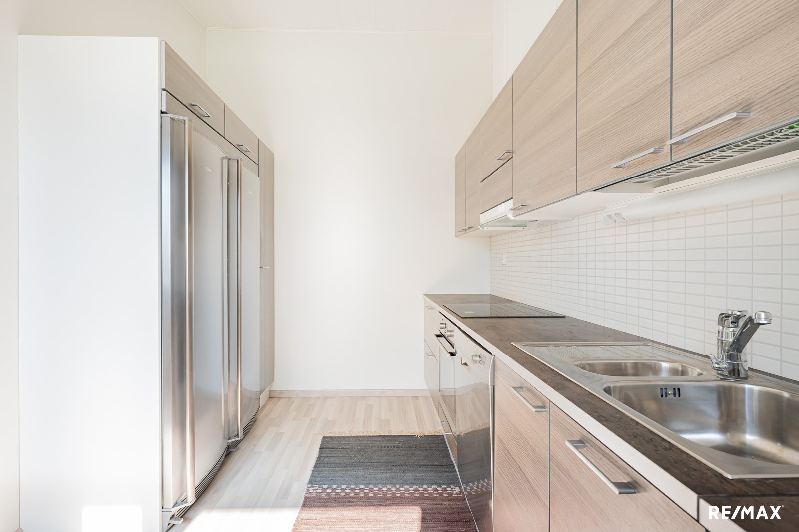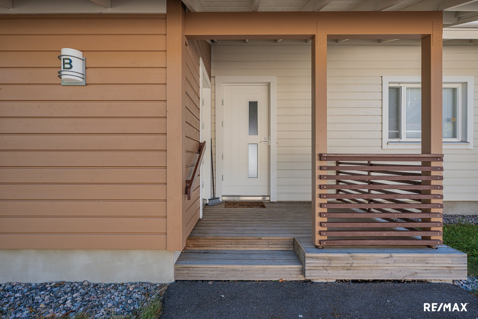 Asunnon käytössä on lisäksi oma lämmin ulkovarasto sisäänkäynnin vieressä.