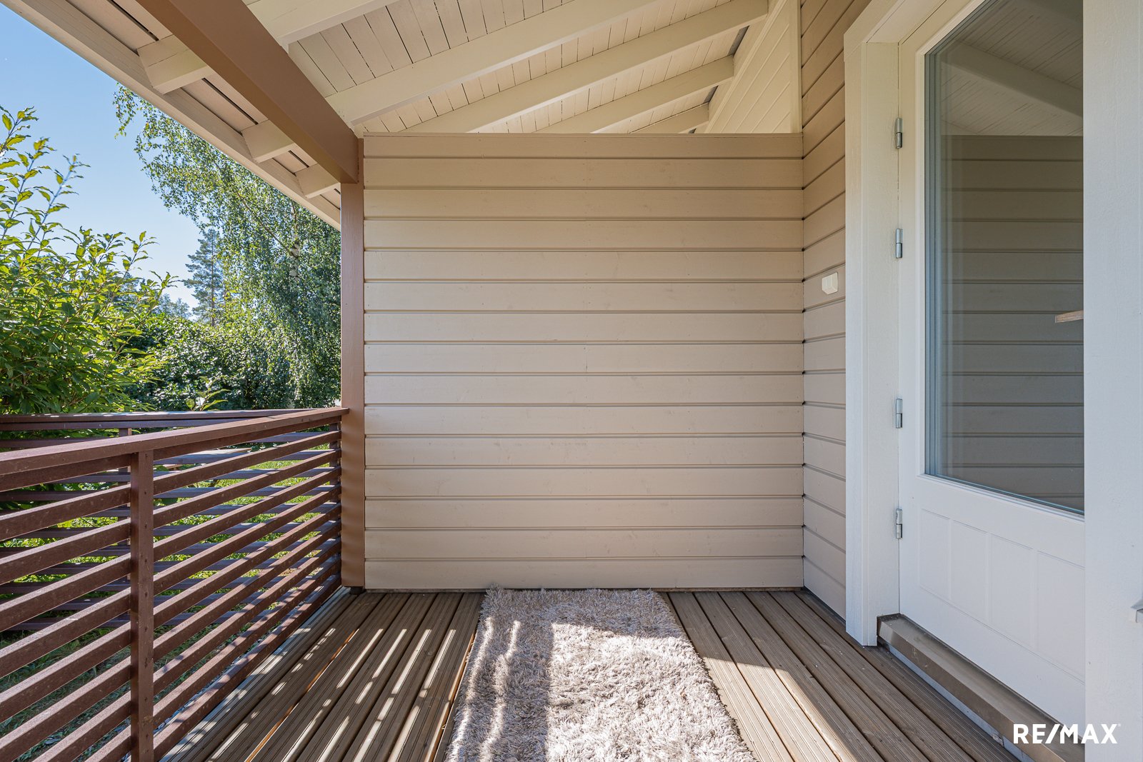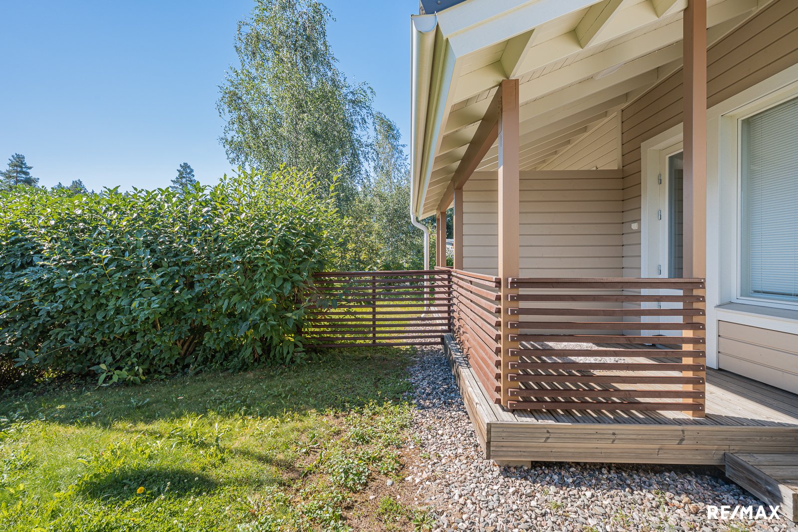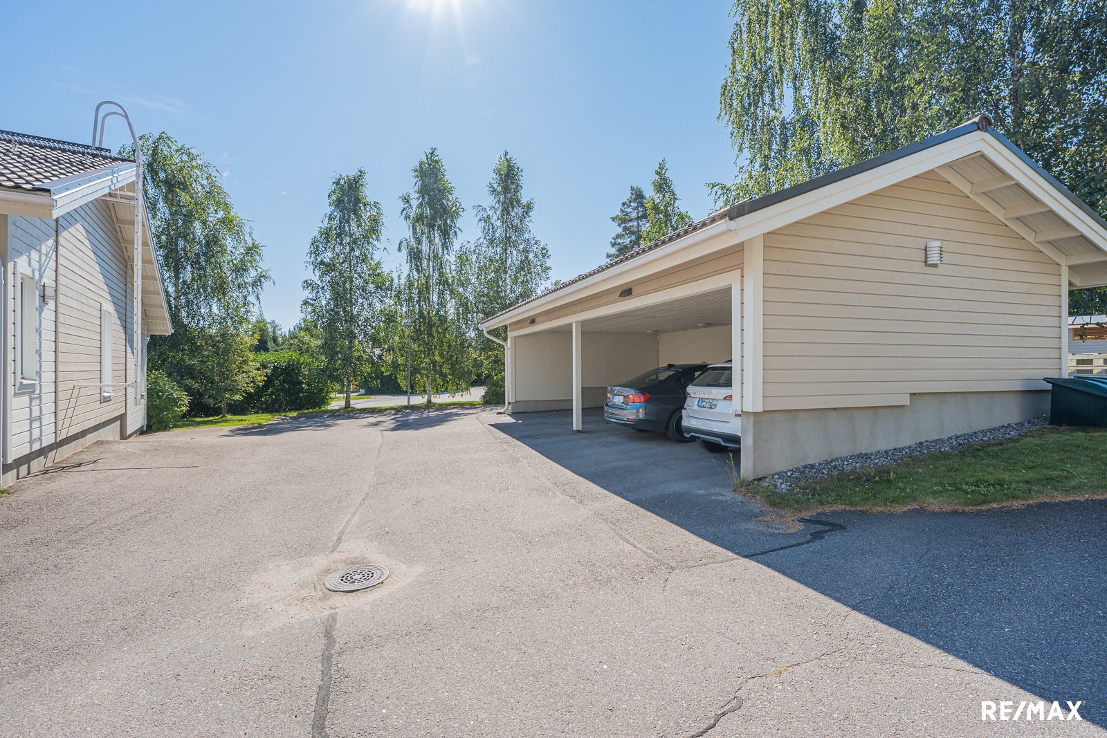 Kaustinniityn uimarannallekin kävelet hetkessä. Takapihalta pääset hetkessä Viuhan luonnonsuojelualueen metsäpoluille. Tälle asunnolle kuuluu autokatos- ja pihapaikka, eikä näistä makseta erikseen. Yhtiöön on asennettu valokuitu, joten tietoliikenneyhteydet ovat riittävät etätyöskentelyyn.