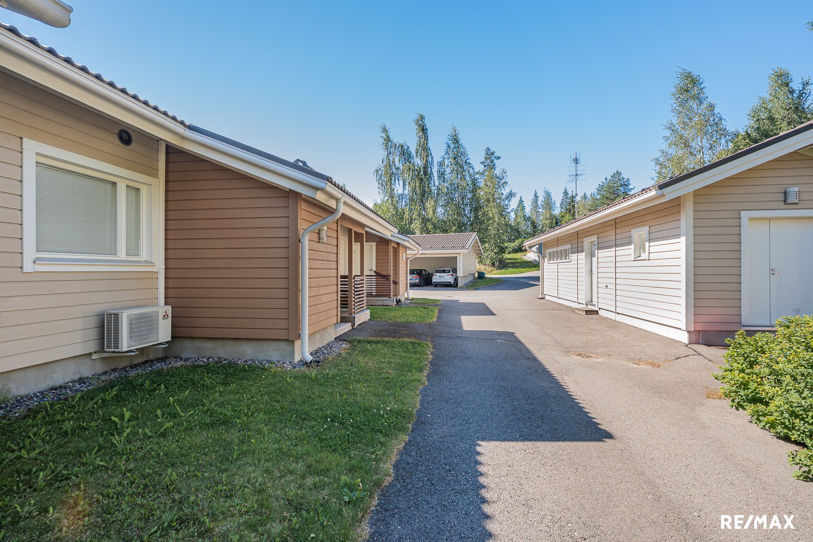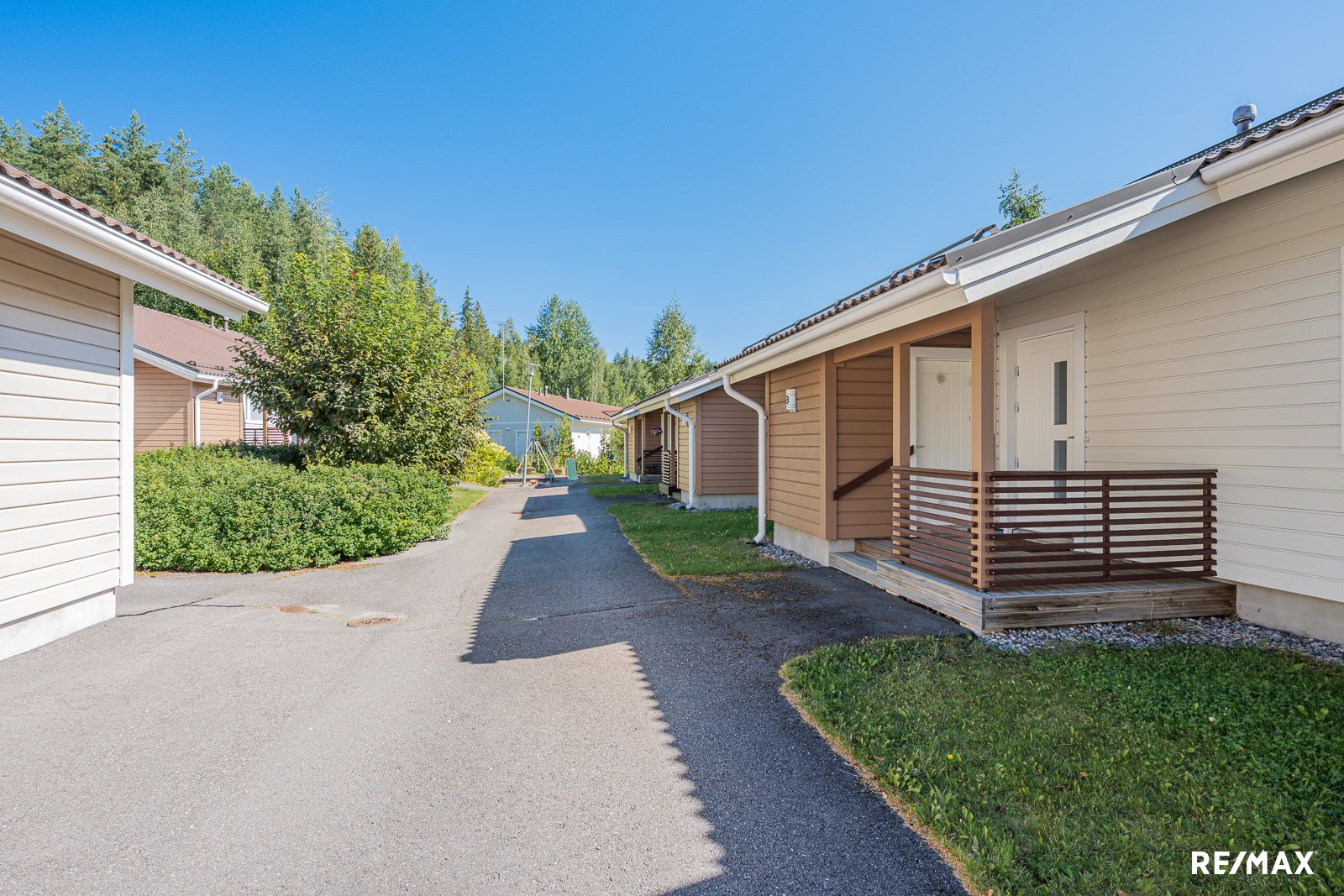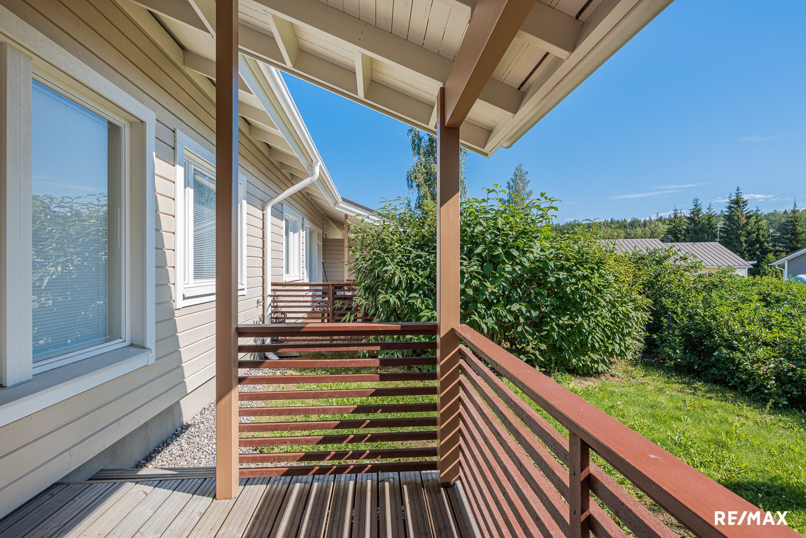 Kaustinniityn uimarannallekin kävelet hetkessä. Takapihalta pääset hetkessä Viuhan luonnonsuojelualueen metsäpoluille. Tälle asunnolle kuuluu autokatos- ja pihapaikka, eikä näistä makseta erikseen. Yhtiöön on asennettu valokuitu, joten tietoliikenneyhteydet ovat riittävät etätyöskentelyyn.