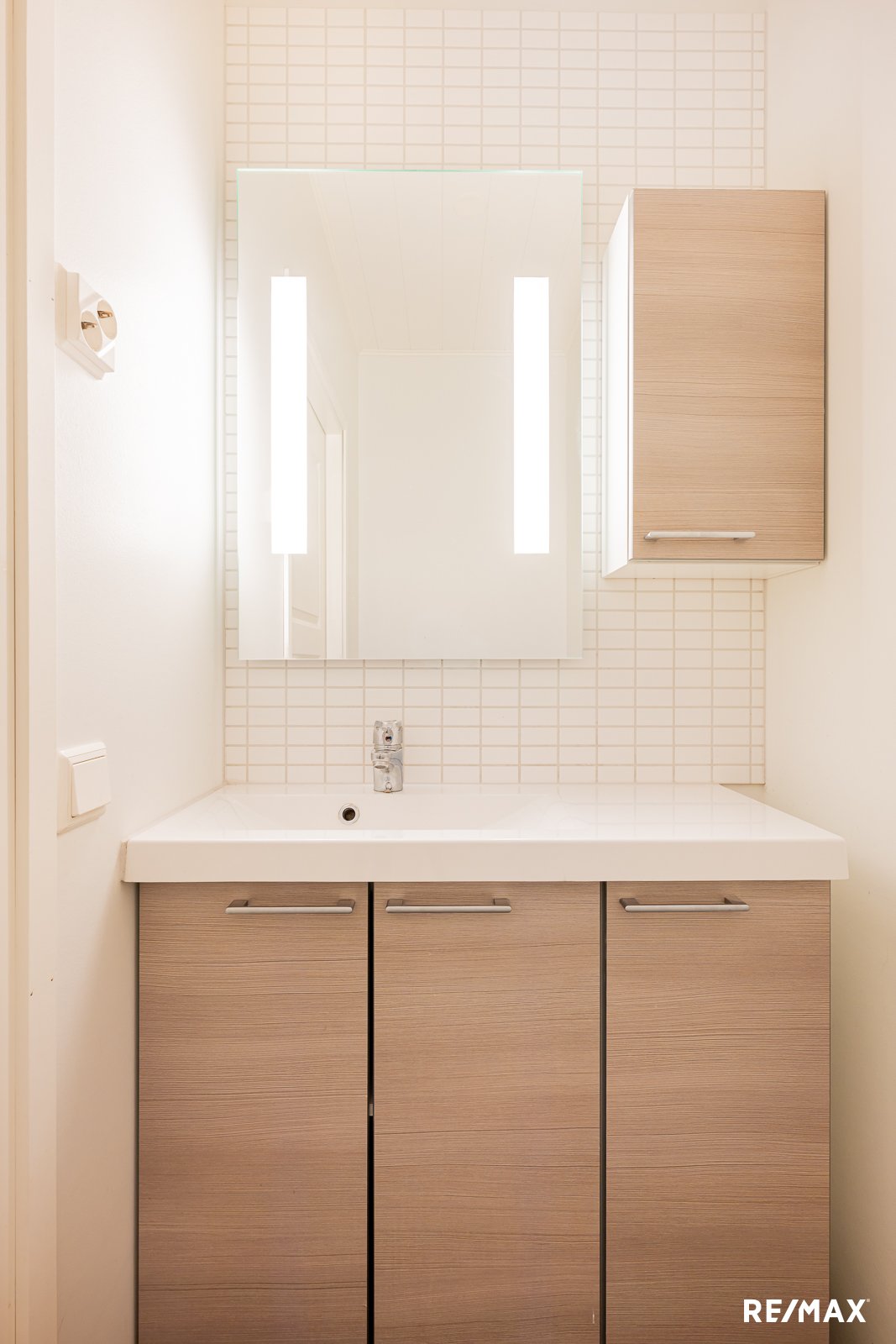 Mukavuutta asumiseen lisäävät ilmalämpöpumppu ja vesikiertoinen lattialämmitys, joka kattaa koko asunnon.