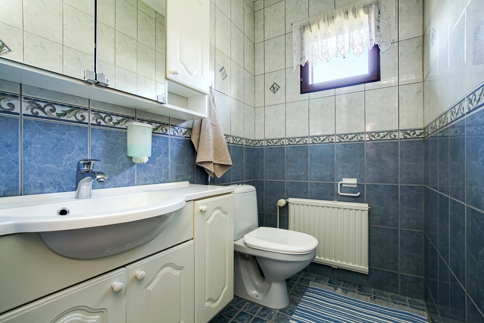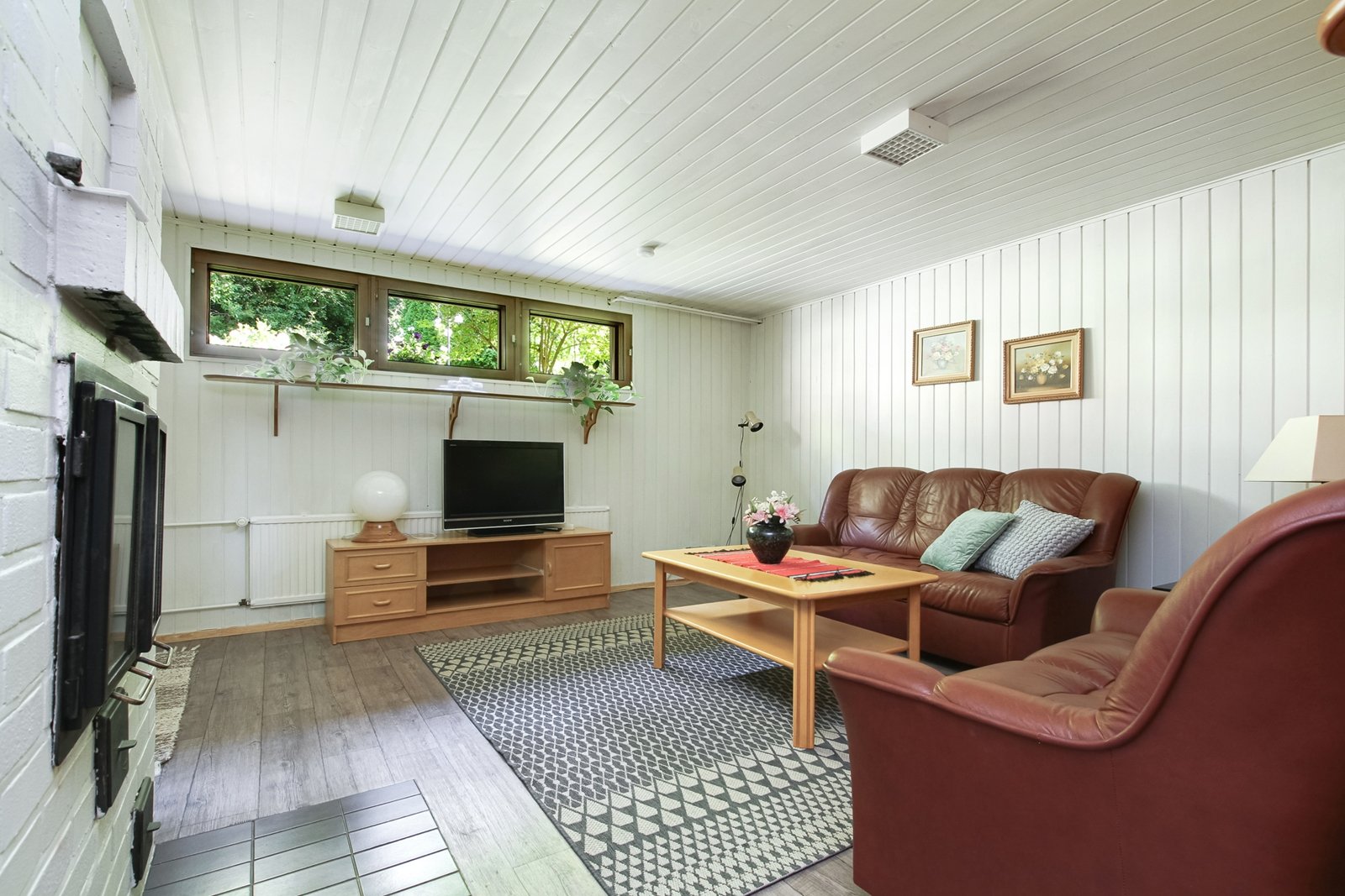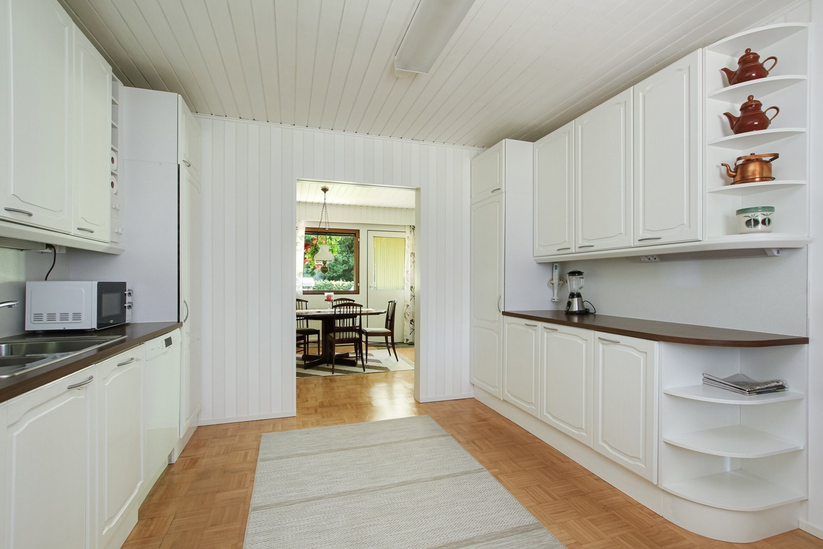 Katutason kerroksesta löytyy olohuoneen, keittiö ja ruokailutilan lisäksi kolme makuuhuonetta.