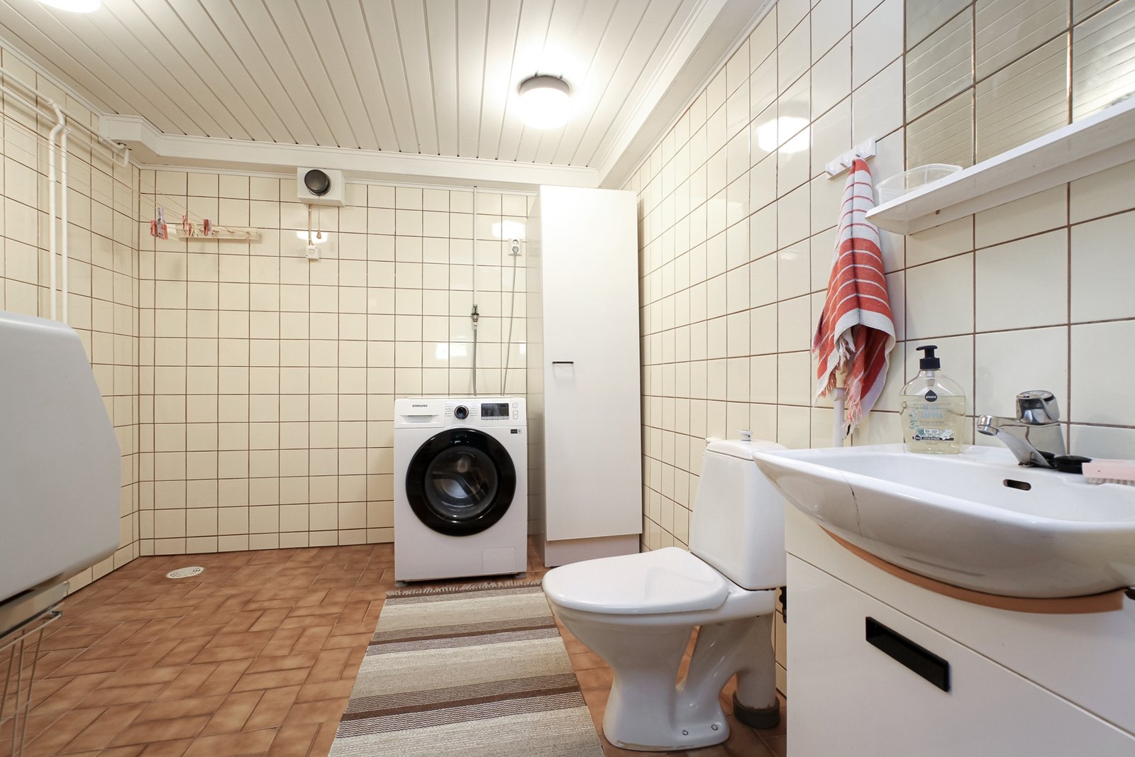 Kellarikerroksessa paljon hyödyllistä tilaa. Sauna ja kylpyhuone, takkahuone, leivintupa, askarteluhuone/verstas sekä paljon varastotilaa.