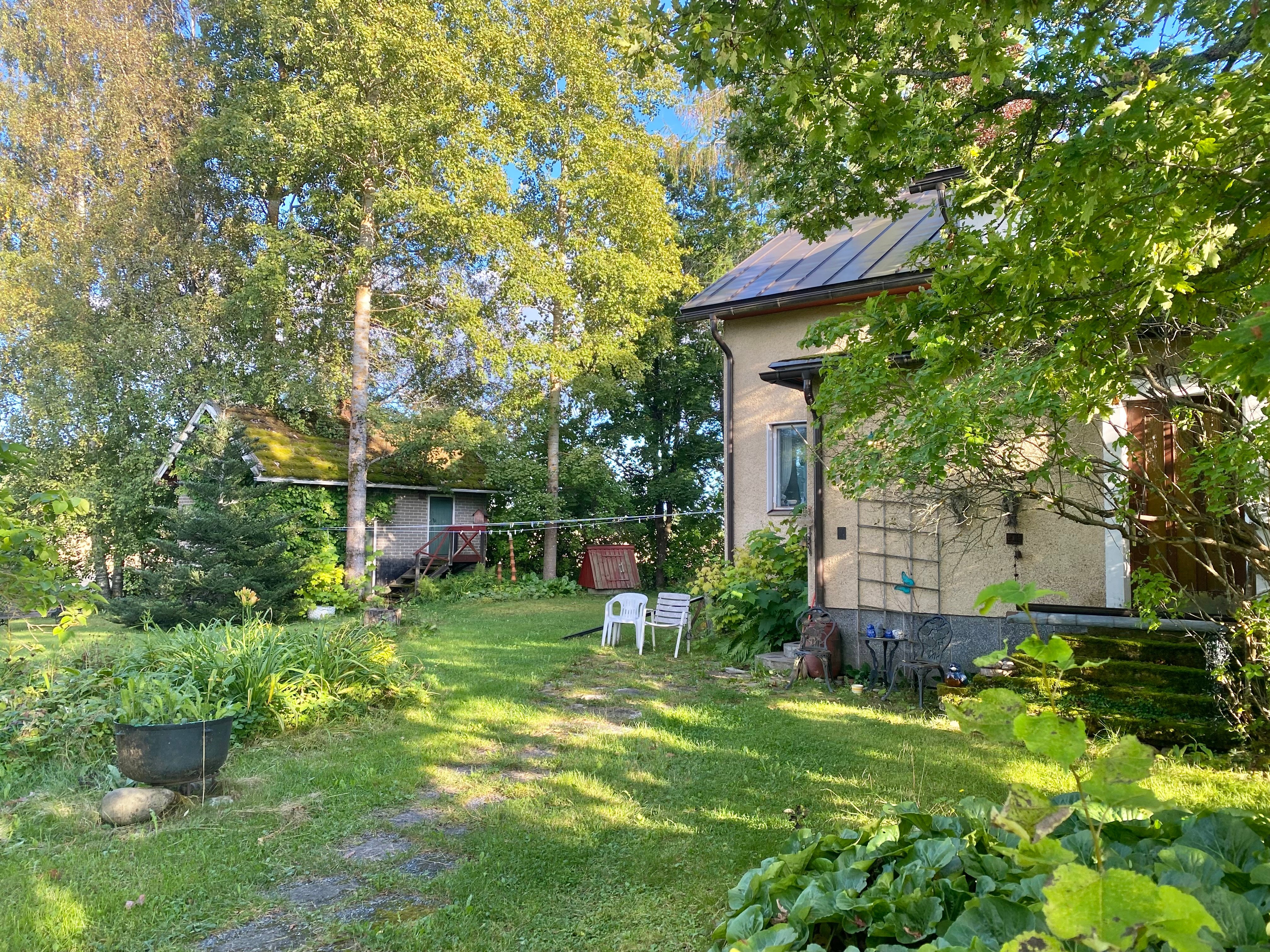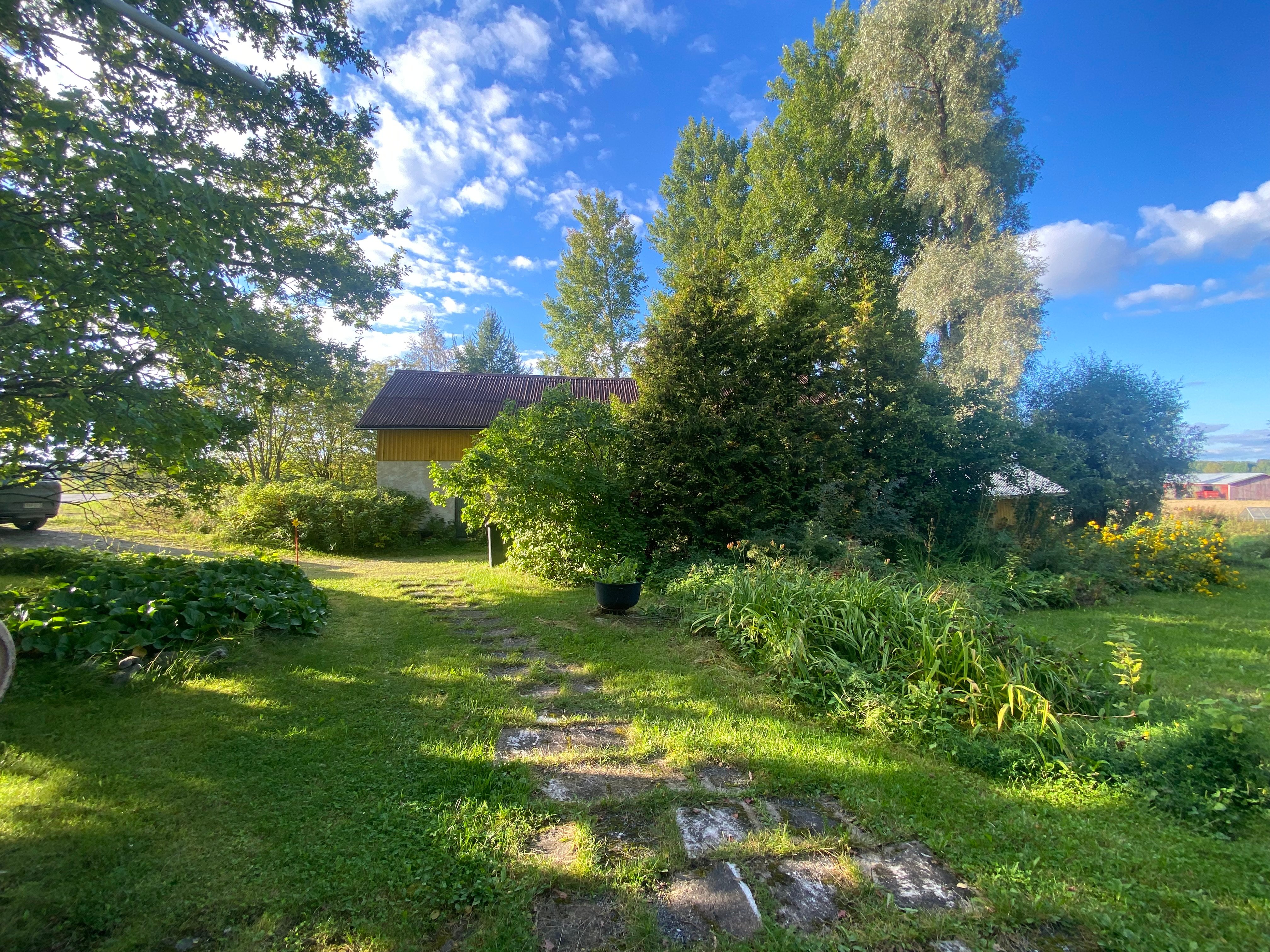 Puutarhamainen tontti kauniissa peltomaisemassa. Kiinteistöllä sijaitsee asuinrakennuksen lisäksi pieni navettarakennus sekä aitta.
