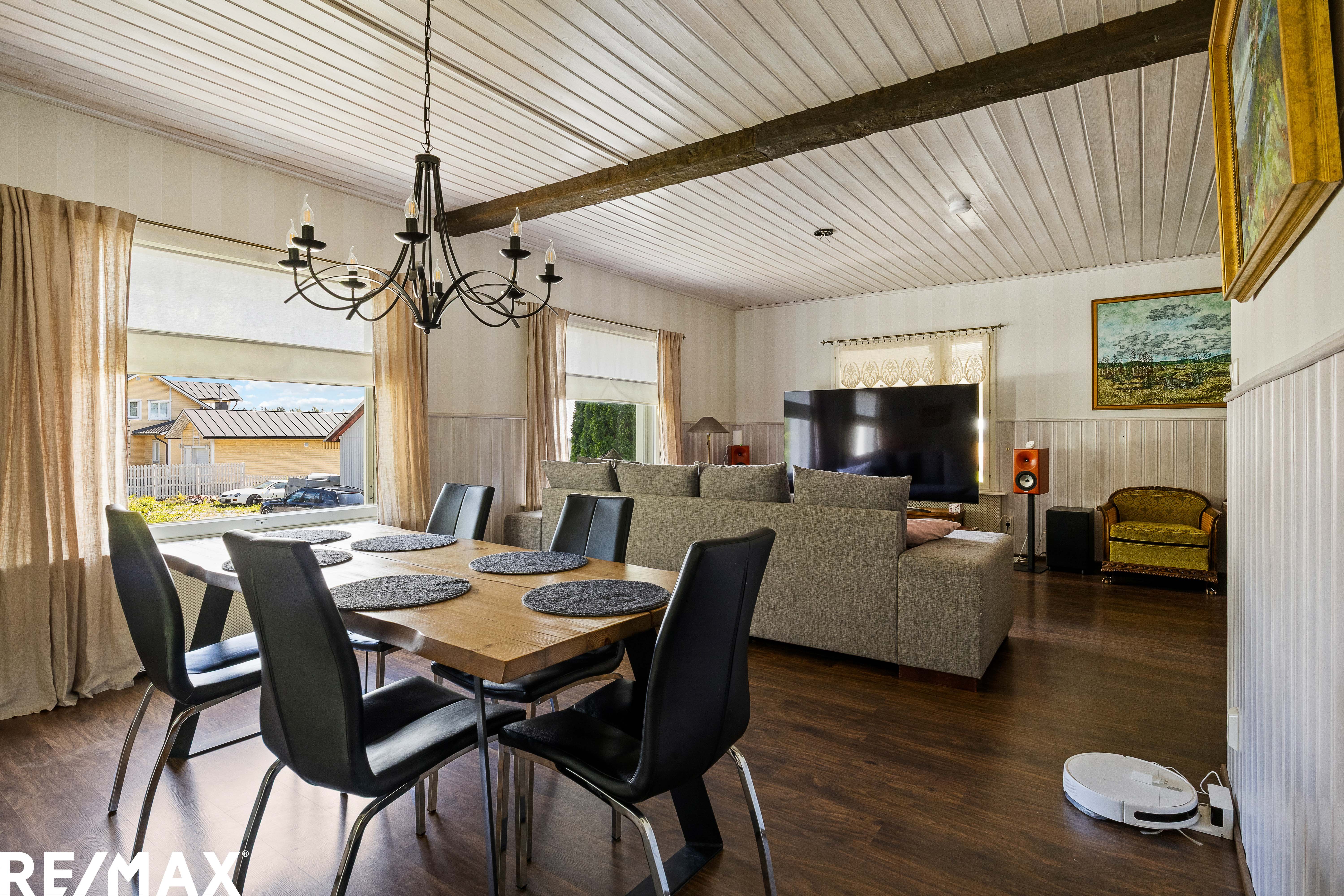 Talo on hyvässä kunnossa ja tarjoaa tilavat 170 neliötä asuintilaa, johon kuuluu muun muassa kolme makuuhuonetta, sauna ja massiivisen kokoinen tupa.