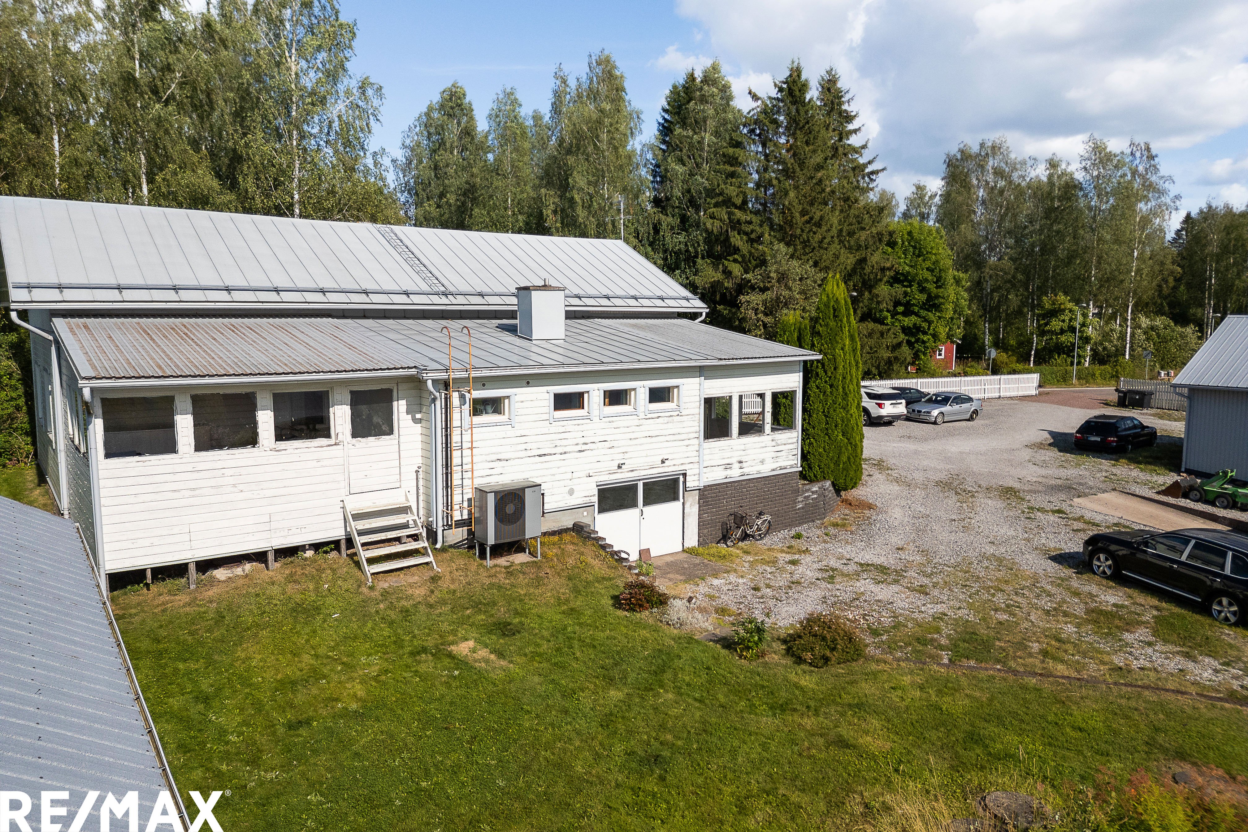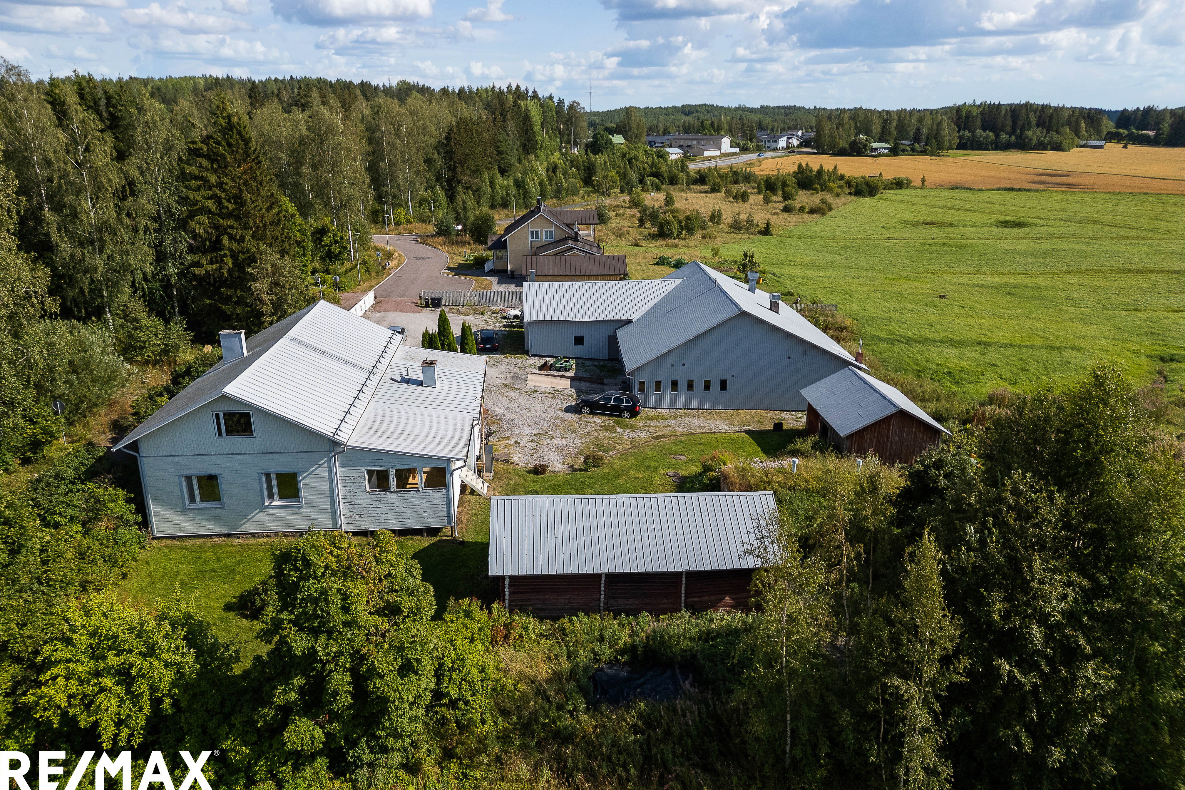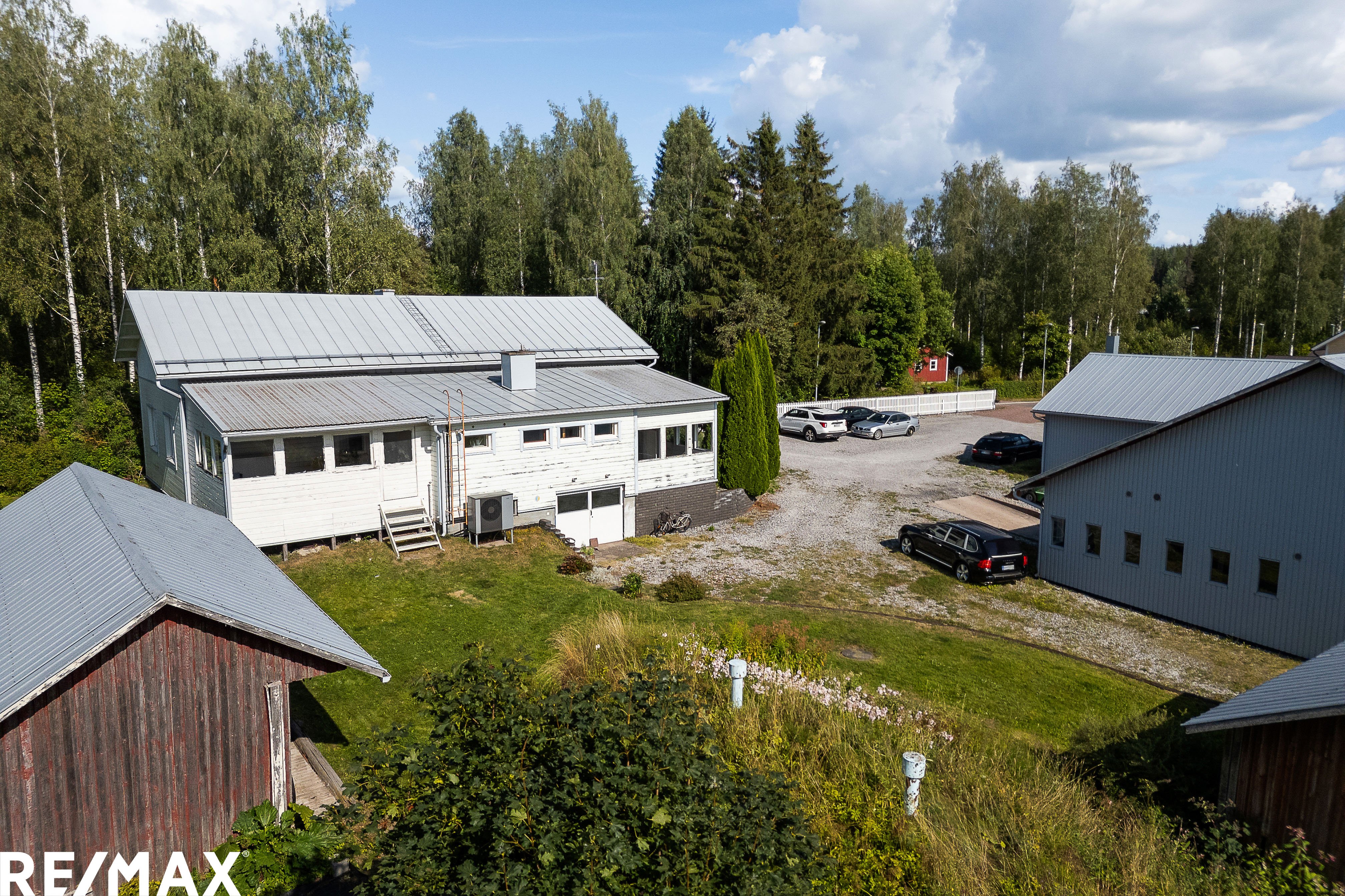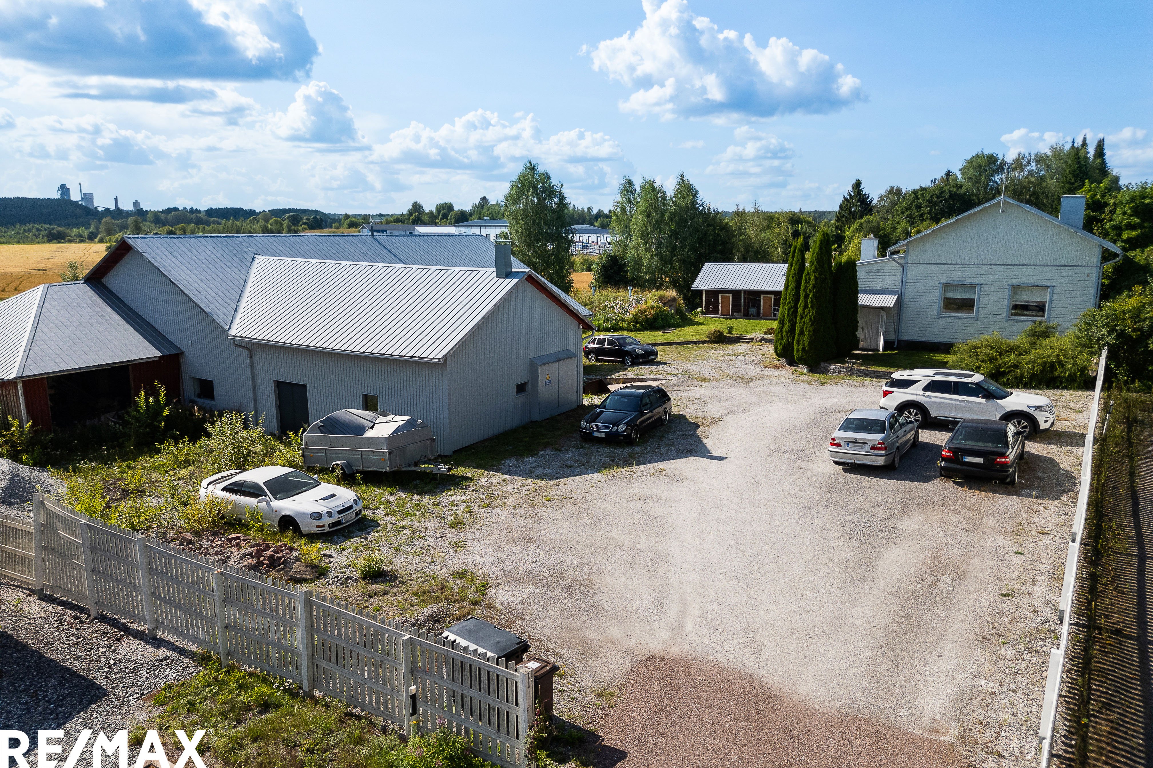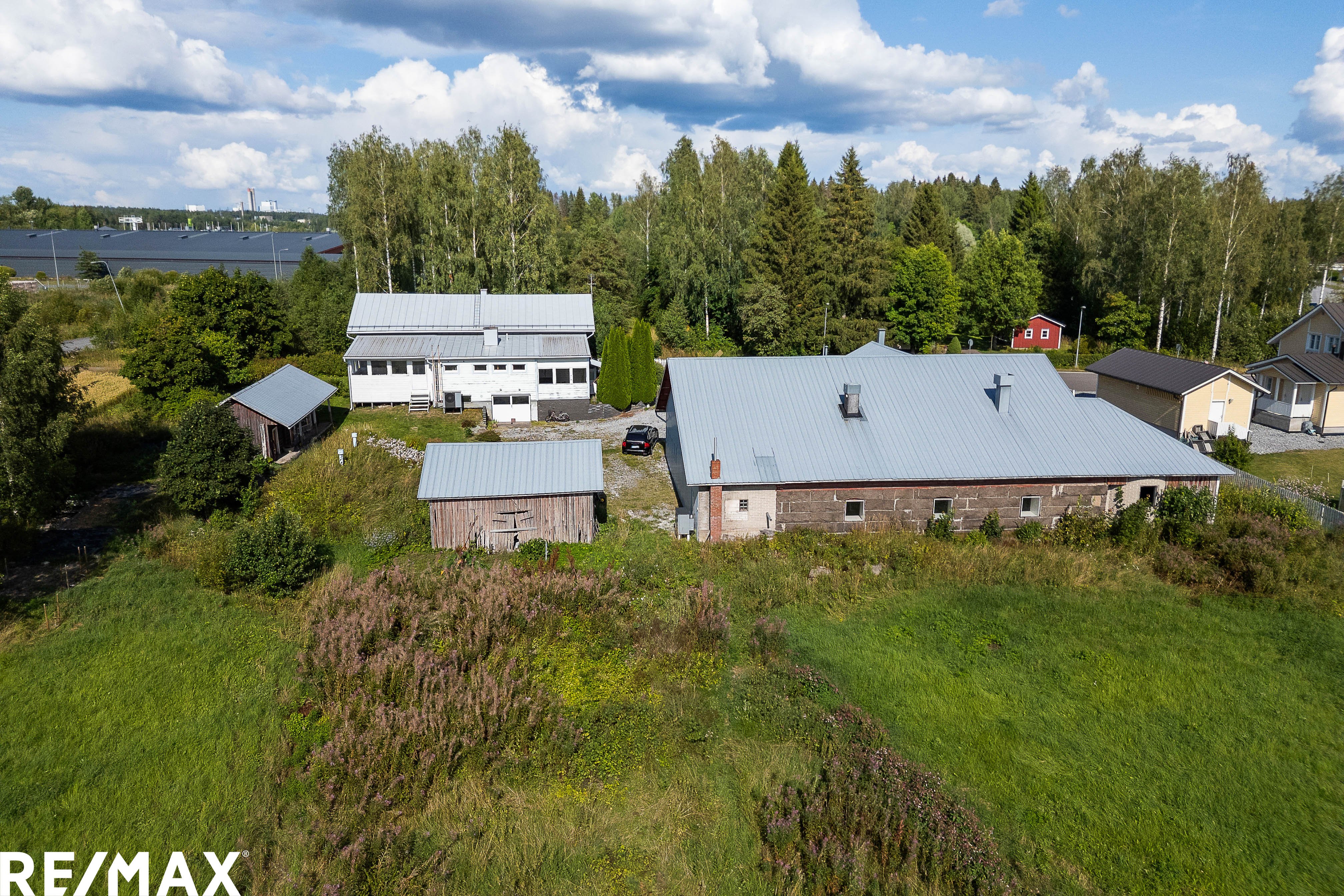Talon tontti on yli 3000 neliömetrin kokoinen, ja se sisältää muun muassa katetun terassin ja lämpimän ulkovaraston. Lisäksi pihapiirissä on vanha navetta, joka on muutettu autokorjaamoksi tai tuotantotilaksi, mikä tarjoaa huikean määrän mahdollisuuksia.