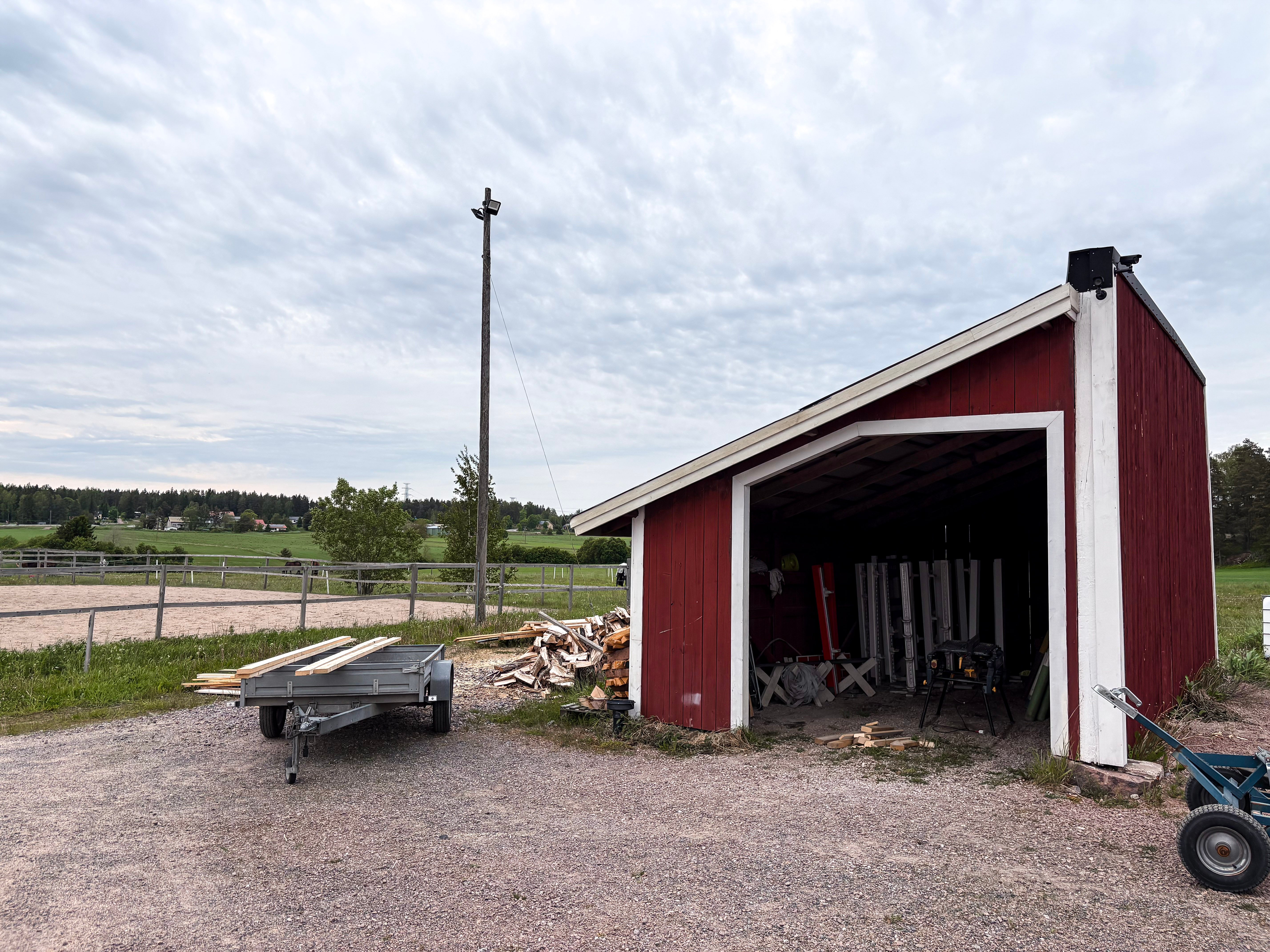 Tällä hetkellä lähes kahden ja puolen hehtaari tontilla toimii hevostila ja tähän kokonaisuuteen kuuluu yli 200m2 päärakennus, hevostalli 12 hevoselle, pihatto, yli 1000m2 maneesi, 8 isoa ulkotarhaa, 4 pienempää ulkotarhaa ja ratsastus kenttä. Lisäksi muita rakennuksia on lantala, rengin tupa, aitta, piha mökki, piha sauna, autotalli ja kenttäesteiden säilytys rakennus.