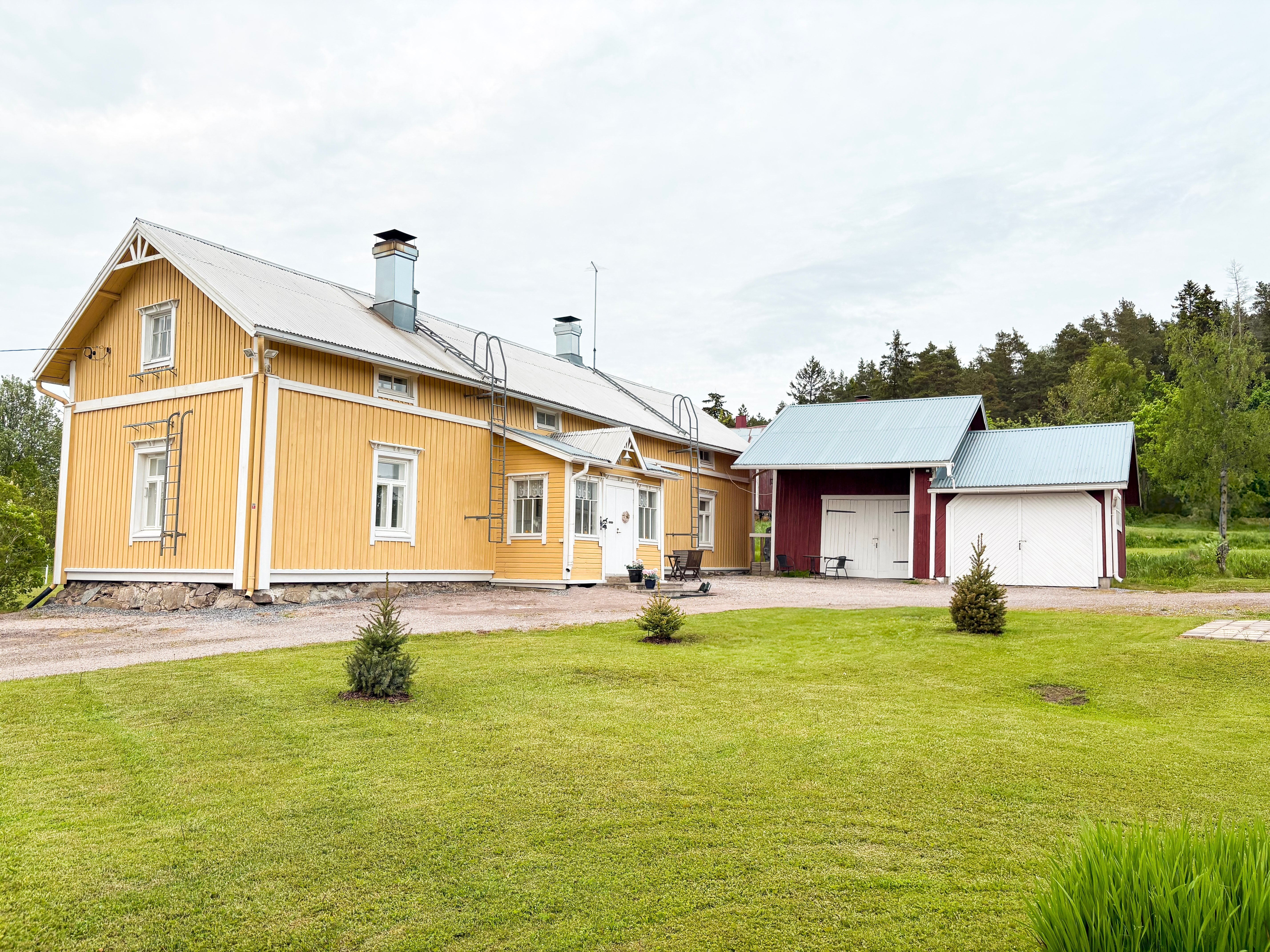 Päärakennus alun perin rakennettu 1850-luvulla ja siellä on tupakeittiö, sali, neljä makuuhuonetta tarvittaessa, kaksi wc:tä, pesuhuone ja reilusti säilytystilaa.