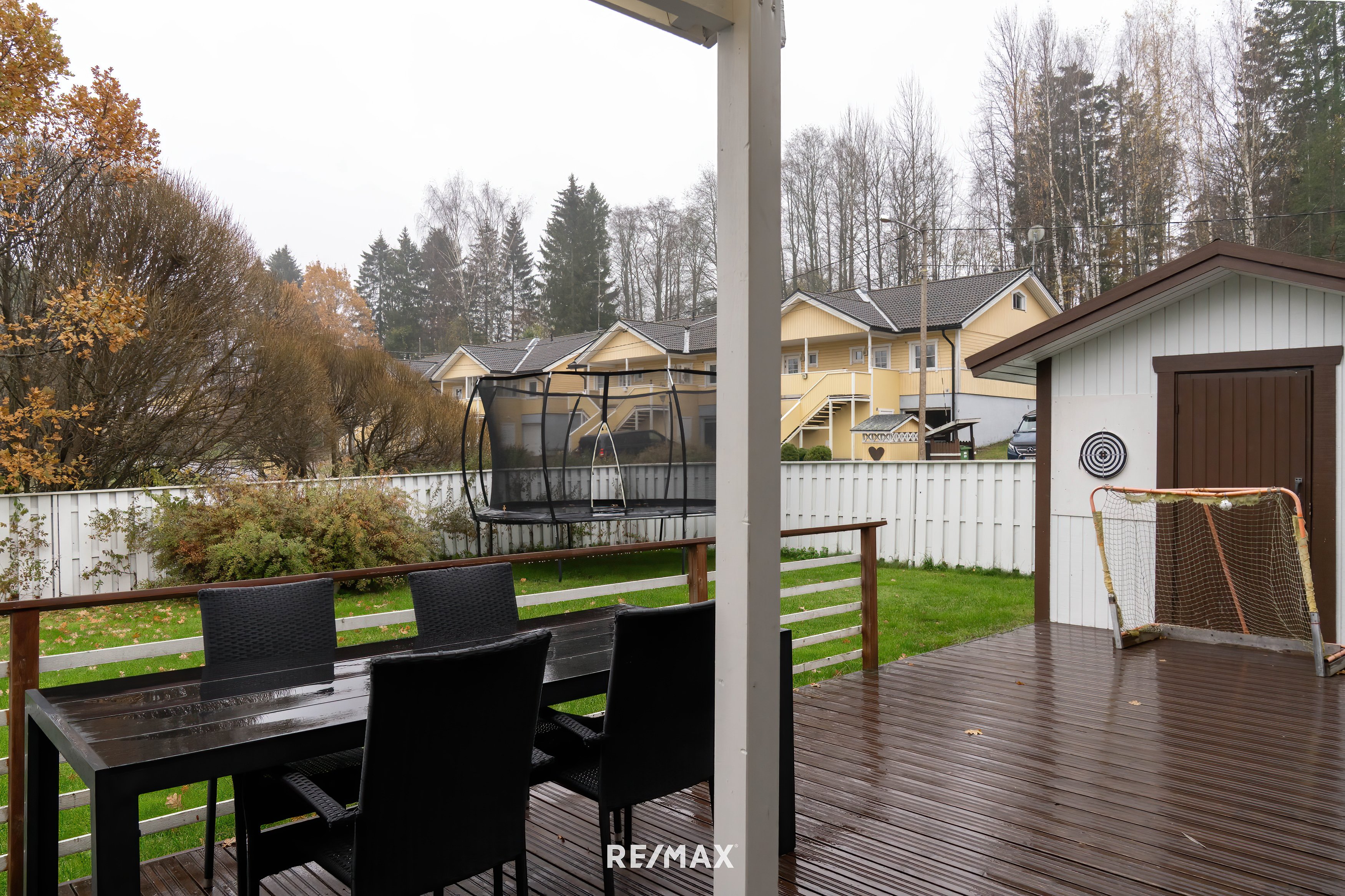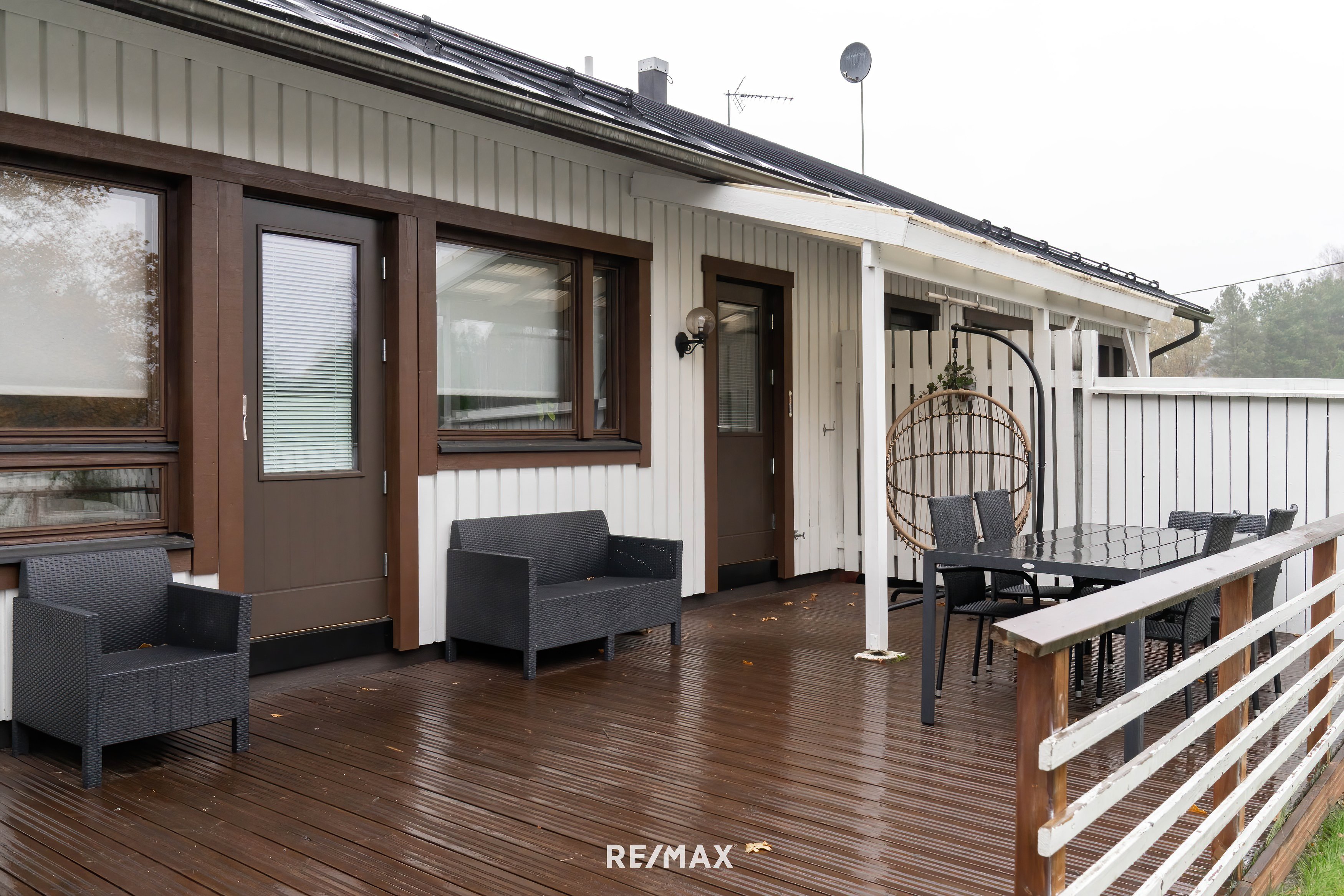 Aurinkoinen terassi jatkaa olohuoneen oleskelutilaa ulos kaakkoiseen auringonpaisteeseen, ja aidattu piha tekee pihasta suojaisan. Talo sijaitsee rauhallisella, mutta kuitenkin keskeisellä sijainnilla Koskenkylän palveluiden läheisyydessä. Palvelut, koulut ja päiväkodit ovat lähellä, ja seiskatiellekin liityt vain noin 5 minuutissa, josta pääsee esim. alle tunnissa Helsinkiin.