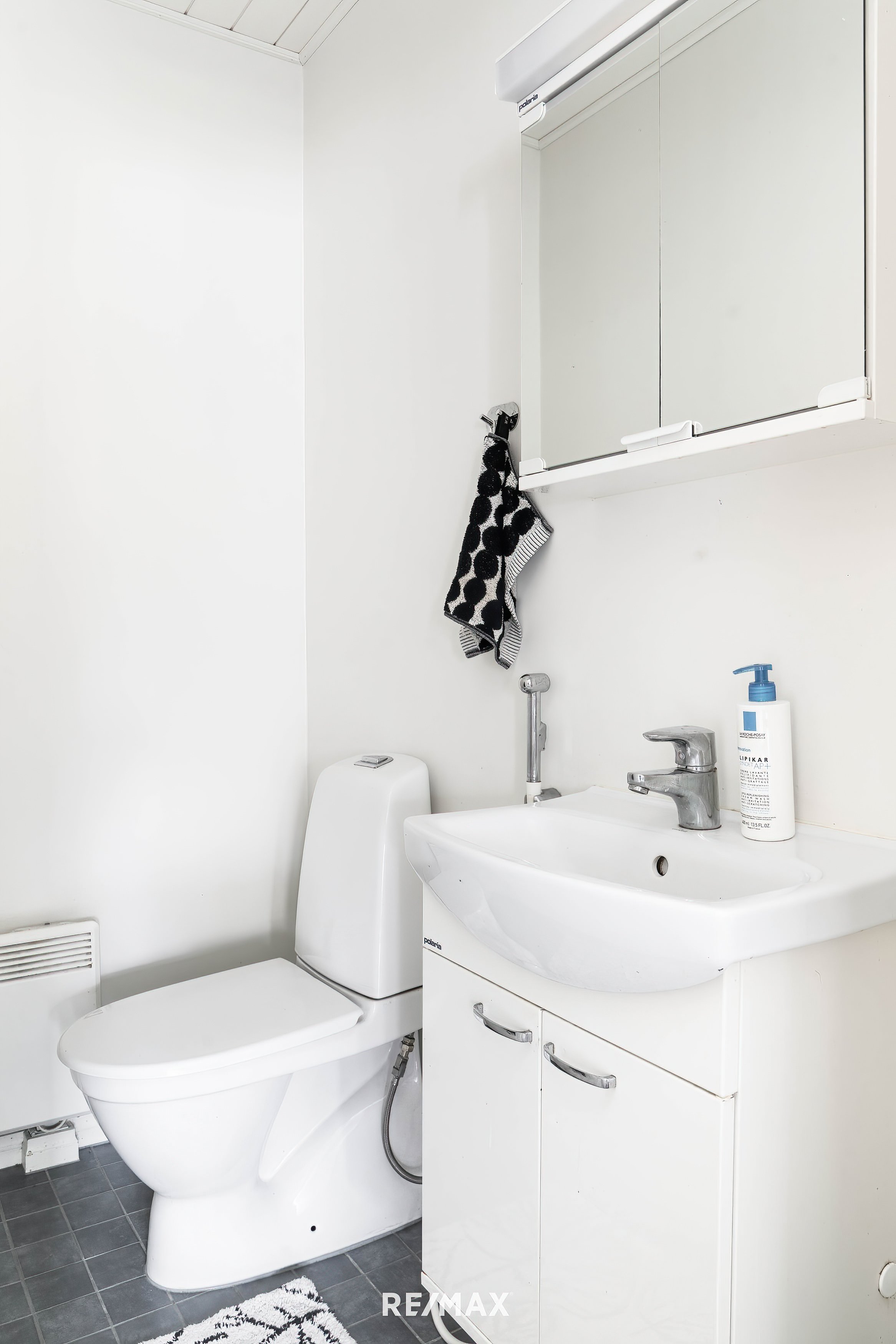 WC-istuin, pesuallas, peilikaappi, allaskaappi ja bidee-suihku