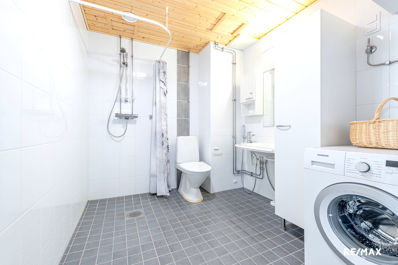 WC-istuin, lattialämmitys, pesuallas, bidee-suihku, suihku ja pesukoneliitäntä