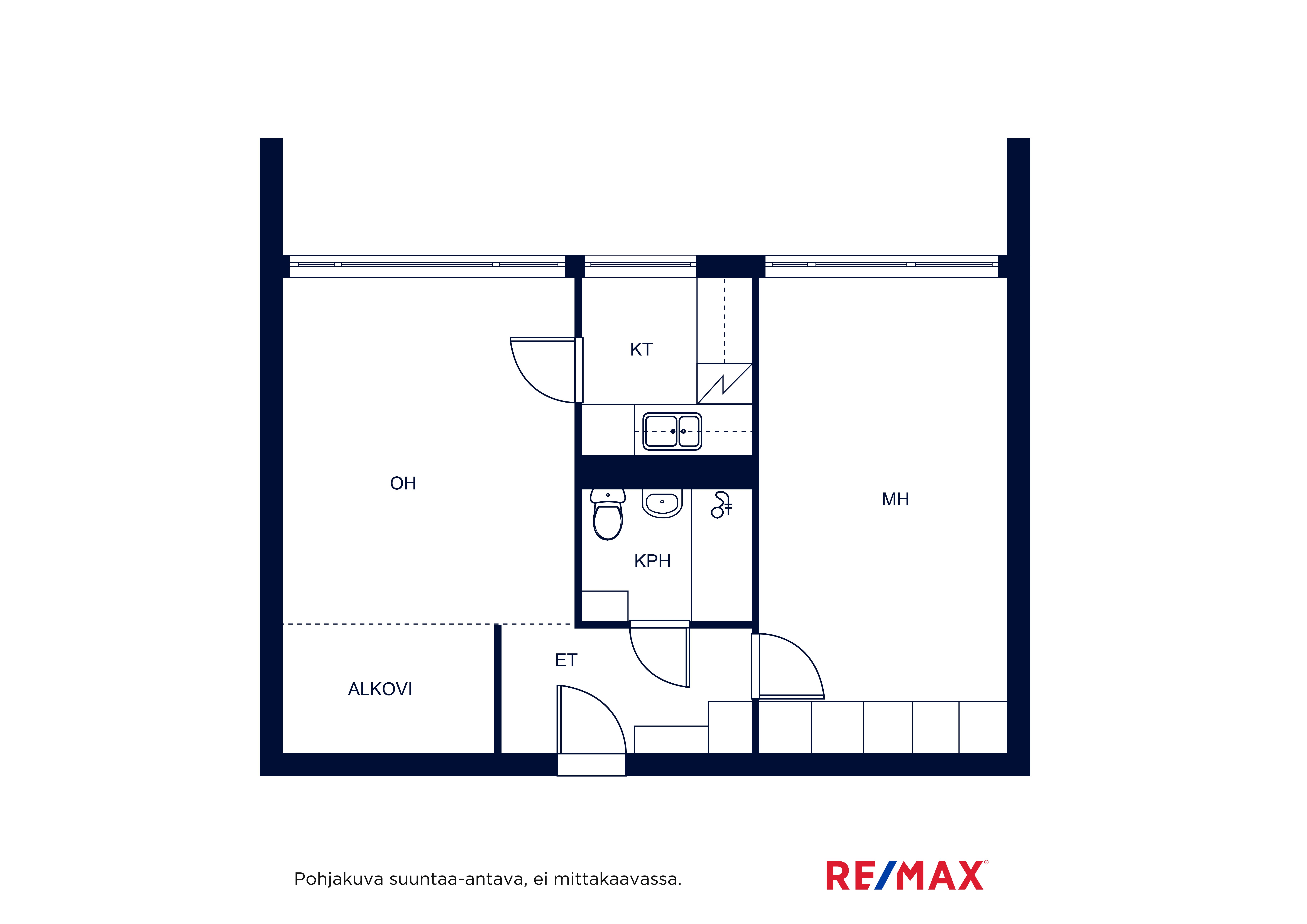 Ei tarkistusmitattu. Pinta-alat saattavat tämän ikäisissä kohteissa (yhtiö rekisteröity ennen 01.01.1992) poiketa olennaisestikin asuinrakennusten nykyisten mittaustapojen ja standardien (SFS 5139) mukaan laskettavasta asuintilojen pinta-alasta. Pinta-ala voi siis olla edellä mainittua pienempi tai suurempi.