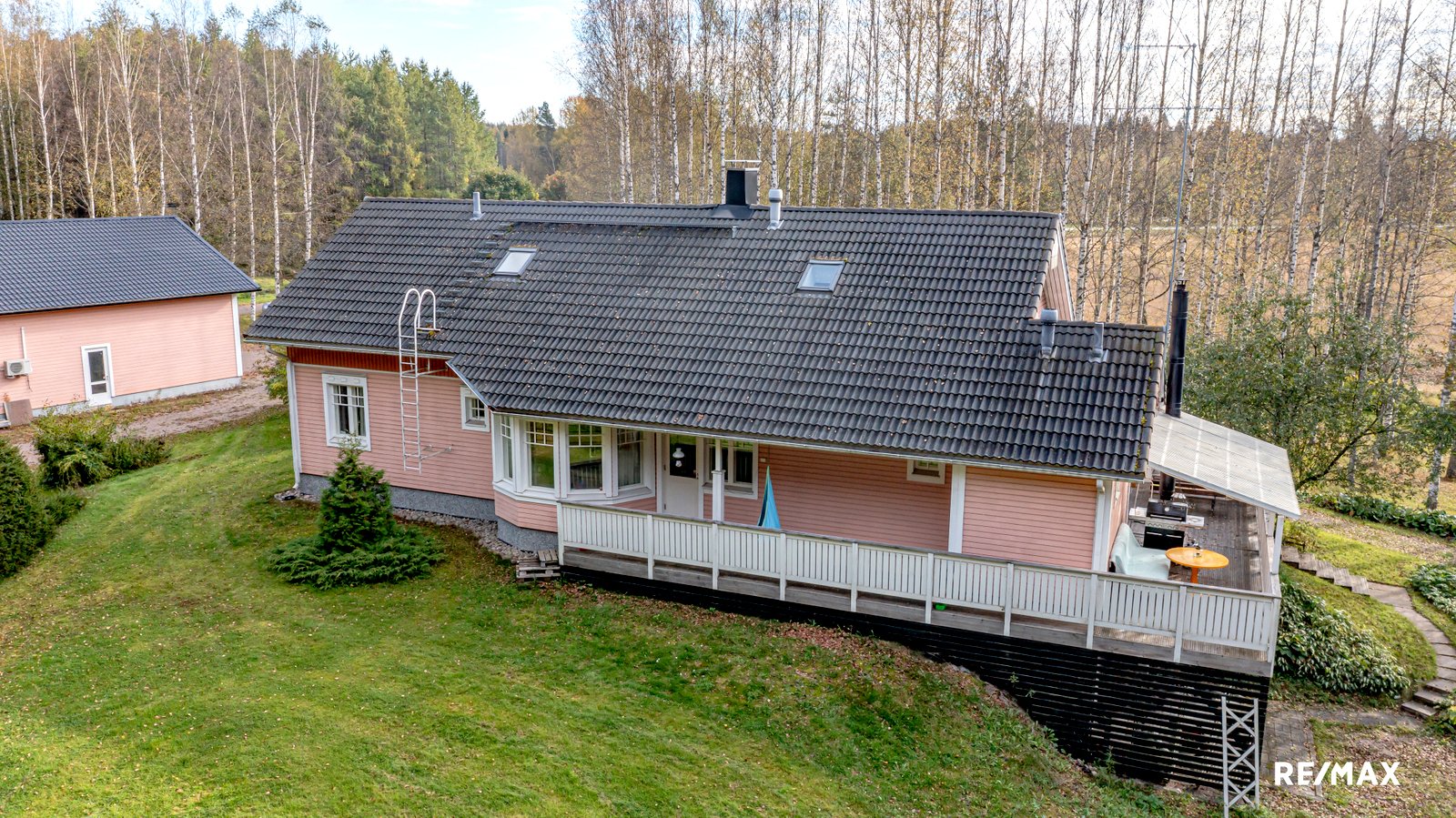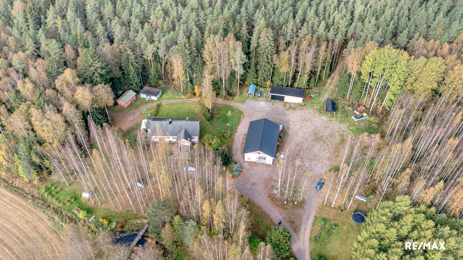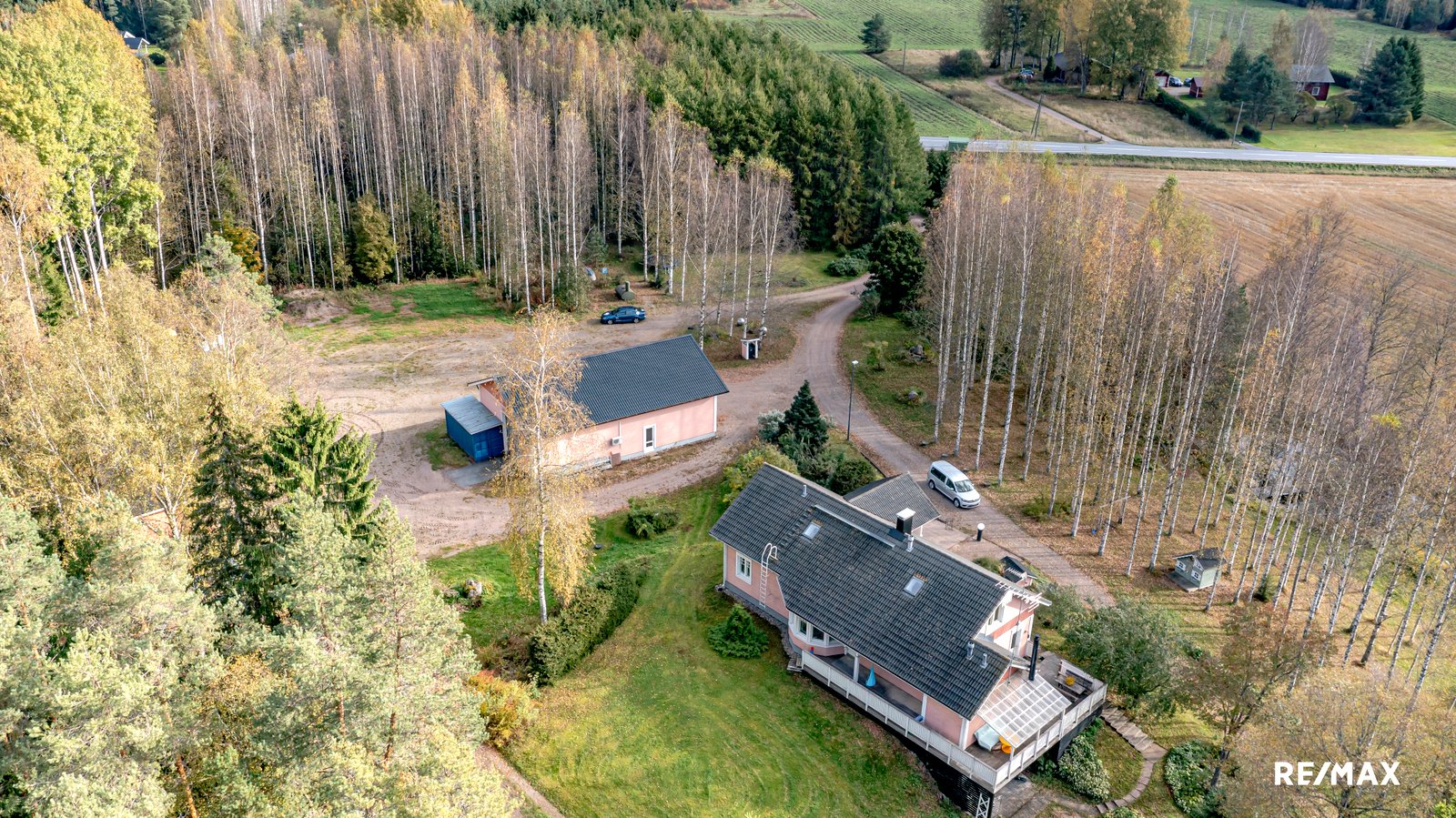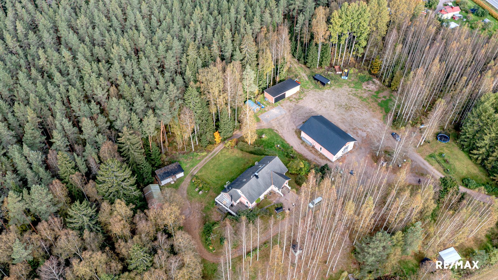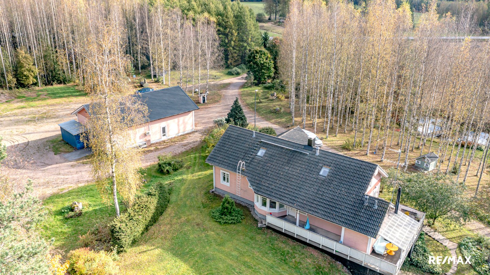 Laaja, yli 3,8 hehtaarin tontti tarjoaa runsaasti tilaa ulkoiluun ja vapaa-ajan viettoon. Terassi on täydellinen paikka nauttia kesäpäivistä ja ympäröivästä luonnosta. Lisäksi pihapiiristä löytyy kaksi liiteriä, autotalli, kota ja leikkimökki. Erillinen autotalli (kerrosala 172 m2) tarjoaa autoharrastajalle mainiot puitteet harrastamiseen mutta miksei myös ammatin harjoittamiseen. Korkea huonekorkeus mahdollistaa hallinosturin käytön, joka helpottaa korjaustöiden tekemistä. Tallissa on myös erillinen tila, jossa voit maalata vaikkapa autoja.
