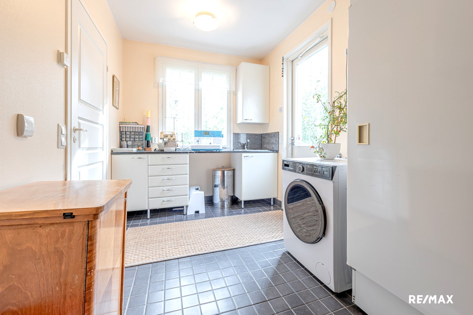 Talon kahdessa kerroksessa on käytännöllisiä tilaratkaisuja, kuten erillinen kodinhoitohuone ja kaksi erillistä wc:tä, jotka helpottavat arjen sujuvuutta. Sauna tarjoaa rentouttavat löylyt ja pihapiiristä löytyy myös ulkosauna.