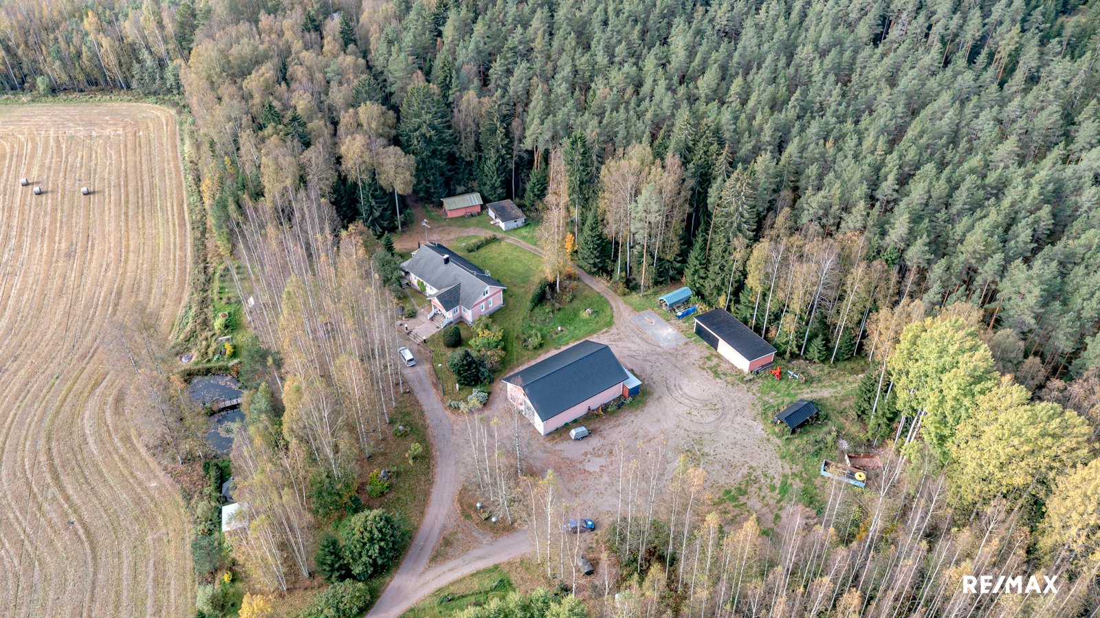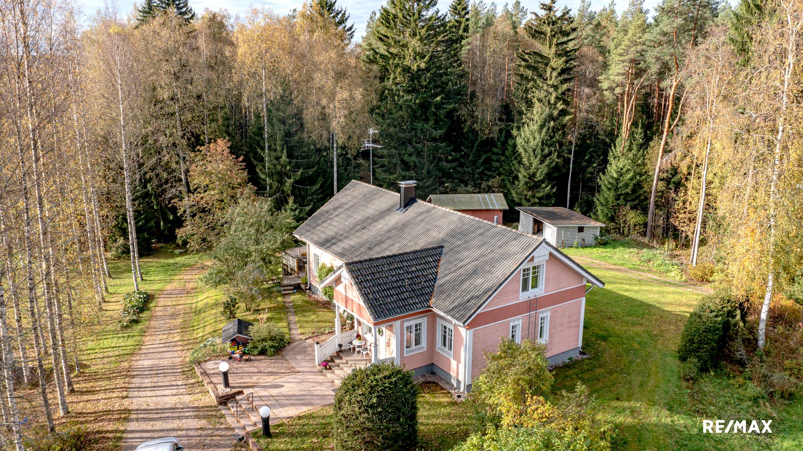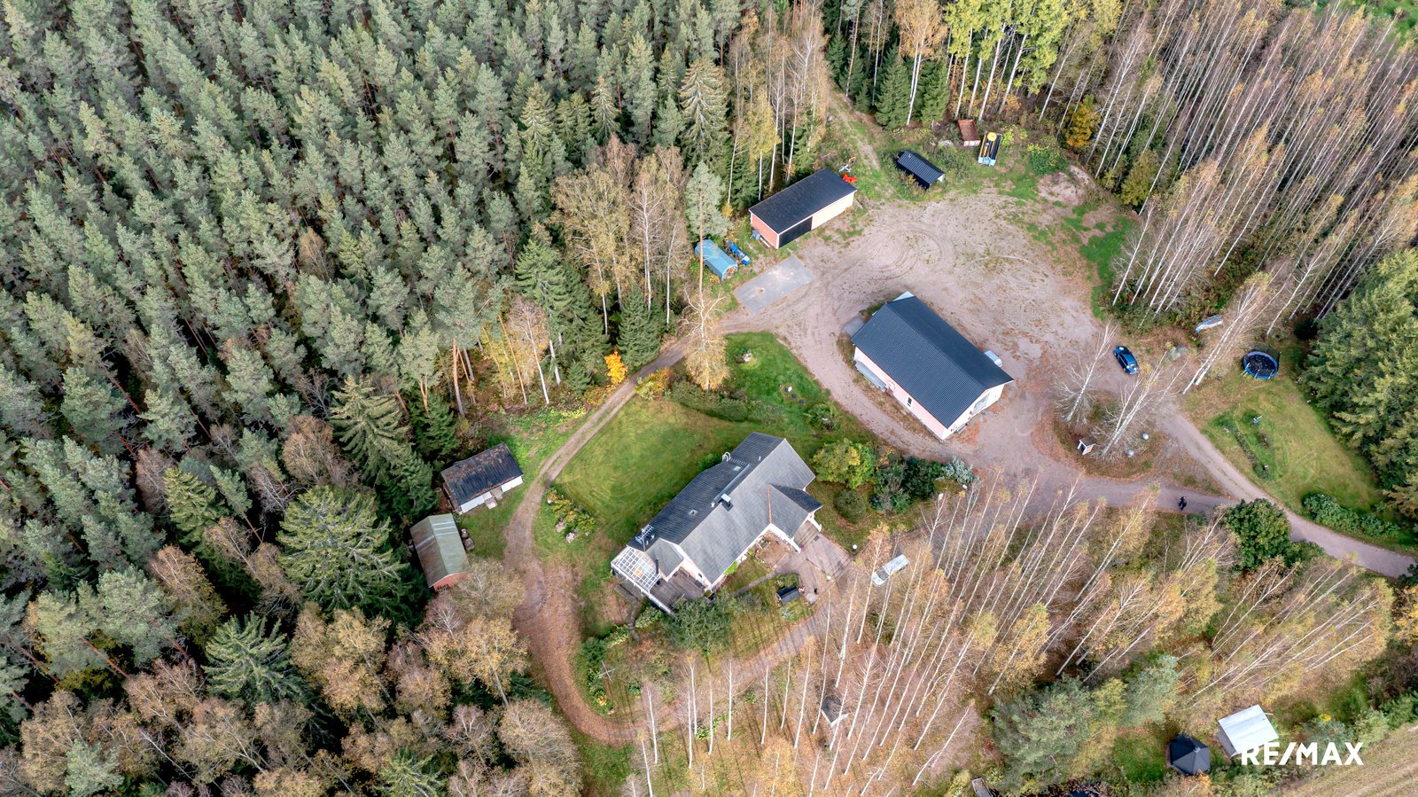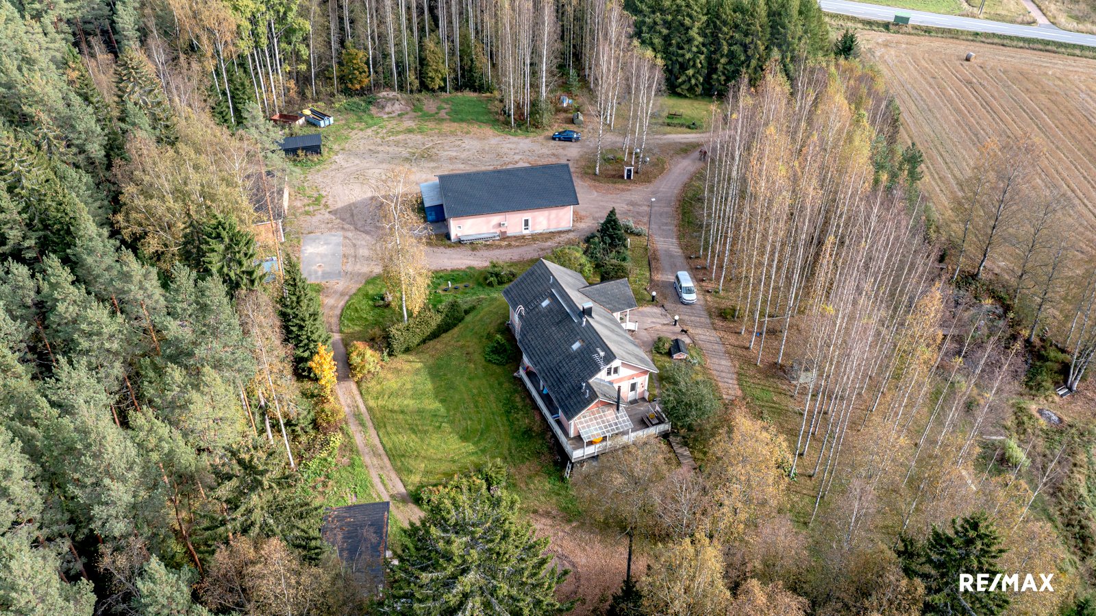 Pihapiiri on tilava, joten jos sinulla on rekka tai kaksi tai vaikka hieman enemmänkin, niin ne mahtuvat pihapiiriin niin, etteivät ne häiritse muun perheen mielenmaisemaa. Valtaosa tontista on kuitenkin metsää, joten saat olla perheesi kanssa täysin omassa rauhassa, mutta olet silti vain noin kuuden-kahdeksan minuutin ajomatkan päässä Mäntsälän alueen palveluista.