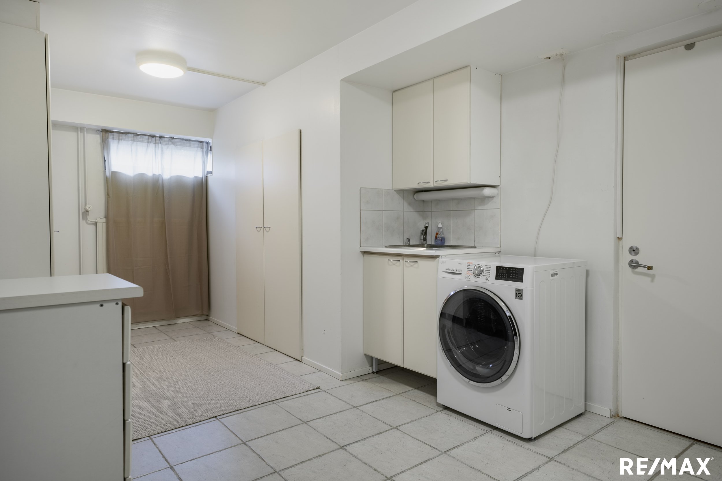 Alakerrassa on lisäksi kaksi huonetta sekä kodinhoitohuone, joka tekee arjen askareista sujuvia.