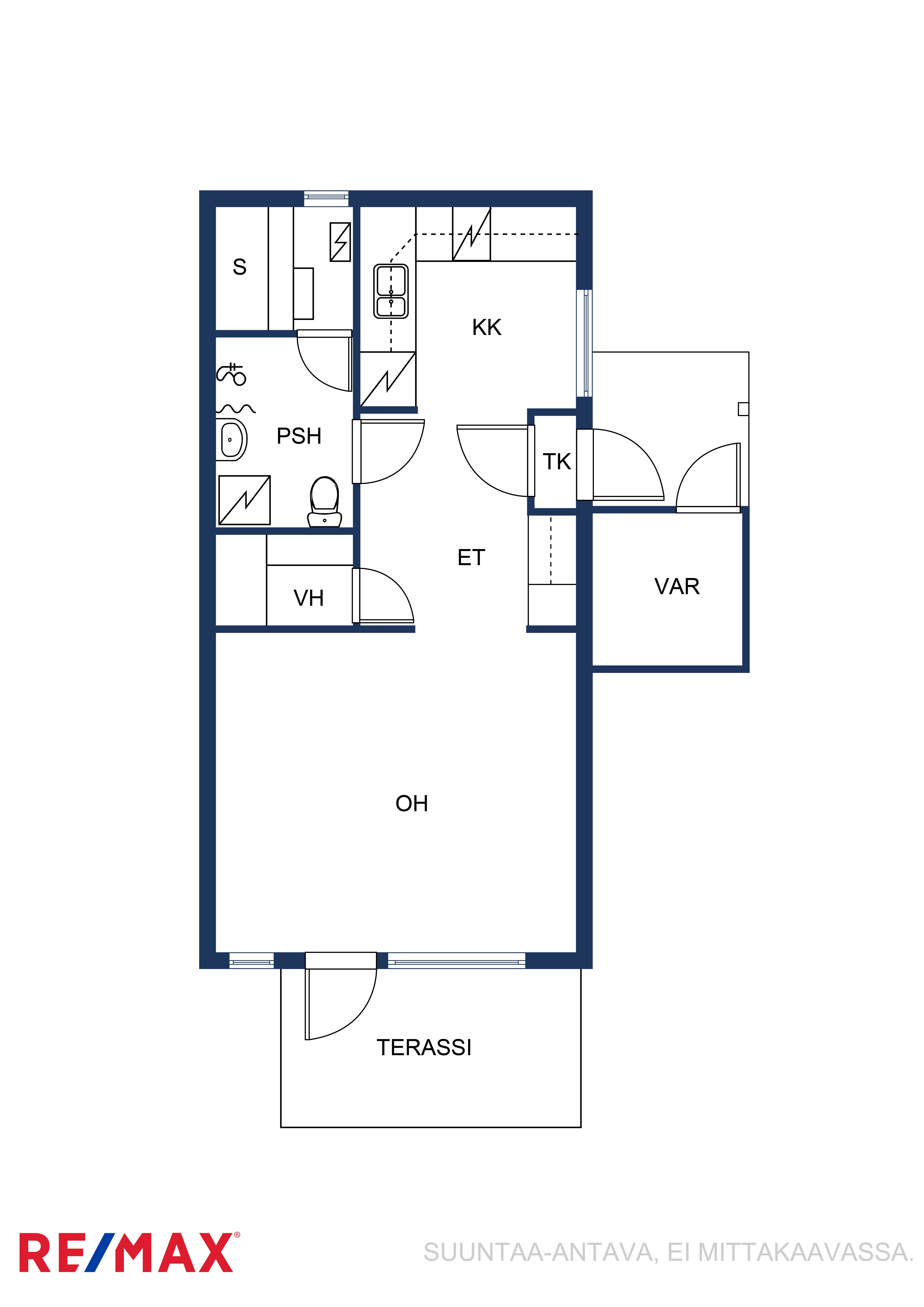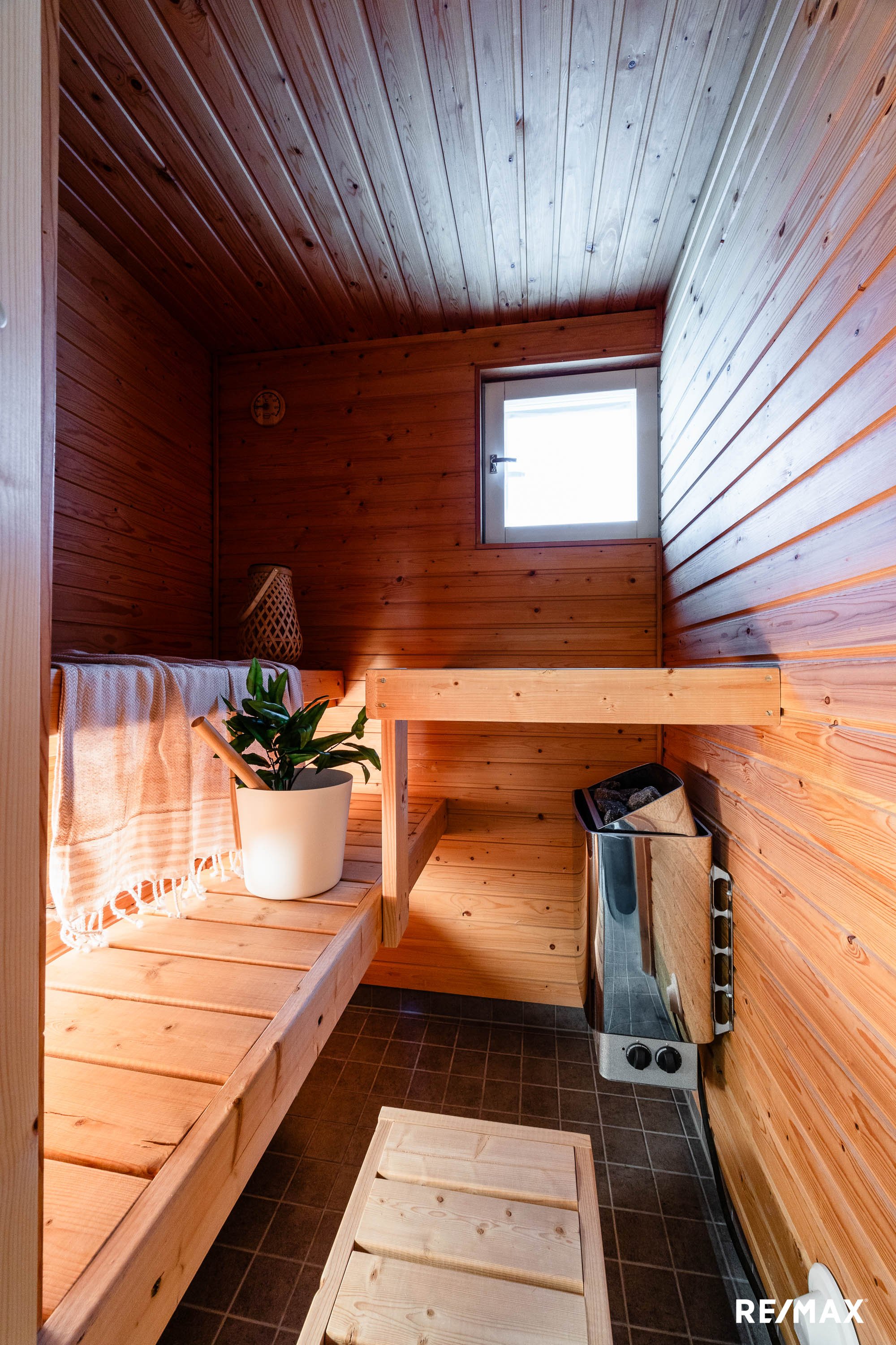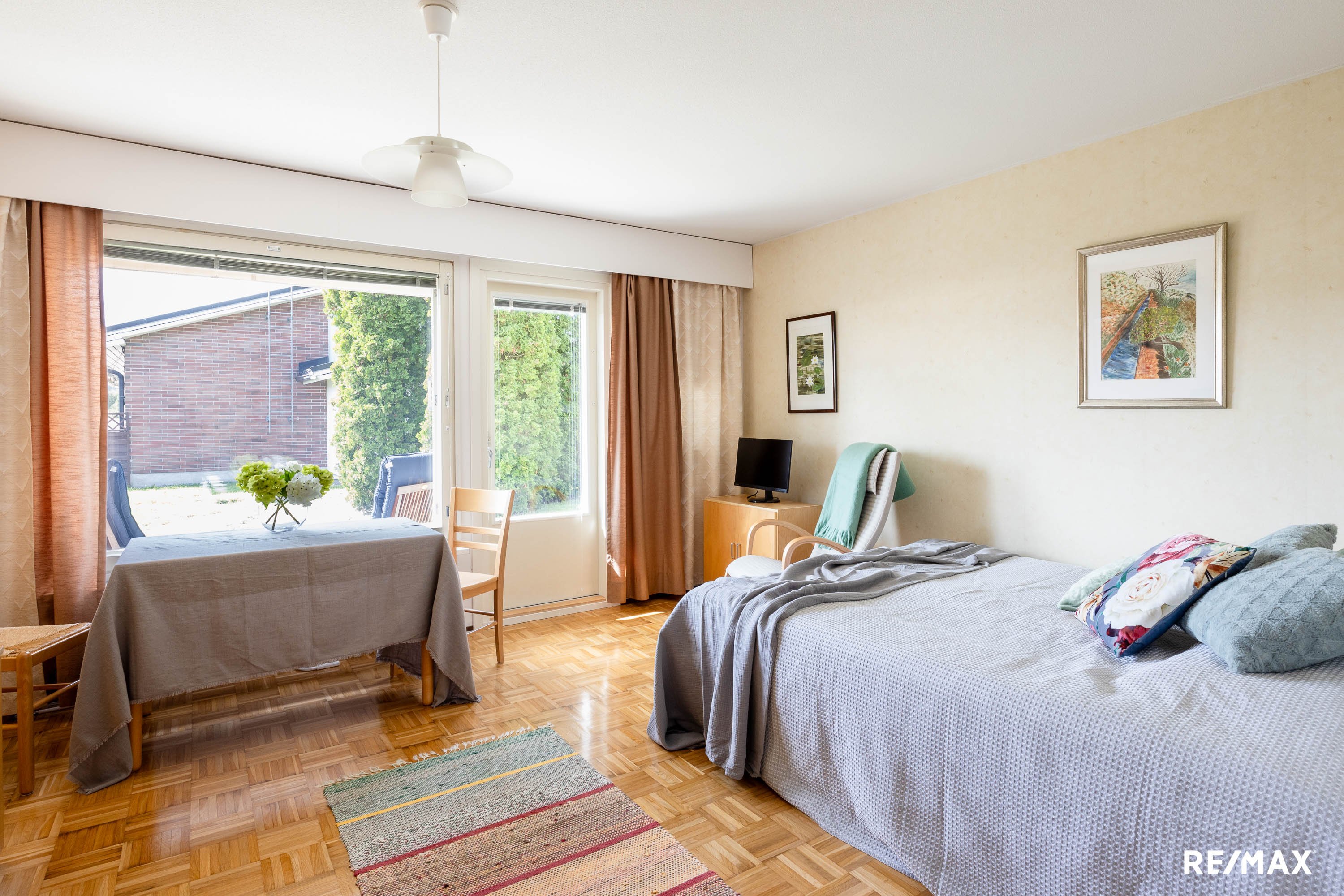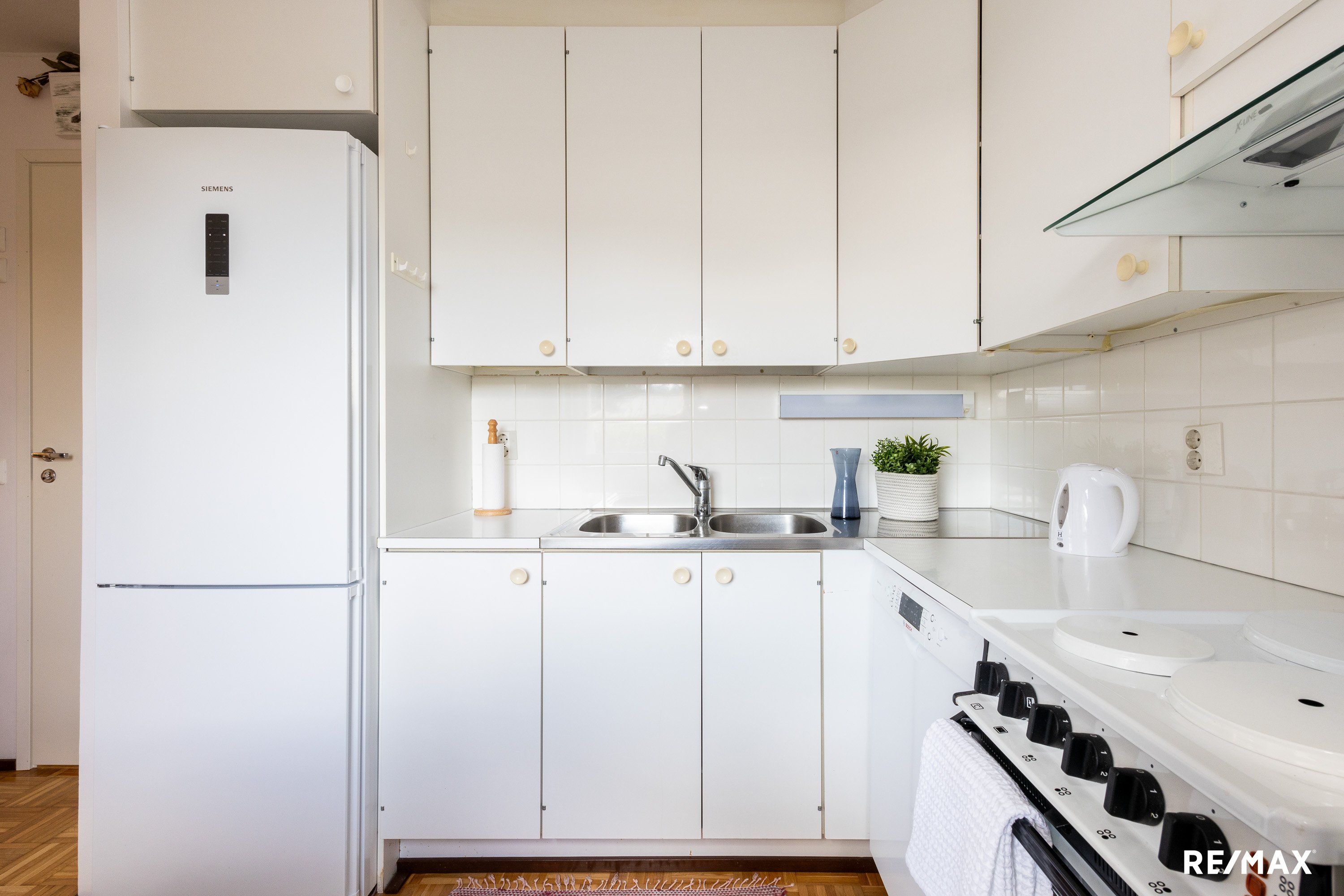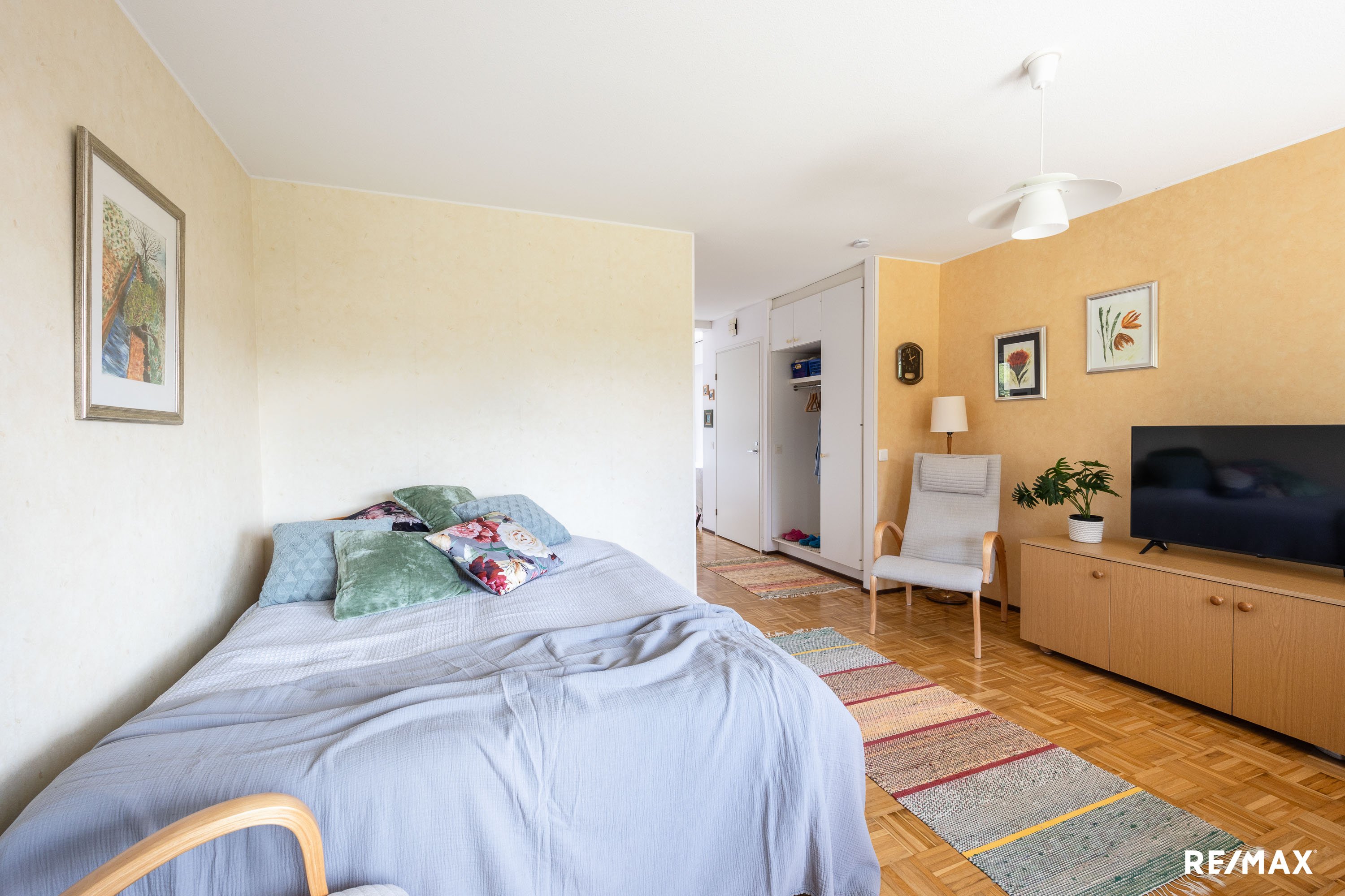 Asunnossa on valoisa olo-/makuuhuone, jonka isosta ikkunasta on vehreä näkymä takapihalle. Takapiha on vihreiden tuijien ja nurmen reunustama helppohoitoinen terassi, jossa auringon kuumilta säteiltä saa suojaa markiisin alla. Keittiöön mahtuu hyvin pieni pöytä. Pesuhuone on kauniisti remontoitu ja saunassa saa hyvät löylyt. Asunnon sisääntulon yhteydessä oleva ulkovarasto on vaatehuoneen lisäksi tarpeellinen säilytystila. Tämä koti on täydellinen valinta yksineläjälle ja kyllä tänne kaksikin saa mahtumaan.