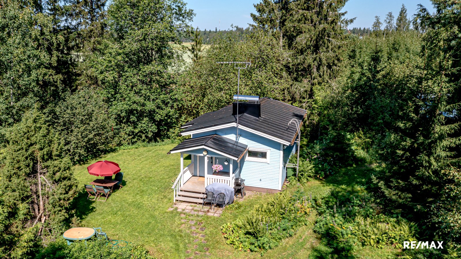 Mökin pinta-ala on 42m2, ja se sijaitsee omalla 2300 m2:n vehreällä tontilla.