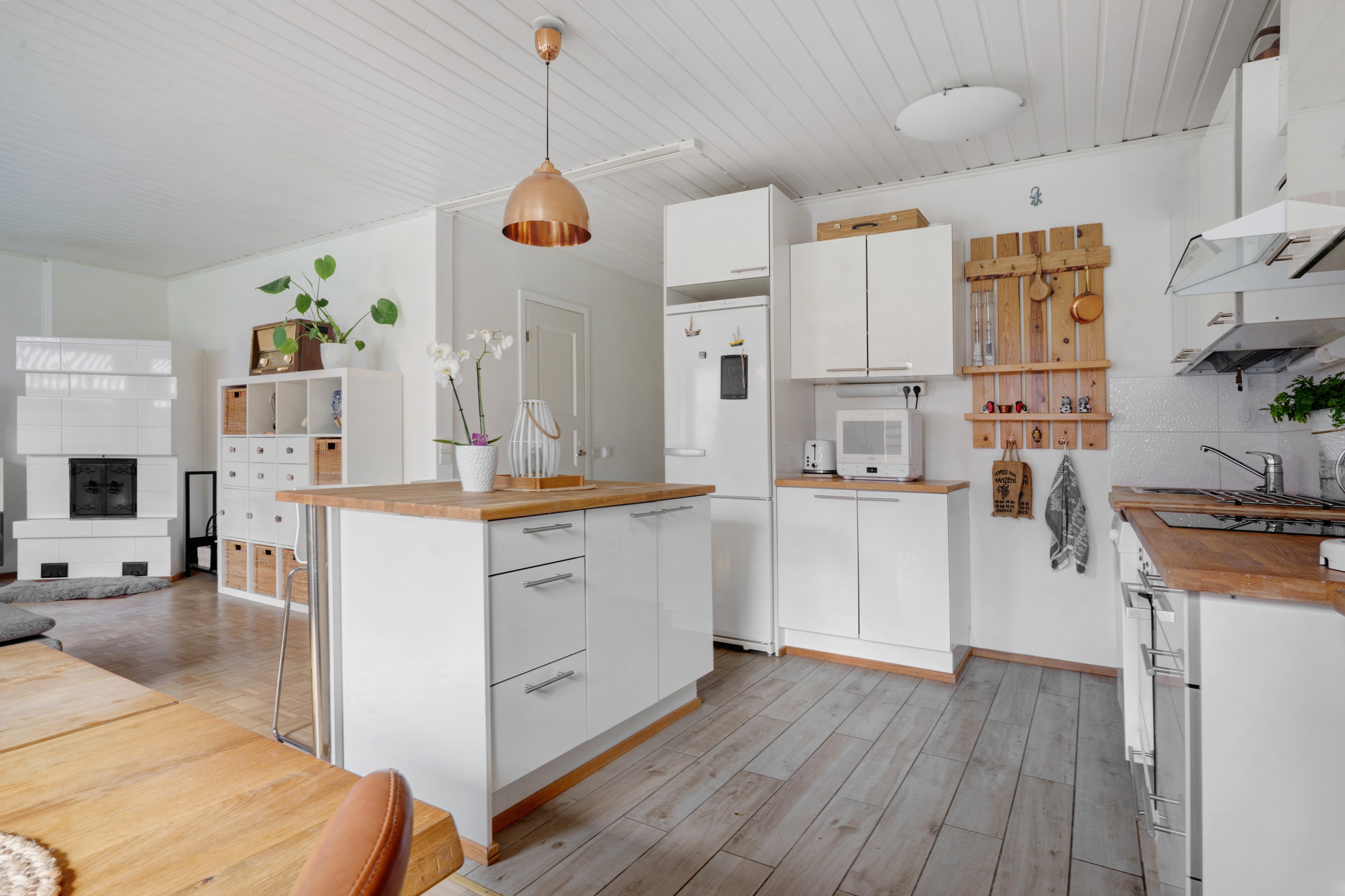 Asunnossa on avara ja valoisa olohuone, jossa on lämpöä varaava takka luomassa tunnelmaa. Avokeittiö avautuu saumattomasti olohuoneeseen ja se on varustettu nykyaikaisilla kodinkoneilla ja tilavalla saarekkeella, joka toimii mainiona työskentely- ja ruokailutilana. Kaksi tilavaa makuuhuonetta tarjoavat reilusti säilytystilaa. Kylpyhuoneessa on lattialämmitys ja sauna, jossa voit rentoutua arjen kiireiden keskellä. Asunnon erillinen wc on oma tilansa, joka on erillään kylpyhuoneesta, mikä tekee siitä käytännöllisen isommallekin perheelle. Asuntoon ja käyttöullakolle on asennettu ilmalämpöpumput energiatehokkuutta ja mukavuutta ajatellen.