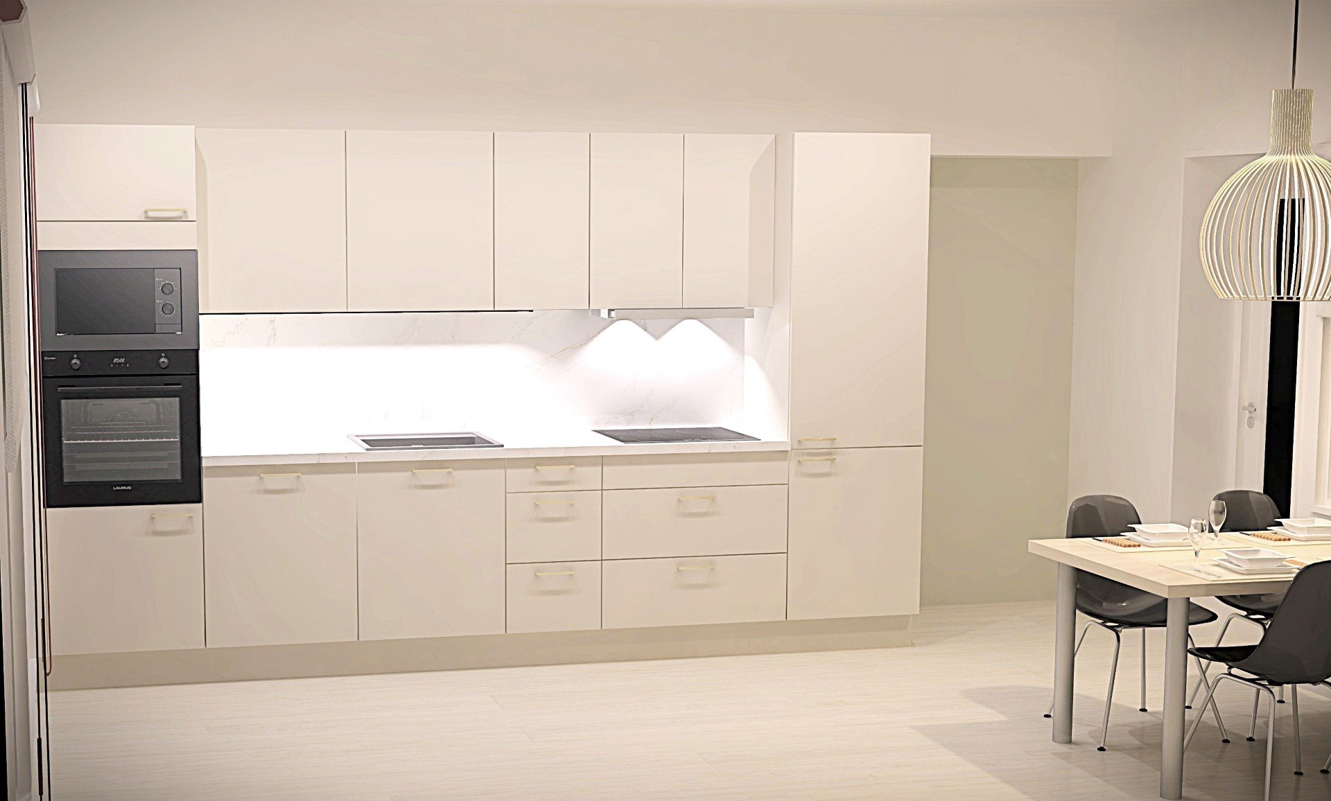 Työtasojen vakiona laminaatti. Erikseen tilattavissa esim. kvartsikomposiitti tai kivitaso.