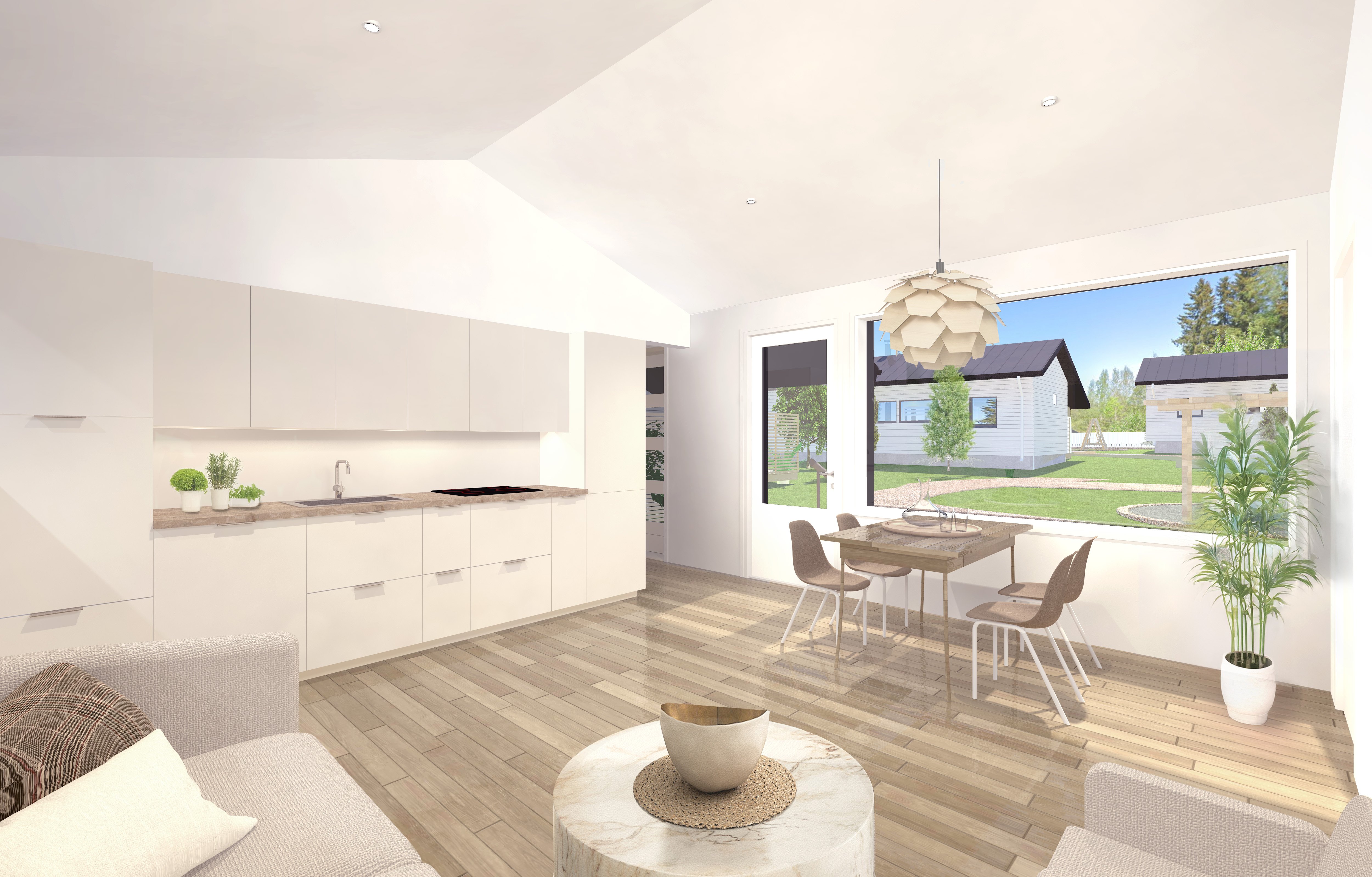 Upea mahdollisuus hankkia uusi koti Rajamäen keskustasta. Tämä valoisa, juuri rakenteilla oleva puutalo tarjoaa modernia asumista kompaktissa paketissa. Asunnossa on kaksi makuuhuonetta ja avara olohuone, joka yhdistyy saumattomasti keittiöön. Keittiö on varustettu integroiduilla kodinkoneilla ja tyylikkäällä led-valaistuksella.