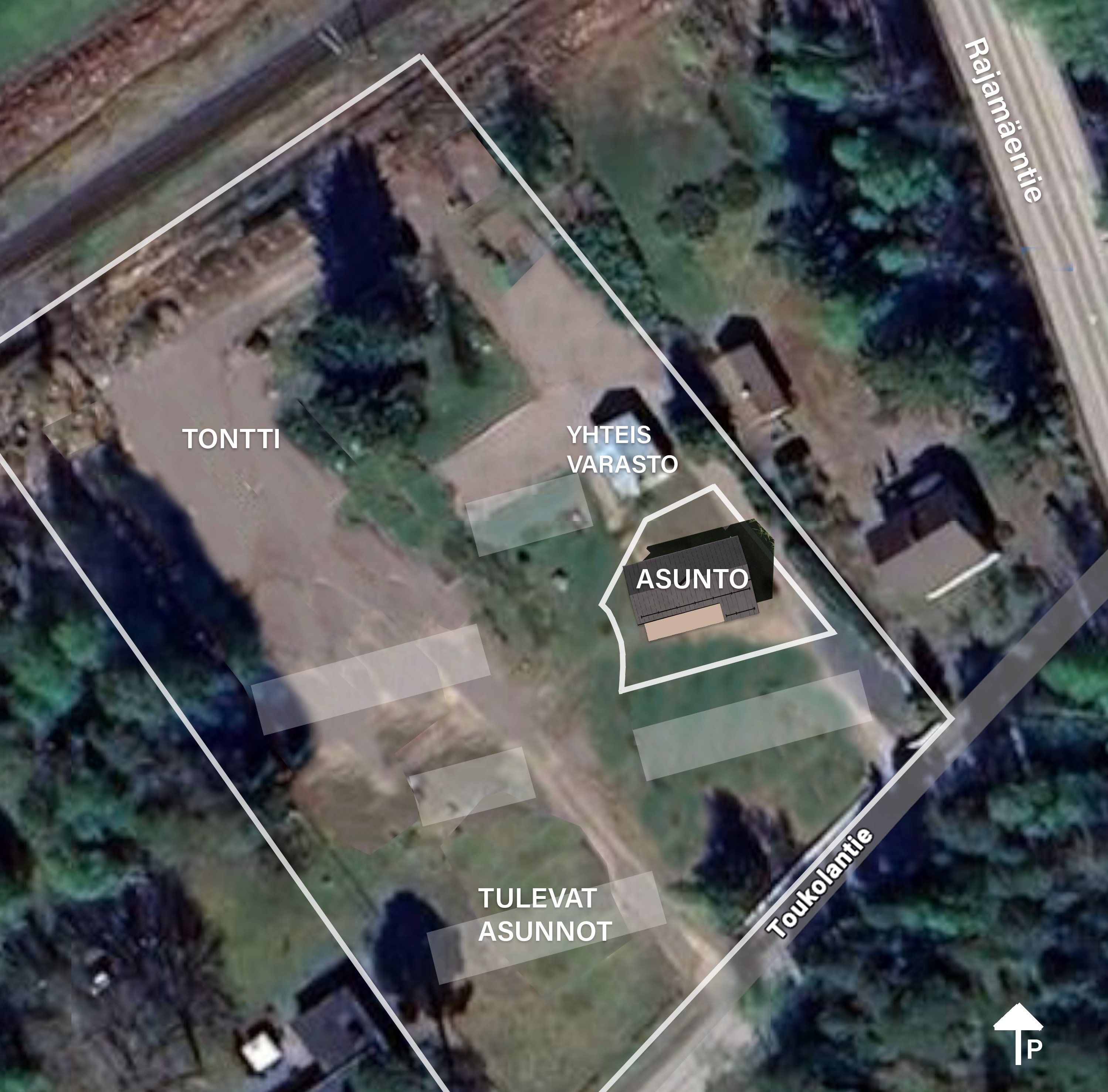 Hallintaoikeus omaan alueeseen 270 m2 sekä yhteisalueeseen: parkkialue, piha-alue, kulkutiet 2885 m2. Loput tontista on muiden omistajien (1-8kpl) hallintaoikeusaluetta. Tontilla on tämän talon lisäksi rakennuslupa 3 pienparitaloon ja 2 pienomakotitaloon. Hallintaoikeus hallinnanjakosopimuksen mukaisesti.