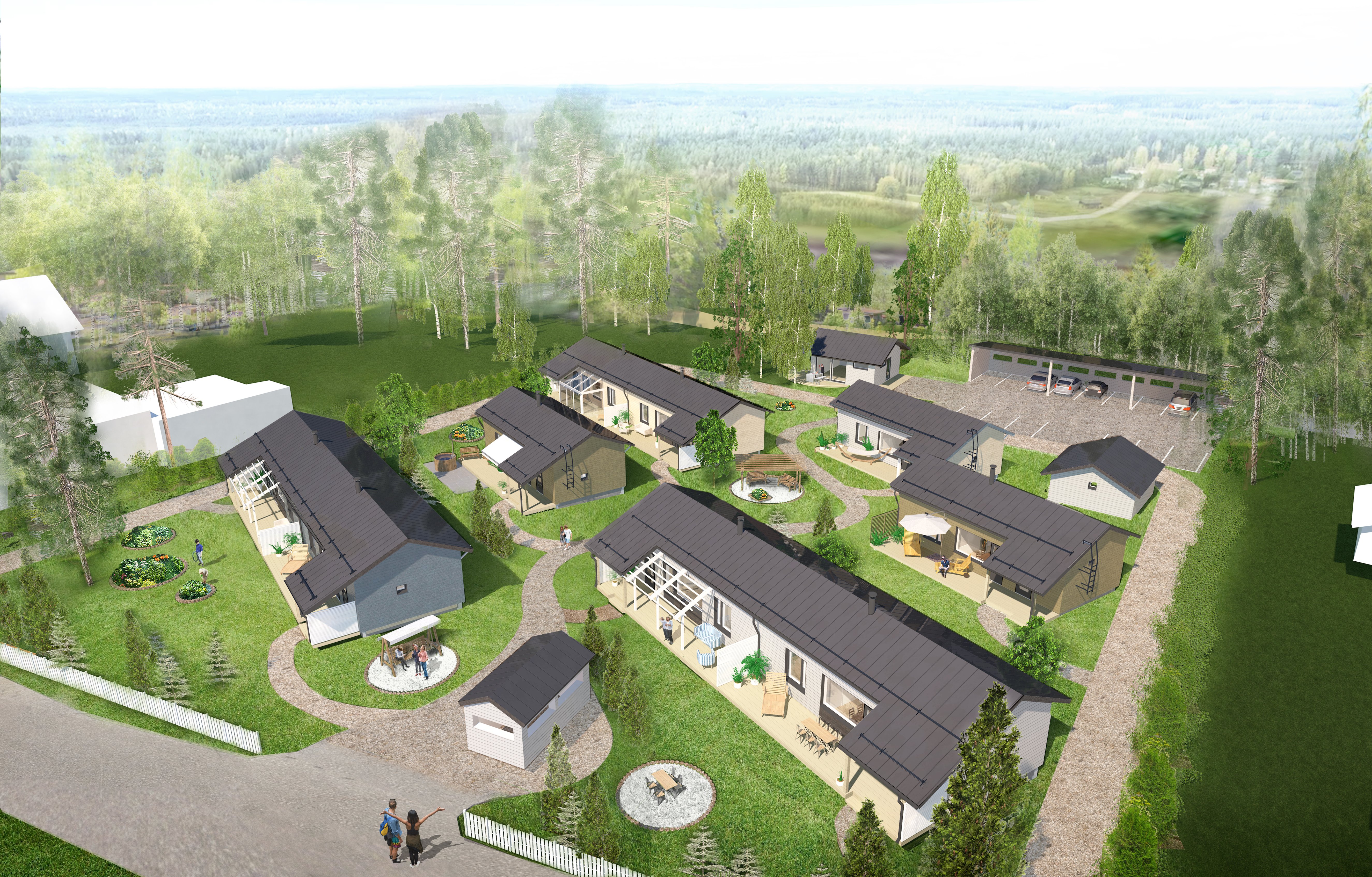 Rajamäelle nousee uusi asumisen malli: omakotitaloja senioreille yhteisellä pihalla ja saunalla.