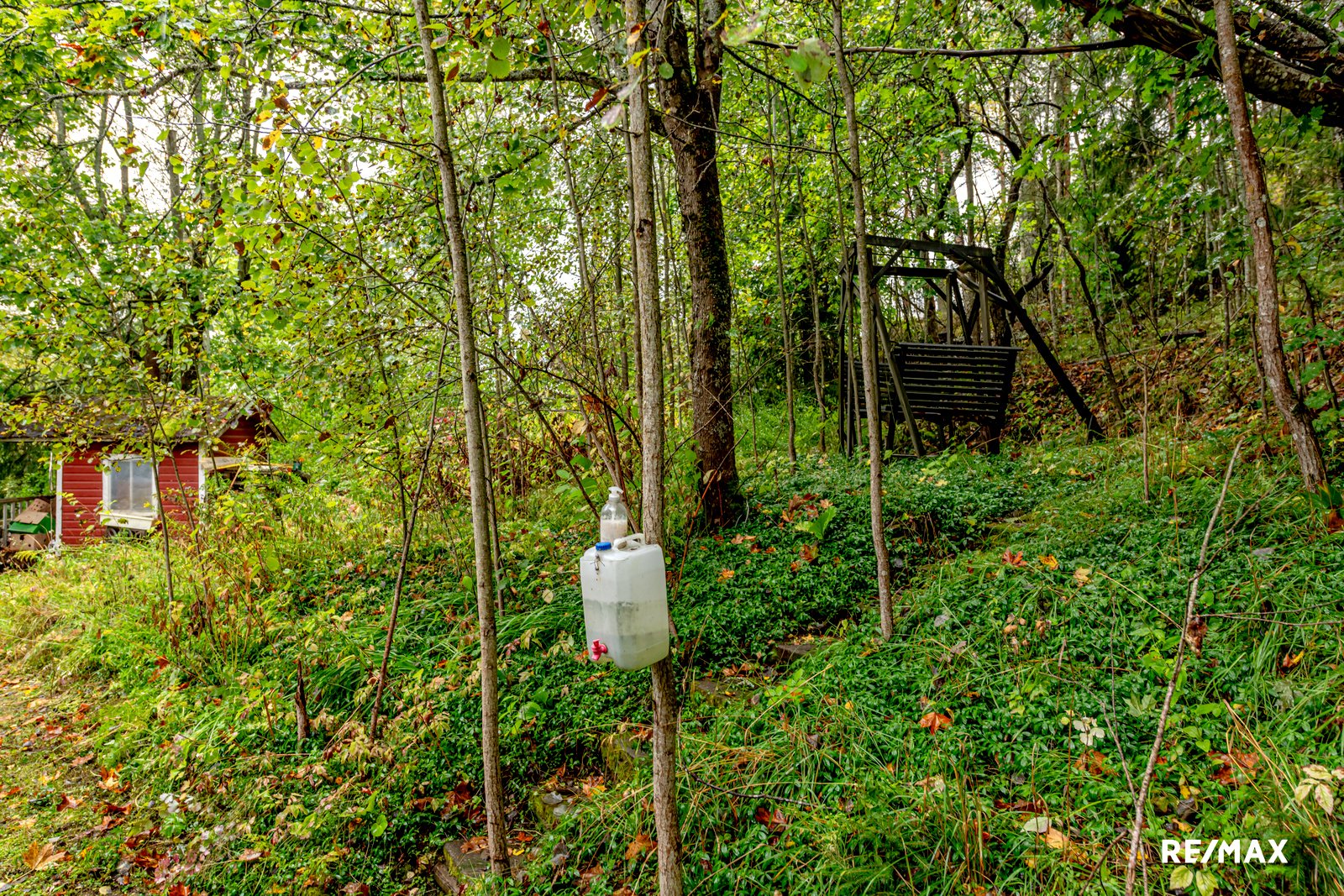 Pihapiirissä on kevytrakenteinen autotalli sekä erillinen rakennus, jossa on halkoliiteri ja kesähuone sekä isompi autotalli.
