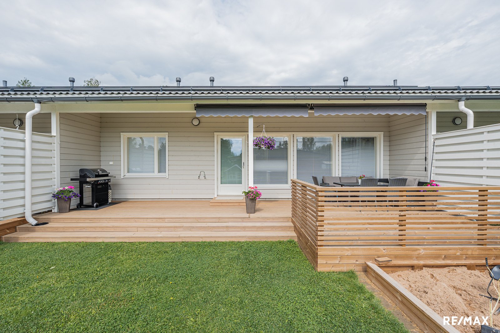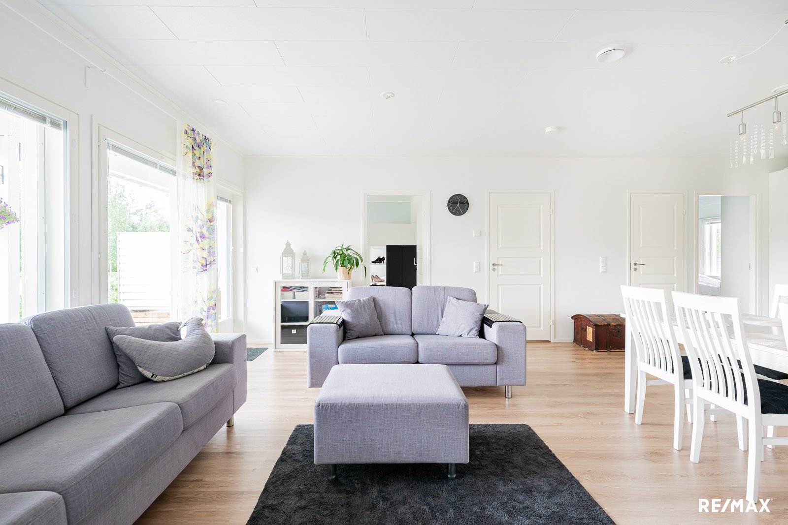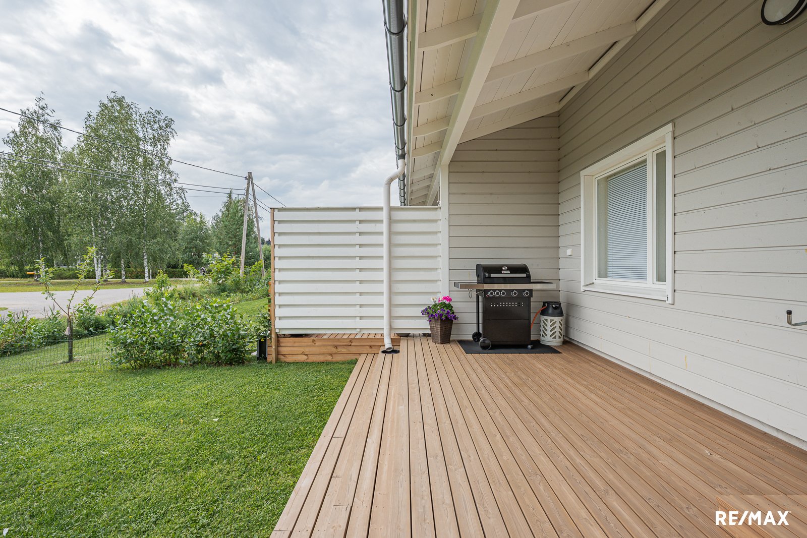 Vuonna 2022 valmistunut yksitasoinen, esteetön koti tarjoaa avaran ja toimivan pohjaratkaisun, jossa on kolme makuuhuonetta, avokeittiö ja olohuone, josta on käynti suurelle osittain katetulle terassille. Terassi on täydellinen paikka nauttia kesäpäivistä ja rauhallisesta ympäristöstä.