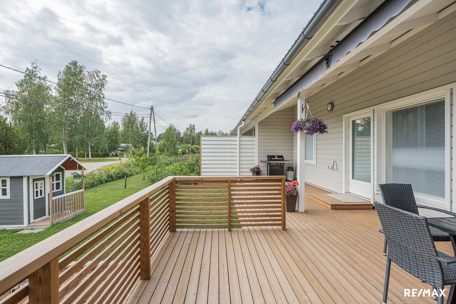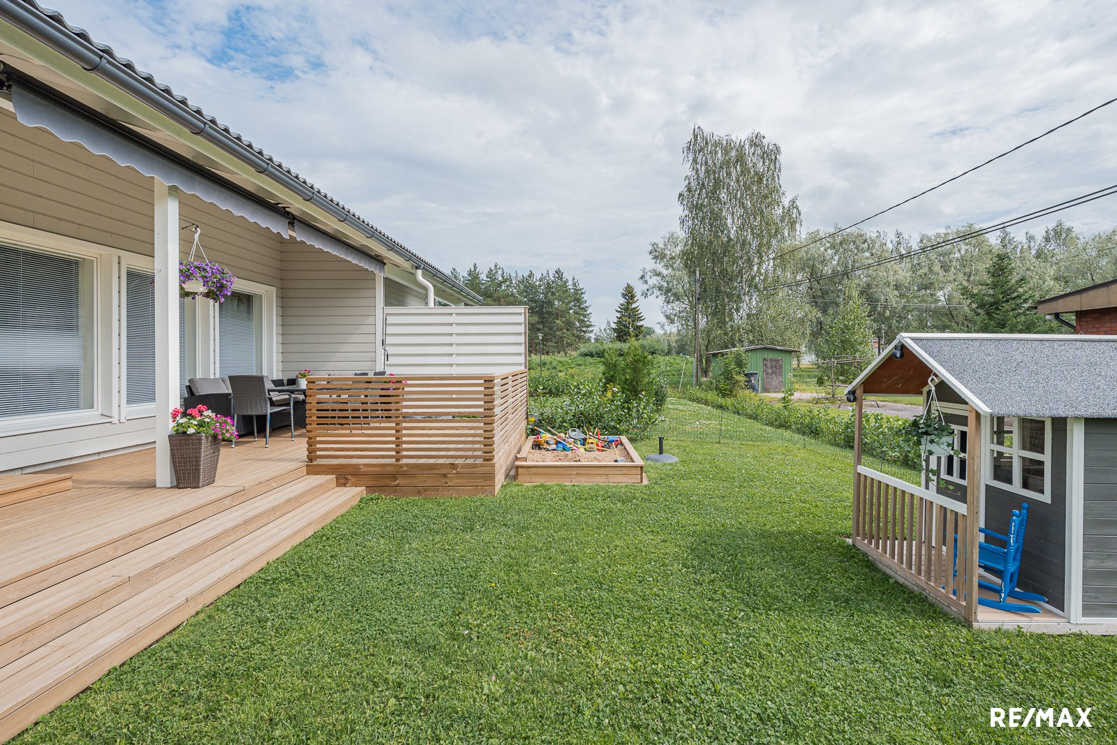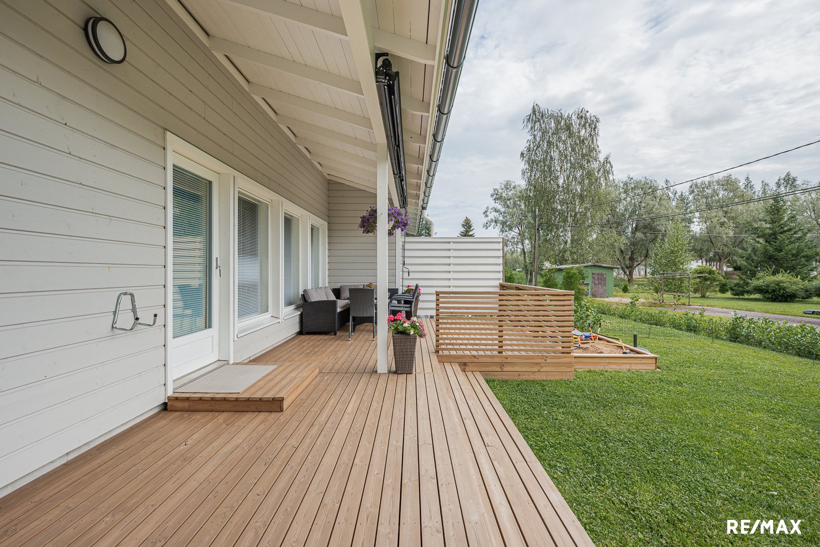 Vuonna 2022 valmistunut yksitasoinen, esteetön koti tarjoaa avaran ja toimivan pohjaratkaisun, jossa on kolme makuuhuonetta, avokeittiö ja olohuone, josta on käynti suurelle osittain katetulle terassille. Terassi on täydellinen paikka nauttia kesäpäivistä ja rauhallisesta ympäristöstä.