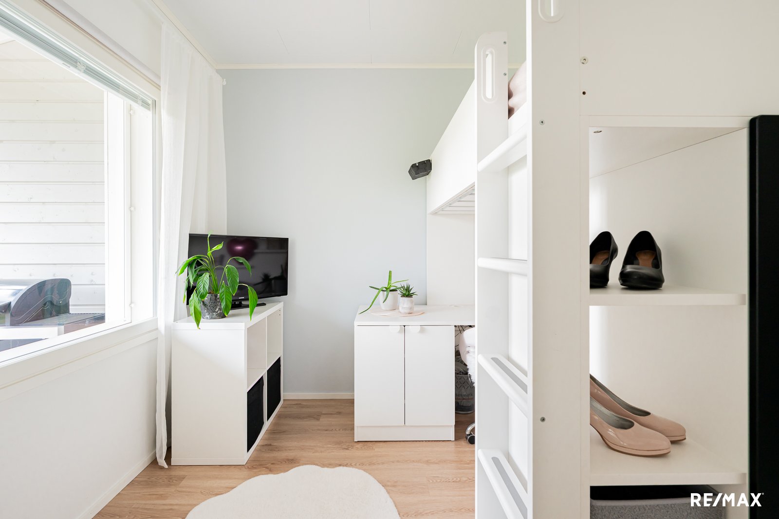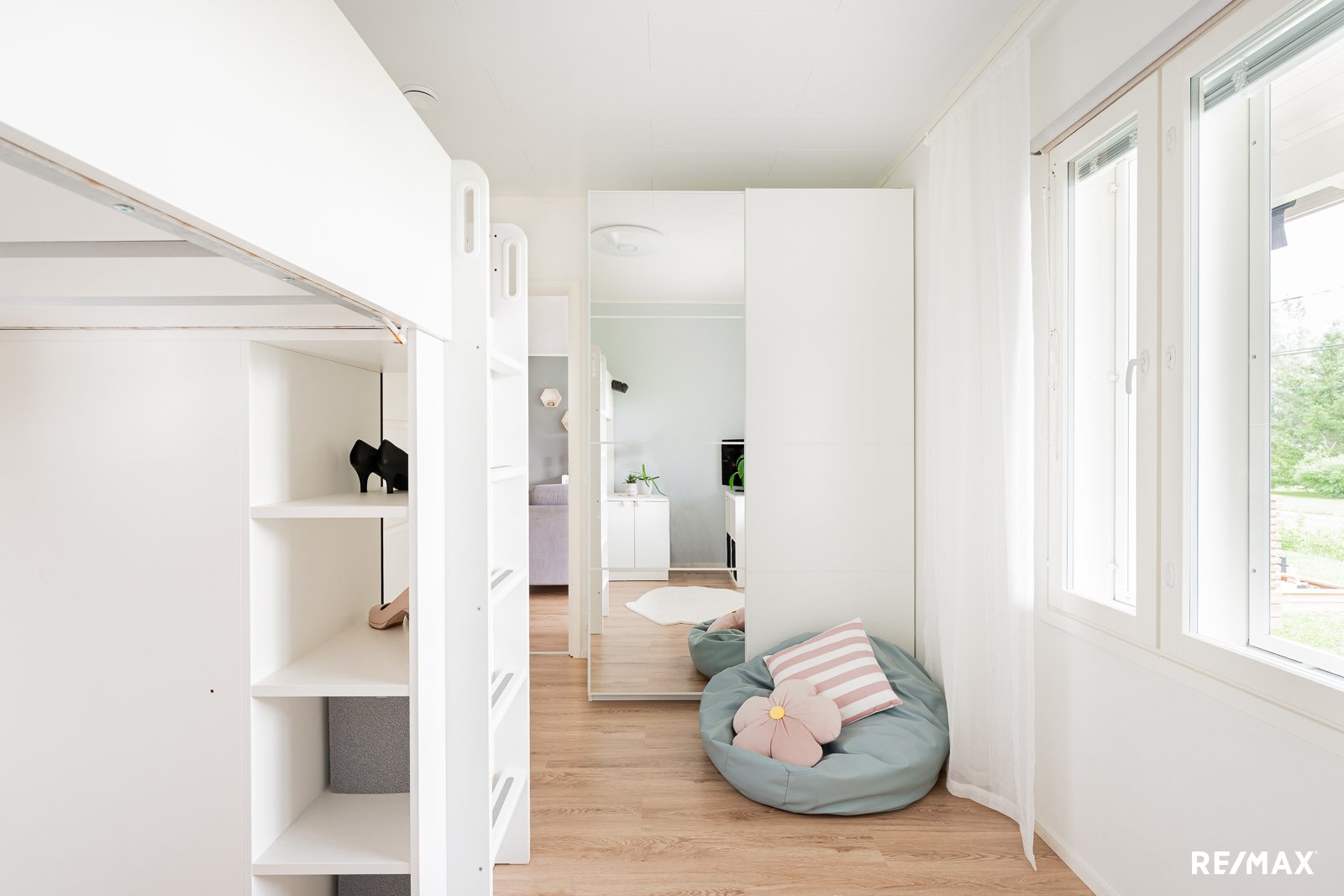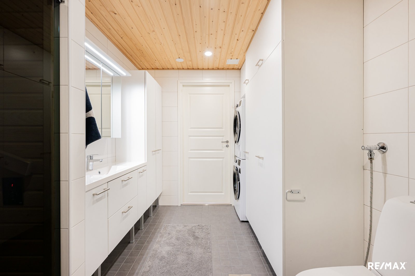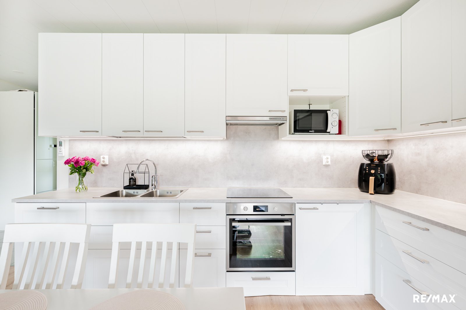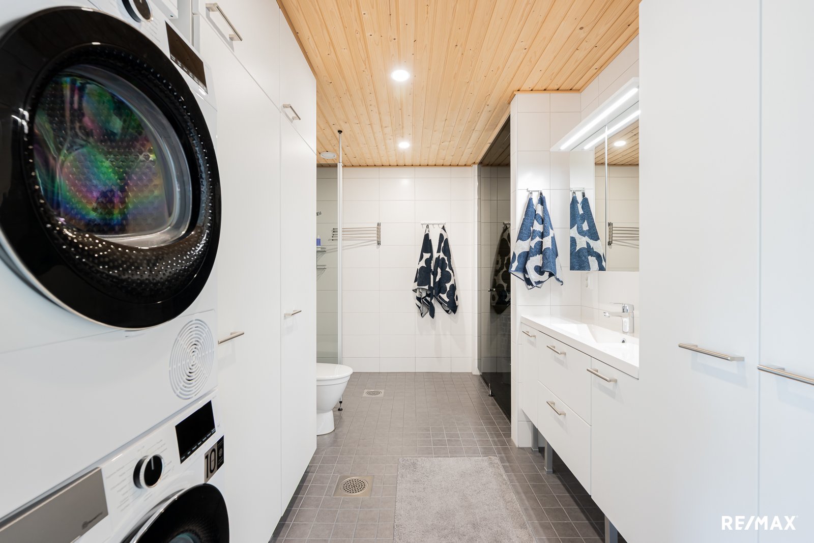 Kodin tyylikäs keittiö on varustettu nykyaikaisilla laitteilla, ja olohuoneen suuret ikkunat tuovat runsaasti luonnonvaloa sisään. Makuuhuoneissa on liukuovikaapistot, jotka tarjoavat runsaasti säilytystilaa. Kylpyhuone ja erillinen wc on sisustettu laadukkailla materiaaleilla, ja omassa saunassa voit rentoutua sähköisen pilarikiukaan lempeässä lämmössä.